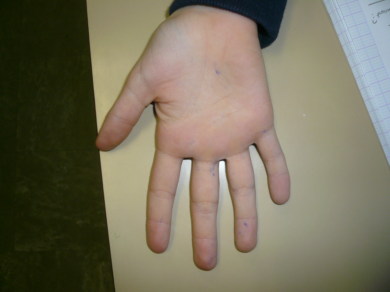 Nous lançons un petit challenge pour les parents joueurs: vous devez identifier la main de votre enfant en m'envoyant avant mardi soir le numéro correspondant par sms ou par mail. La récompense sera la photo de votre chérubin en train de dormir... En cas d'erreur vous pourrez être repêchés en identifiant l'1 des 4 photos bonus ! Bonne chance !!! La maman de Maylice (10) a répondu la 1ère et ne s'est pas trompée, bravo !!! Ethan (25) gagné aussi ! Pas comme la maman de Lola T... Yanis gagné aussi (1).