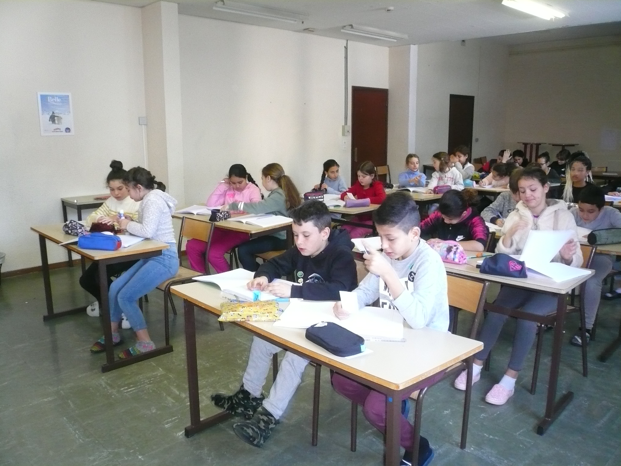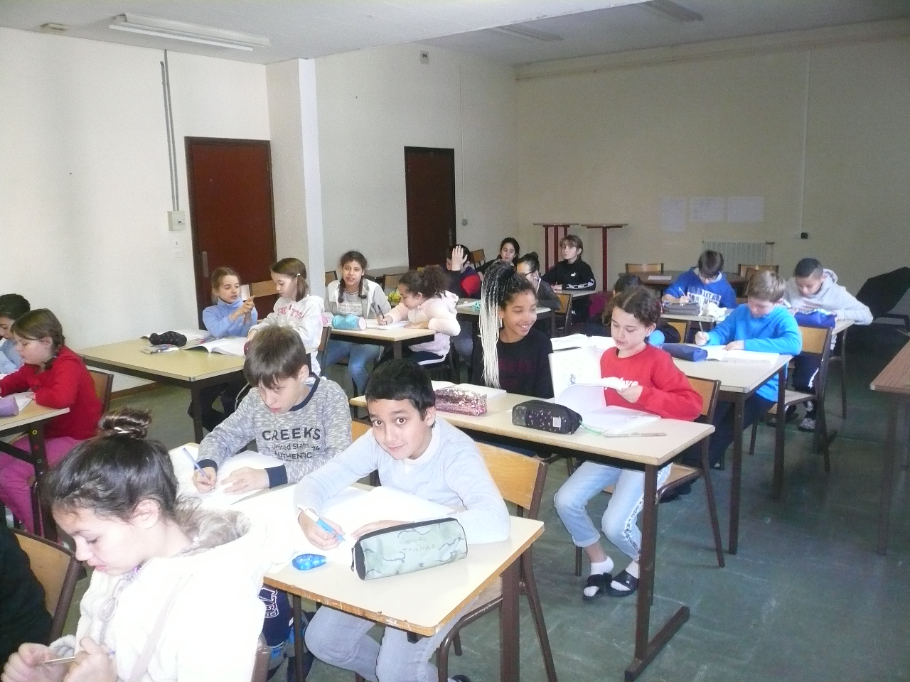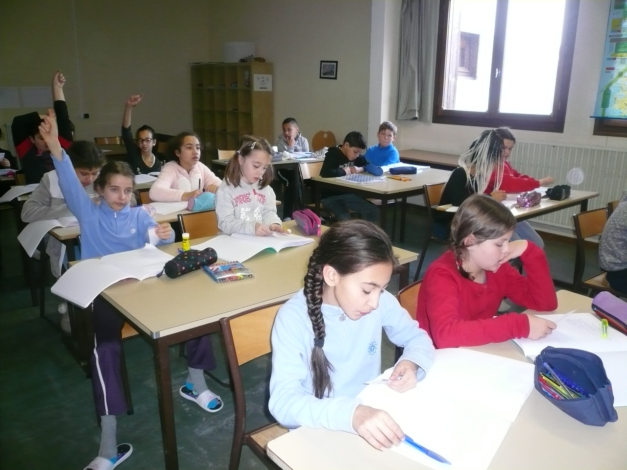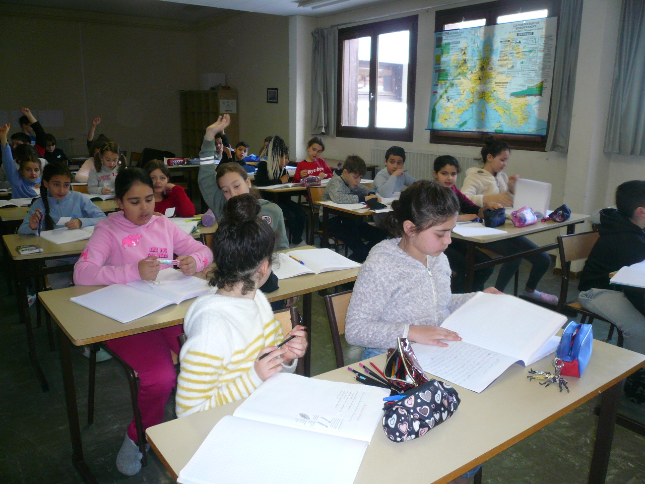 Petits ennuis du jour: Kawthar a mal à la tête, elle s'est couchée en arrivant du ski à 16h, elle verra l'infirmière ce soir. Lola R n'a plus mal à ses 2 ampoules grâce à mes pansements magiques. Salim et Aymeric ont eu un comportement irréprochables aujourd'hui. Meriem est comme d'habitude surexcitée et Délia, mon élève modèle à l'école, n'a pas un comportement très agréable... Tous commencent à ressentir de la fatigue et ce soir la veillée sera un petit temps calme dans les chambres. C'est vrai que nous avons eu un emploi du temps très chargé depuis jeudi. La matinée classe de ce matin était la bienvenue, celle de demain aussi. Les premiers courriers des enfants sont partis ce matin, ils n'ont guère eu de temps pour vous écrire avant. les autres devraient partir demain... Faut dire aussi qu'entre écrire ou jouer, le choix est vite fait !