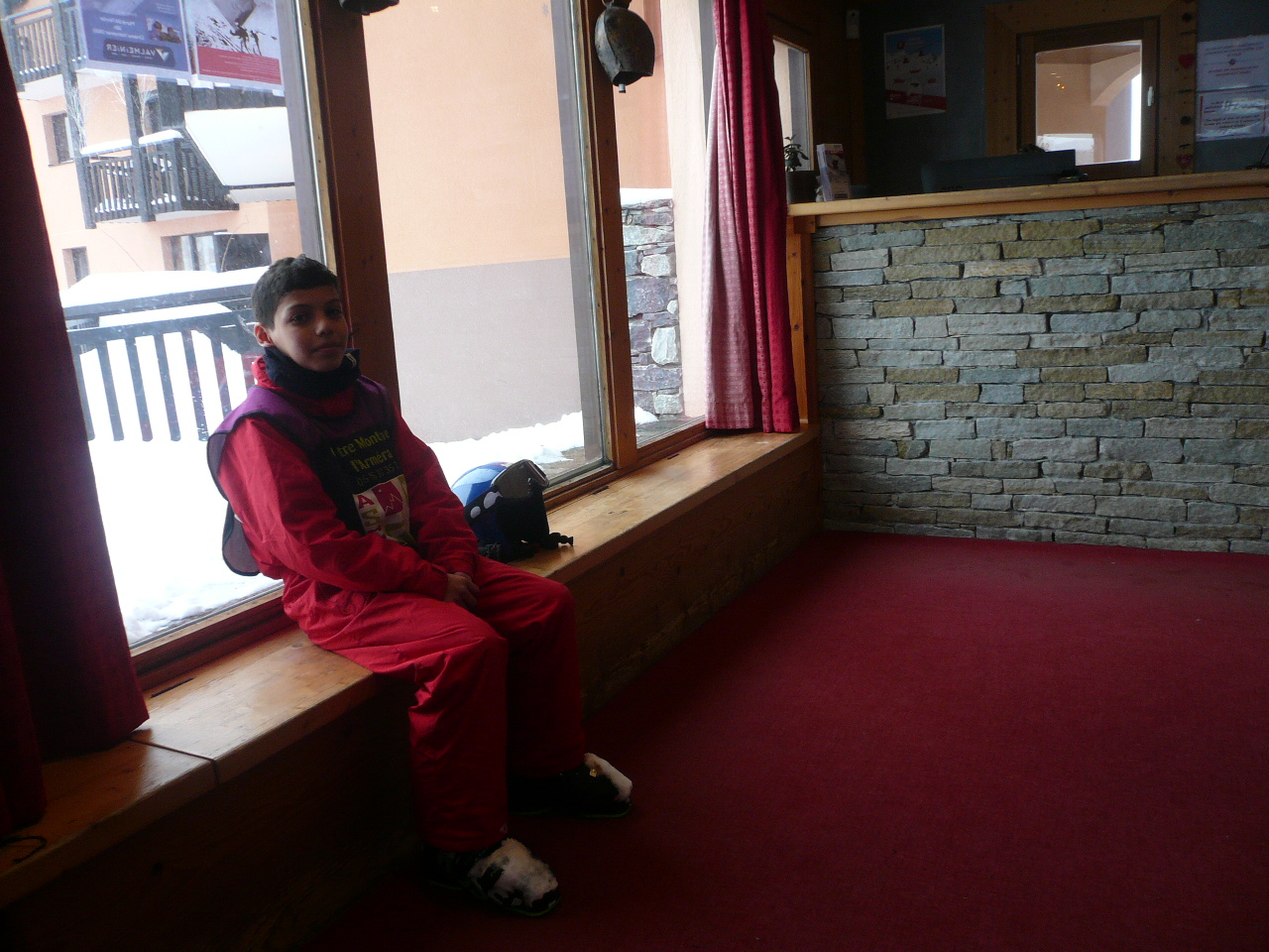 Après-midi ski, temps pas super mais quand même beaucoup mieux qu'hier; il ne neigeait pas beaucoup et surtout il n'y a avait pas de vent, la visibilité était correcte. Vous vous demandez certainement ce qui est arrivé à Salim? non il ne s'est pas blessé ! Non il n'essaie pas de devenir moniteur ESF (Ecole du Ski Français) ! Le pauvre, il a été malade pendant la séance de ski alors sa gentille monitrice l'a mis au chaud une petite heure dans la maison des moniteurs. Il en a profité pour visiter...