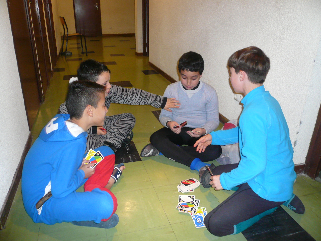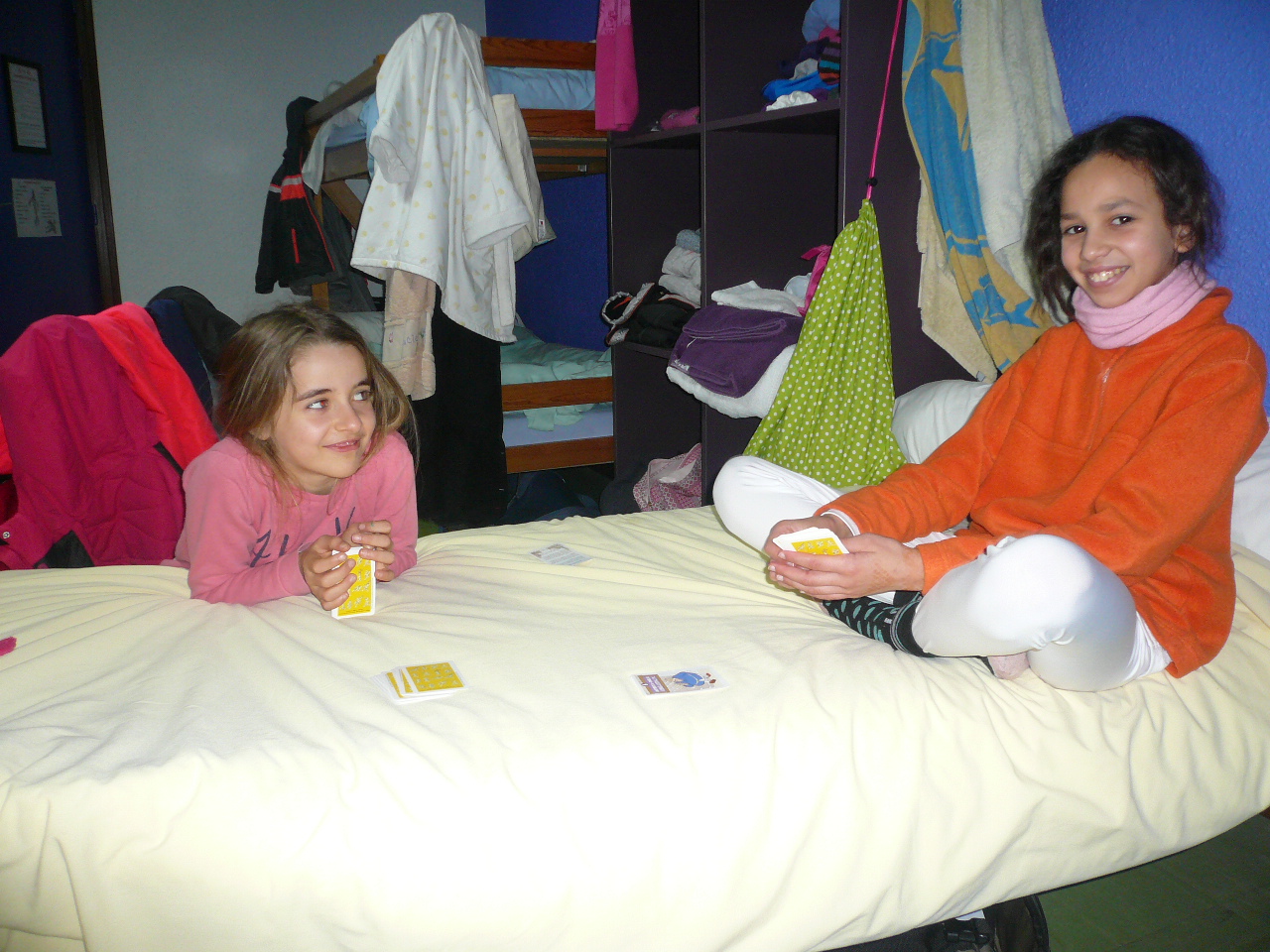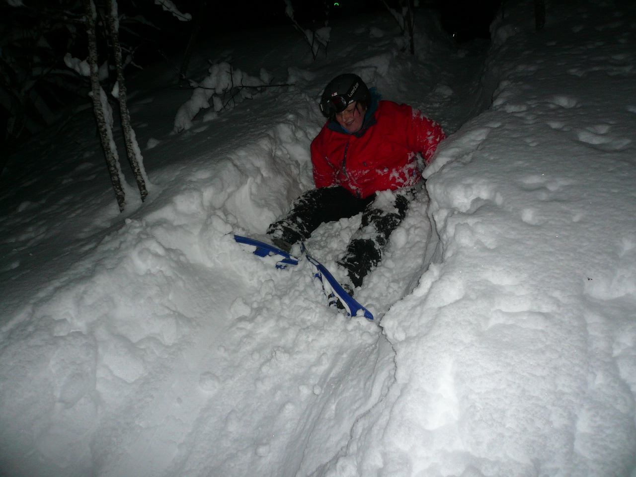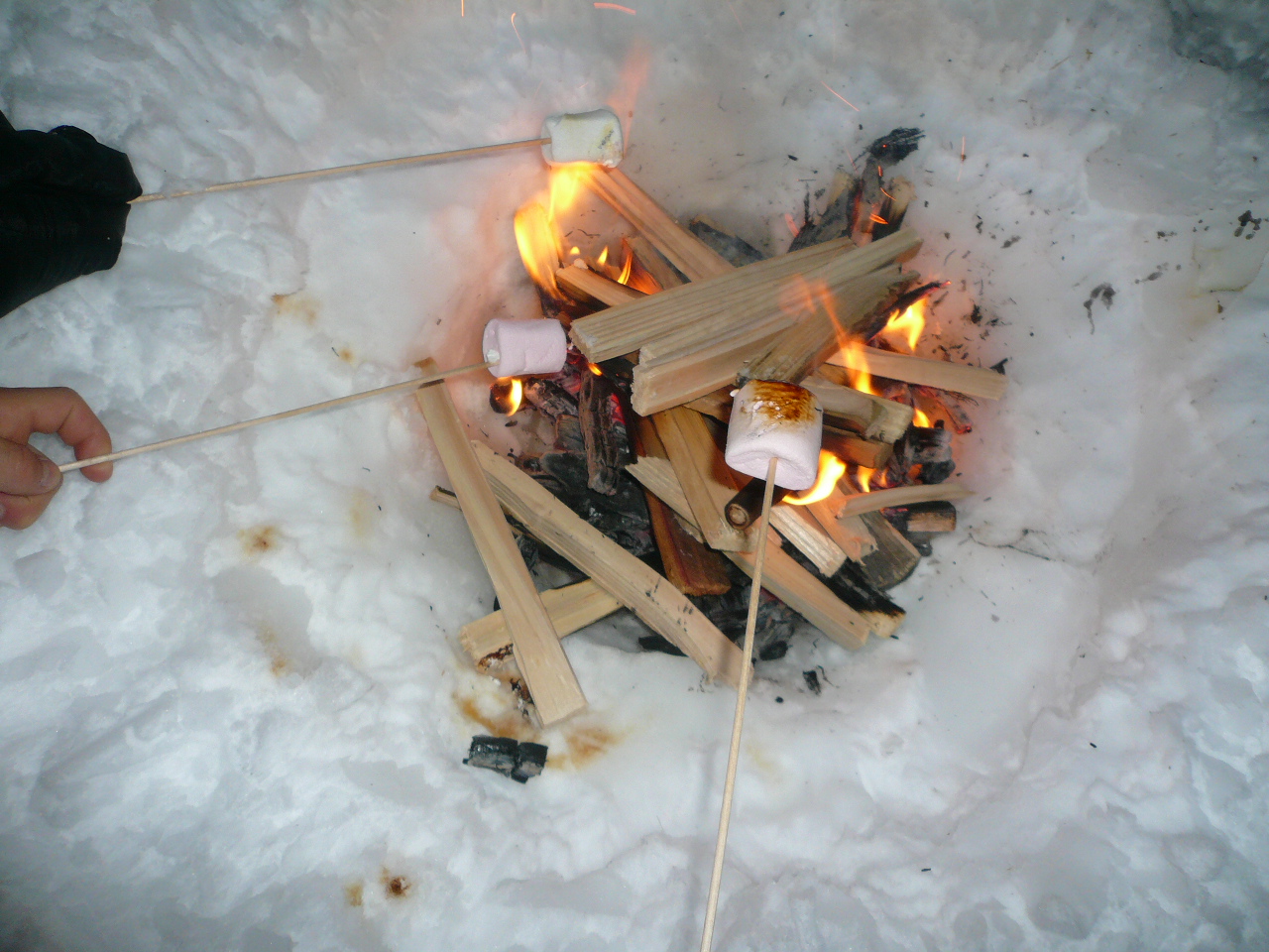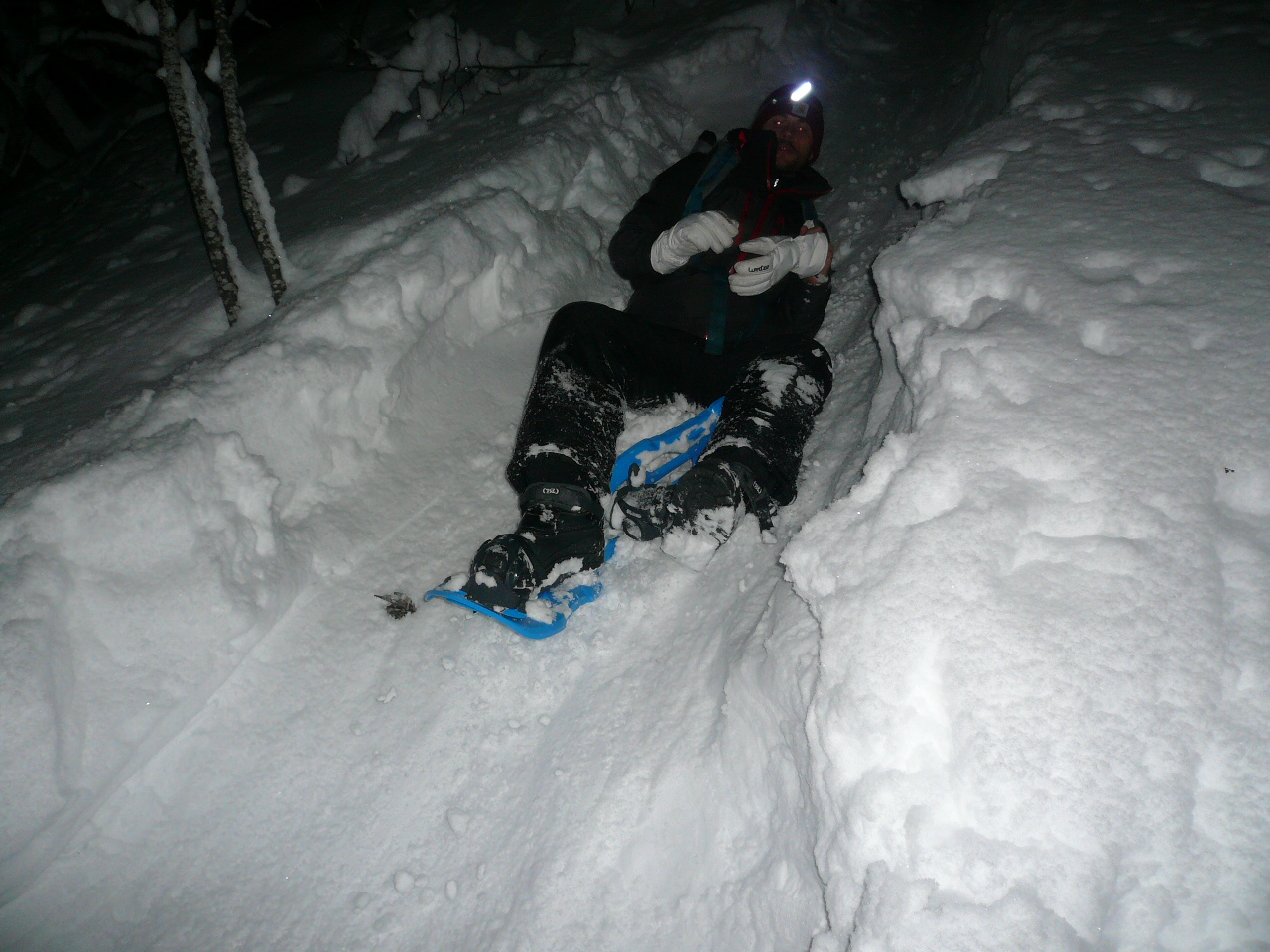 Et enfin la veillée la plus attendue de tous: la balade nocturne en raquettes ! Merci à notre guide Pierre, c'était génial, au-delà de nos espérances ! Imaginez l'ambiance: chausser les raquettes à la tombée de la nuit, faire la trace dans 50 cm de poudreuse fraîchement tombée, tous à la queue leu leu éclairés par les lueurs du ciel, atteindre une petite clairière, faire coucou à la lune et à Vénus (étoile du berger), damer une petite terrasse sous un mélèze, allumer un feu, boire une petite boisson à la fraise ou à l'orange, faire griller des chamallows, réciter la poésie de Samivel "Les merveilles de la montagne ne coûtent pas un centime" et surtout ressentir tout ce que nous dit ce grand poète "écouter les musiques de la montagne"... puis redescendre vers le centre en enchaînant les glissades... Quel bonheur de partager ce moment tous ensemble !