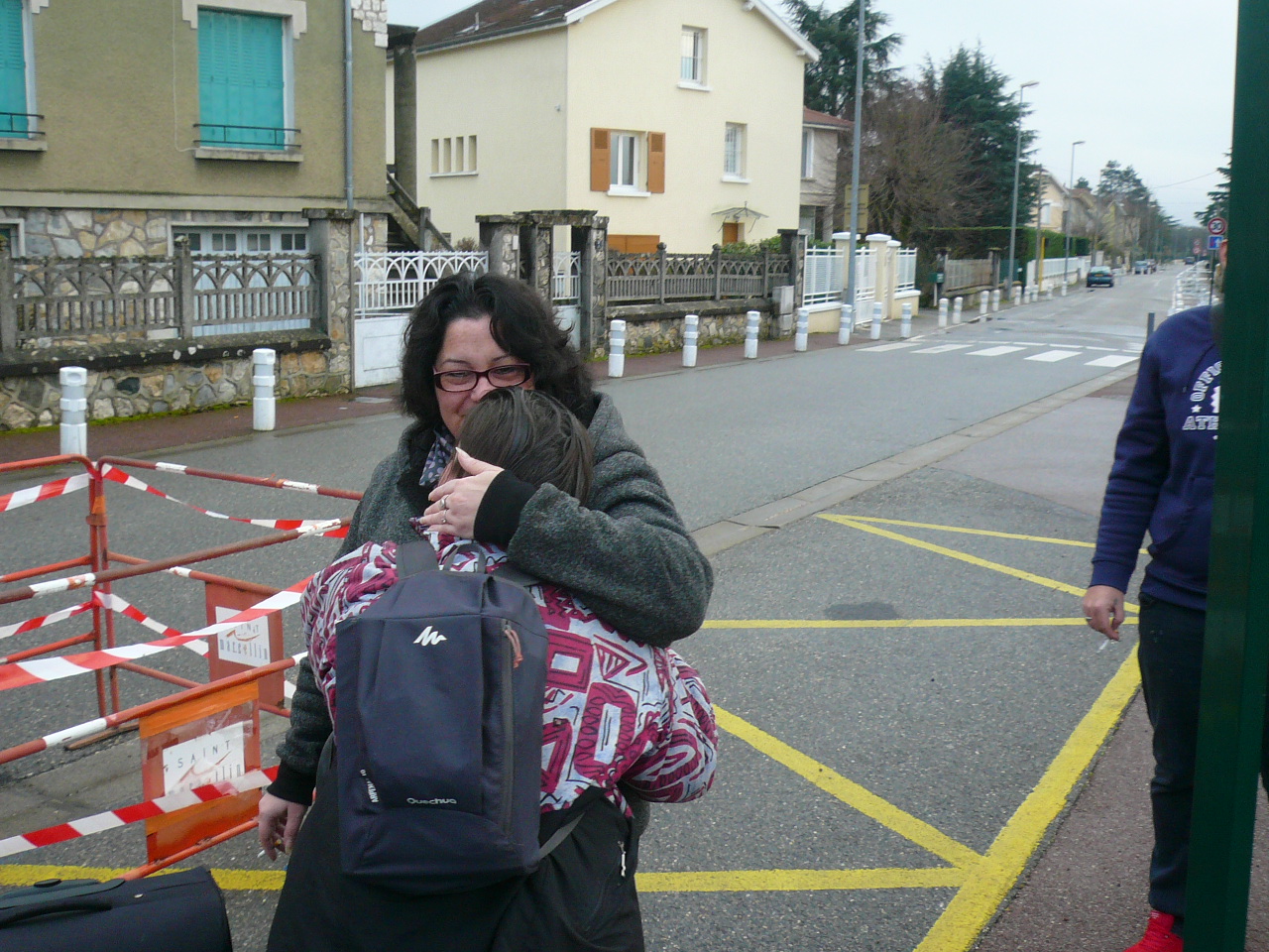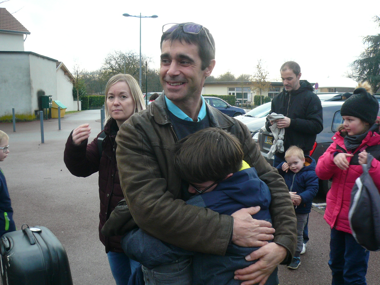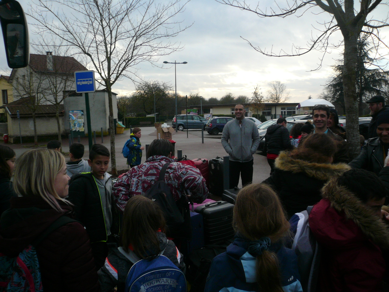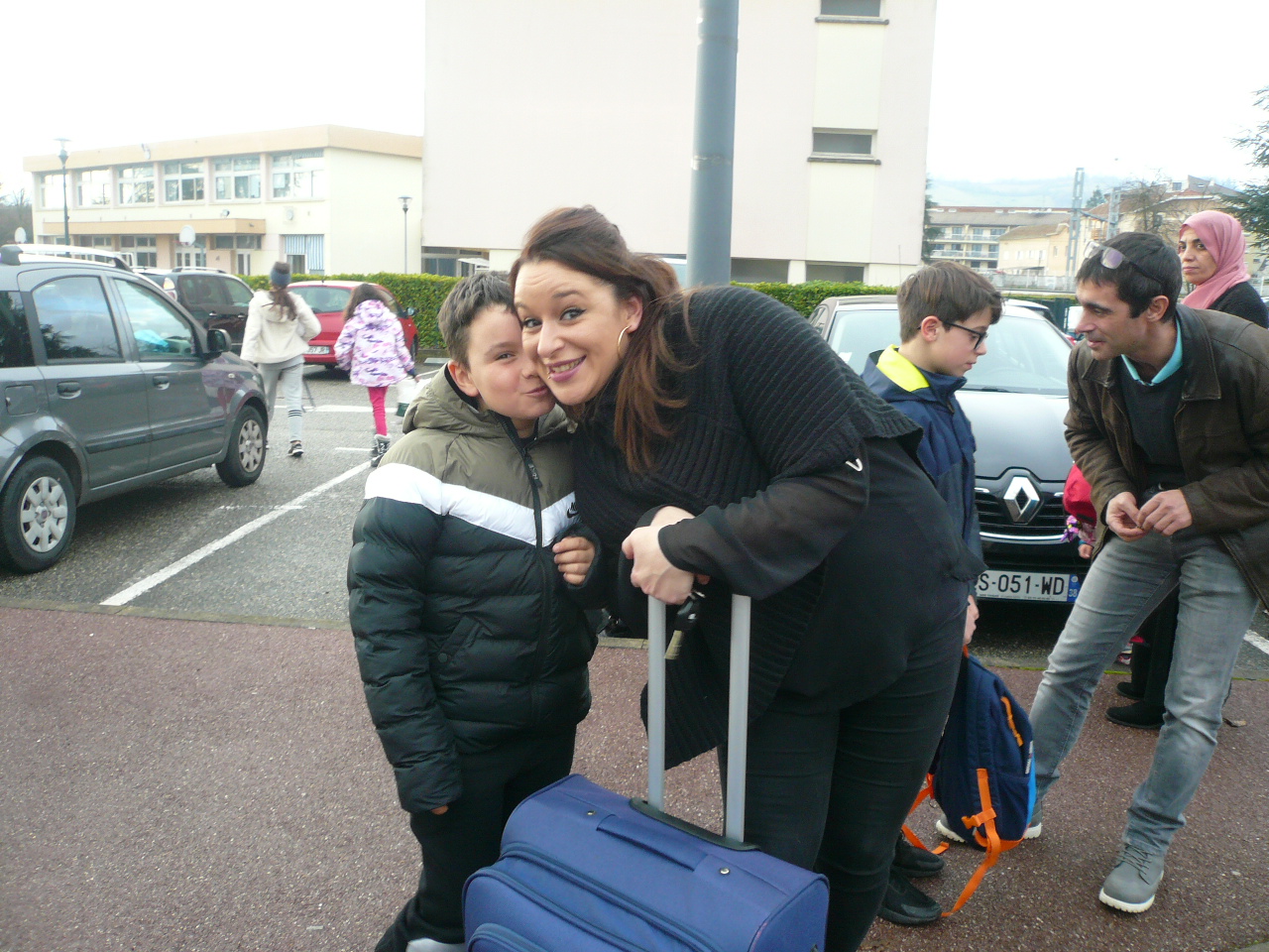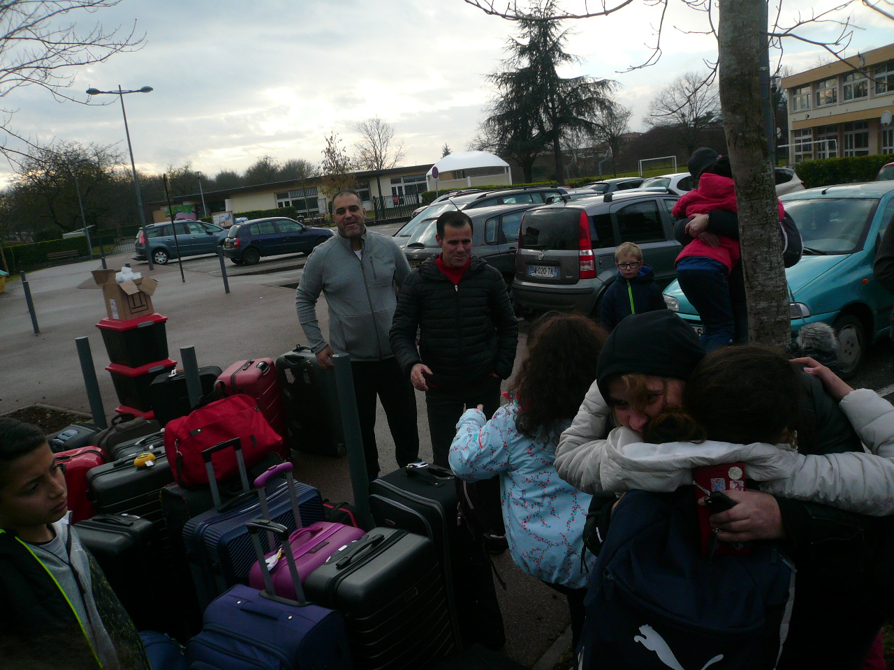 Nous décollons du centre à 13h30. Difficile de vous donner une heure d'arrivée. Cela dépendra des bouchons à Grenoble et des arrêts possibles en route... Au mieux nous serons à l'école à 16h00/16h30...