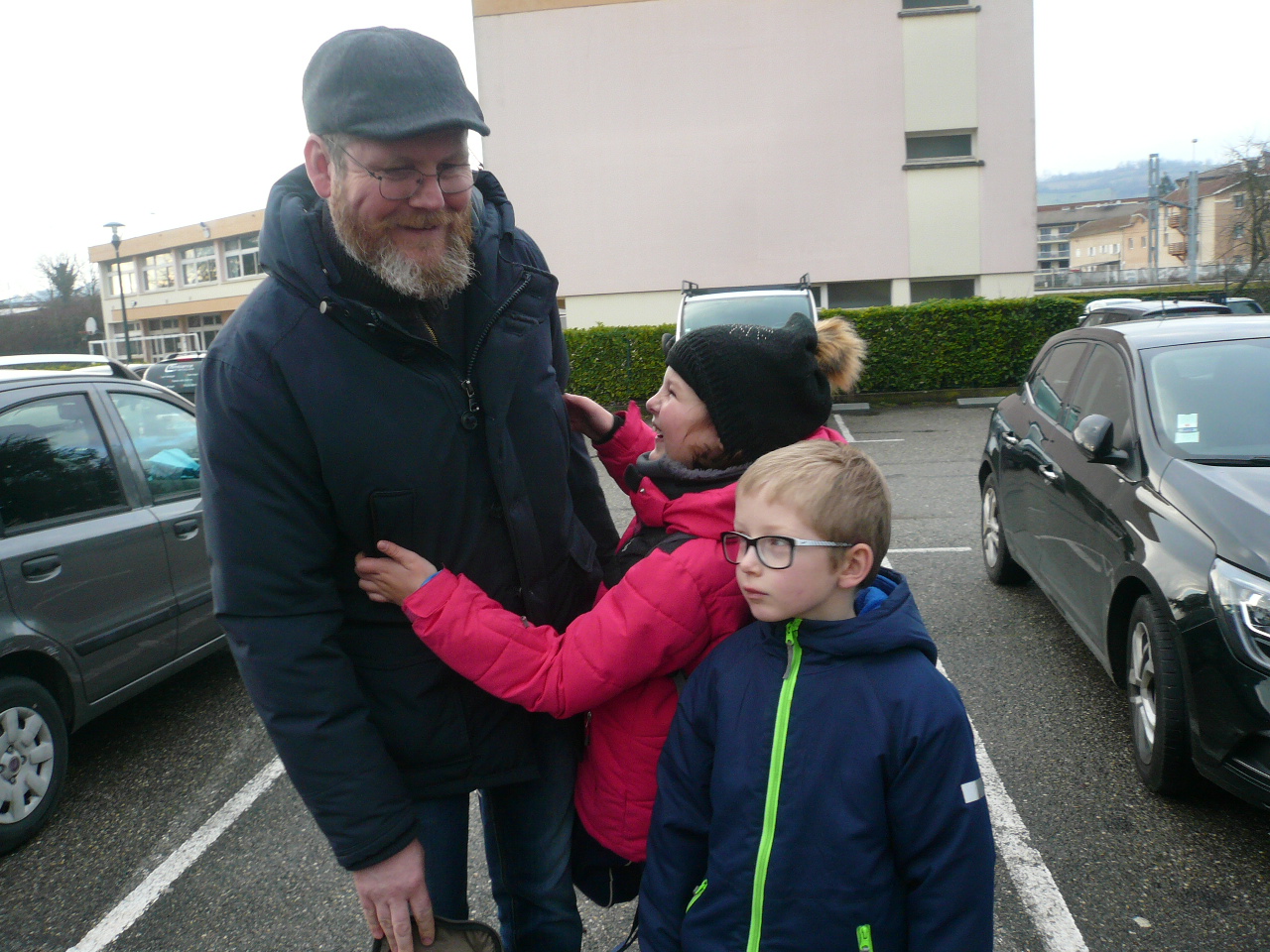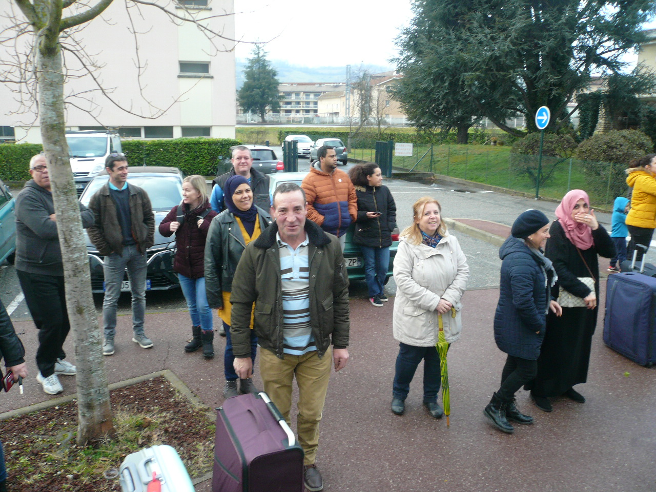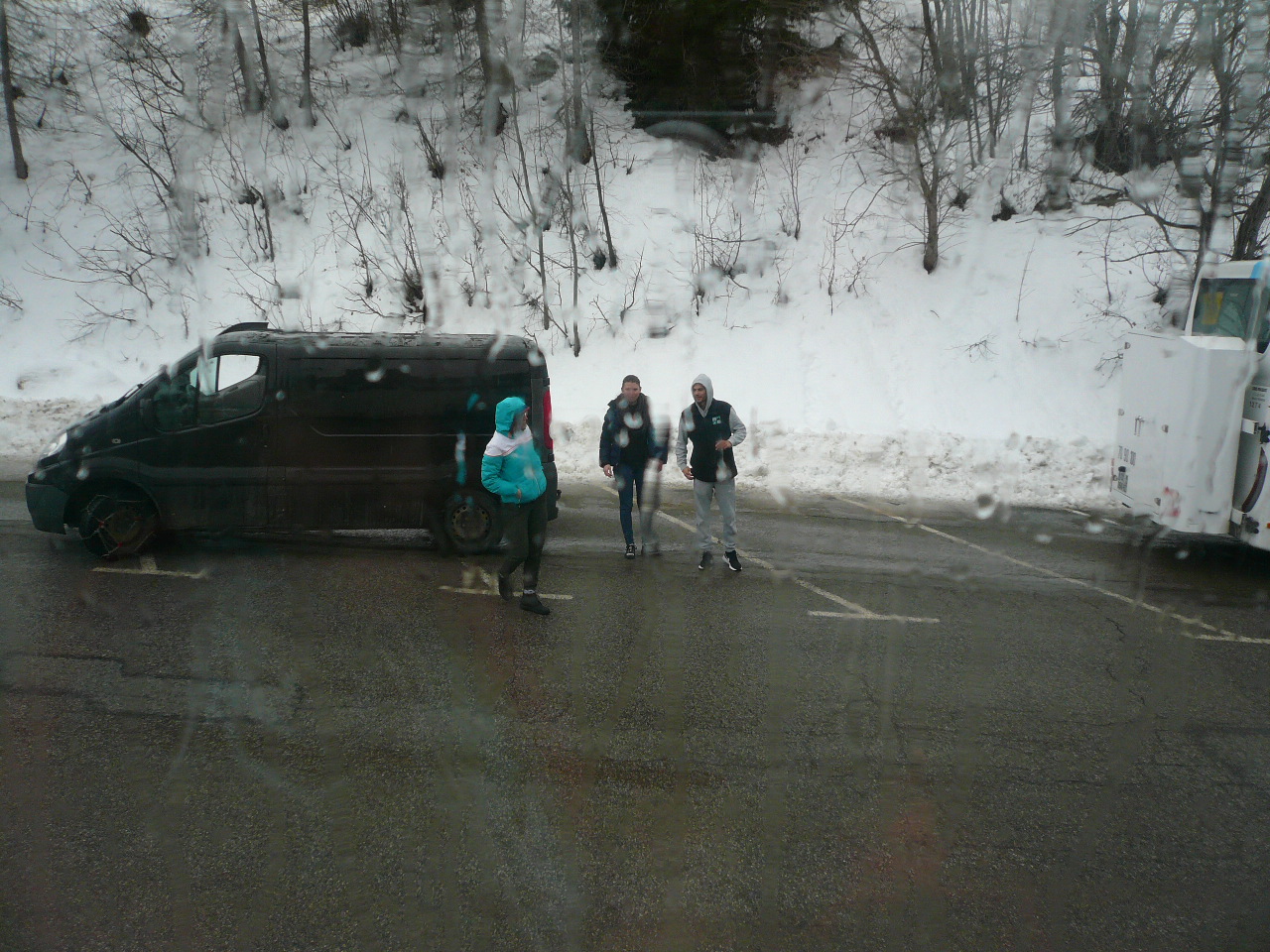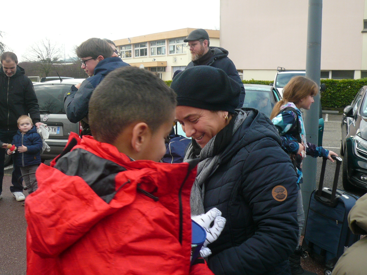 Nous décollons du centre à 13h30. Difficile de vous donner une heure d'arrivée. Cela dépendra des bouchons à Grenoble et des arrêts possibles en route... Au mieux nous serons à l'école à 16h00/16h30...