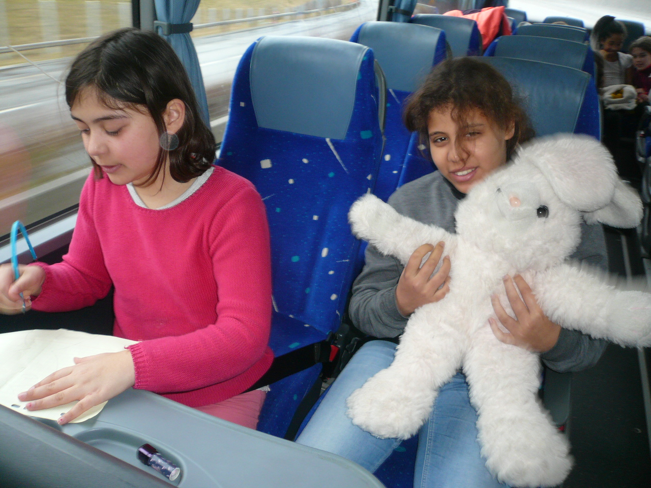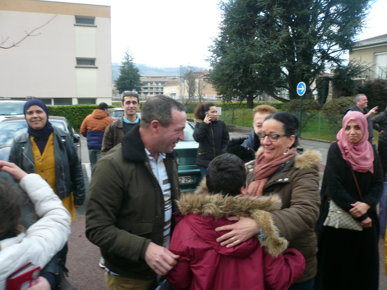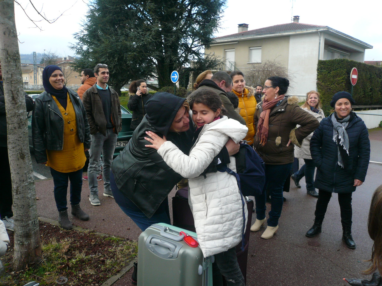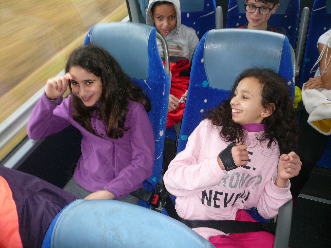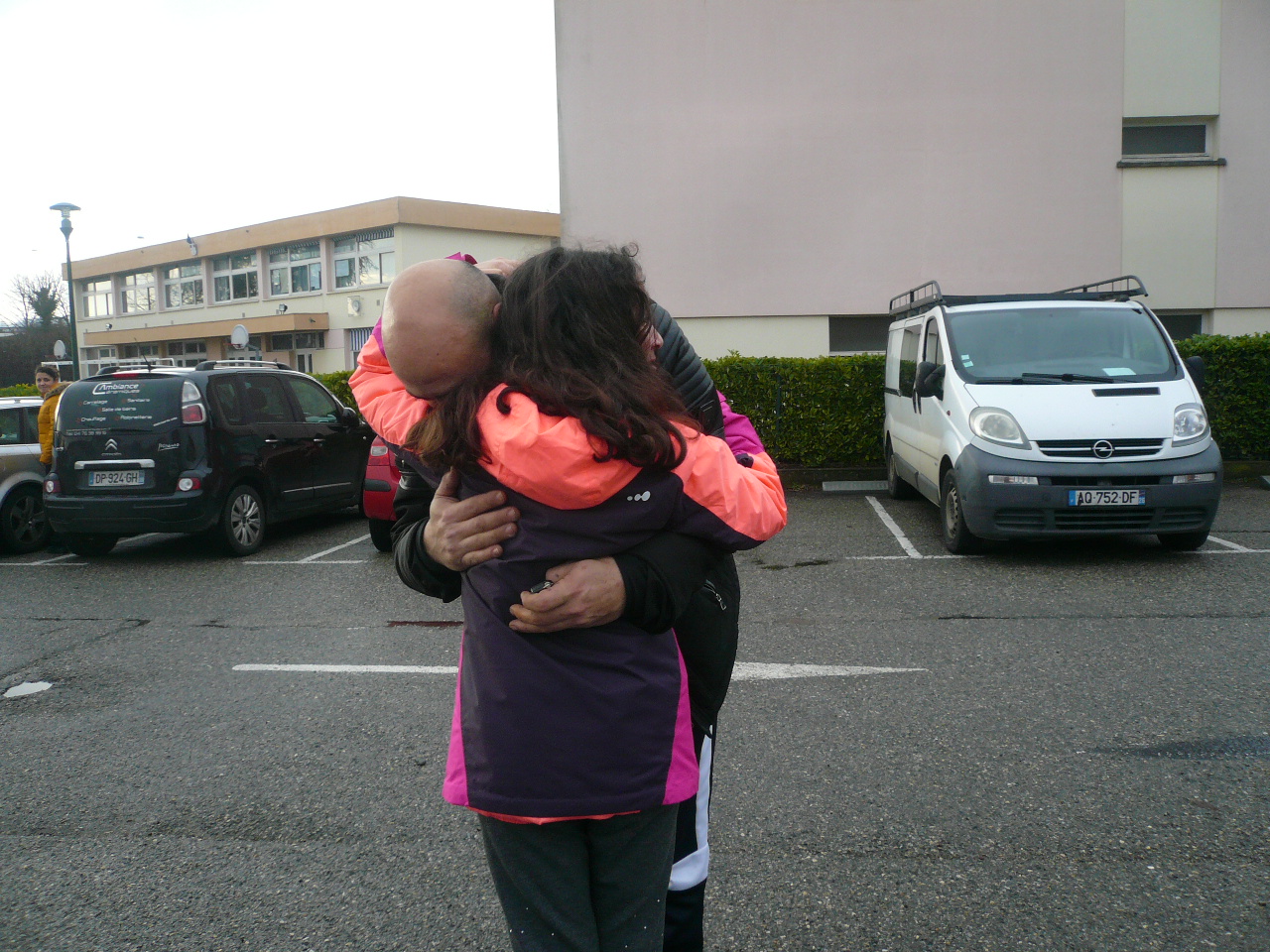 Nous décollons du centre à 13h30. Difficile de vous donner une heure d'arrivée. Cela dépendra des bouchons à Grenoble et des arrêts possibles en route... Au mieux nous serons à l'école à 16h00/16h30...