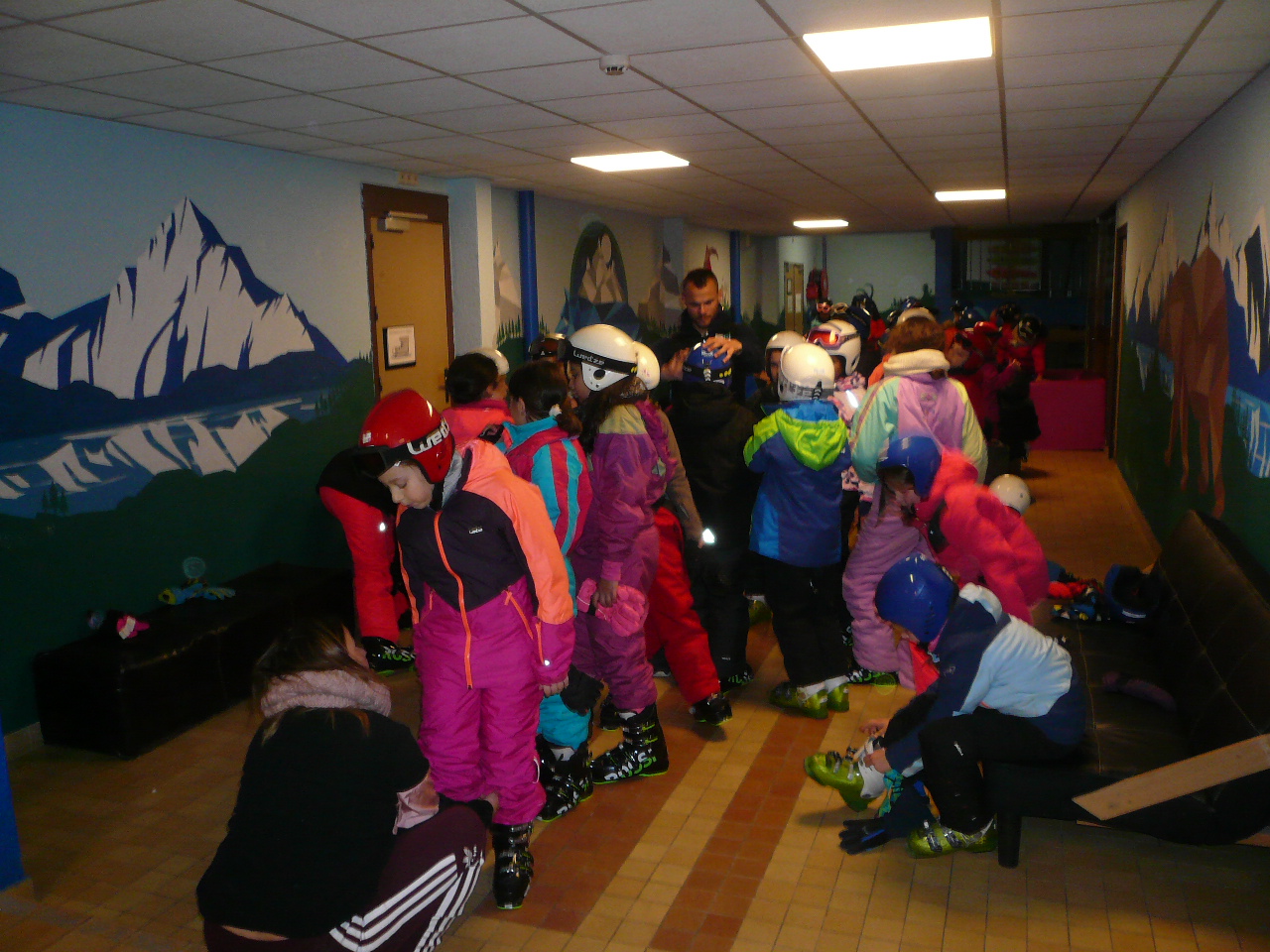 La première séance de ski s'est bien passée, certains étaient stressés au départ mais tous étaient ravis à l'arrivée. Ils ont hâte d'être demain pour y retourner. En plus le soleil a pointé un peu le bout de son nez.
