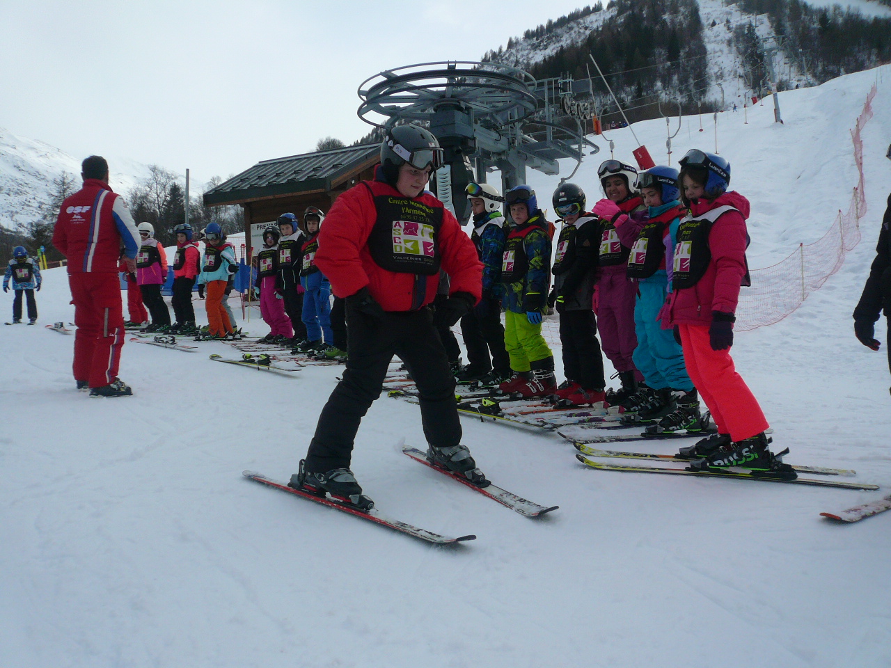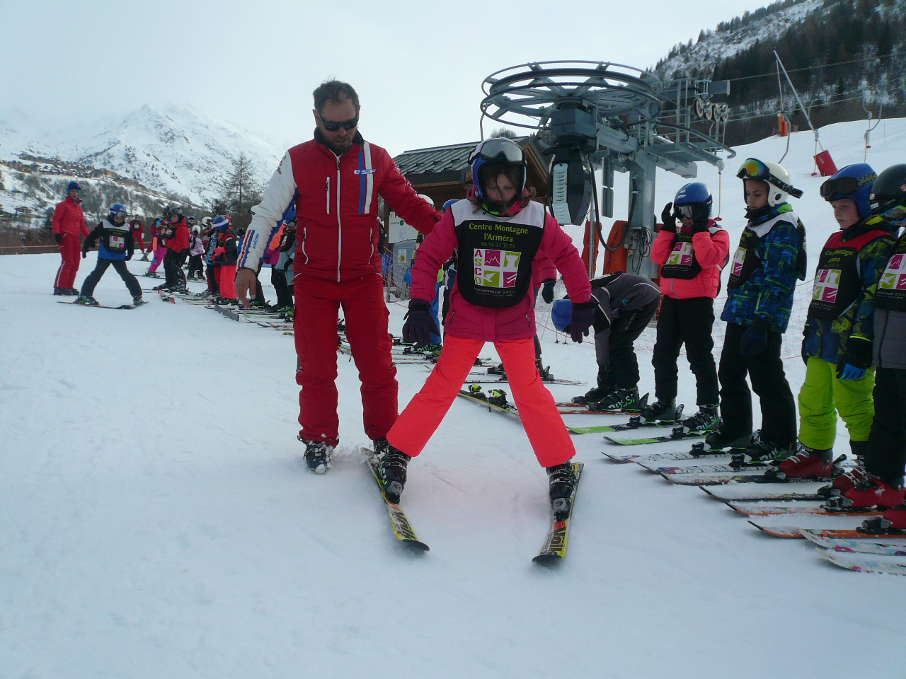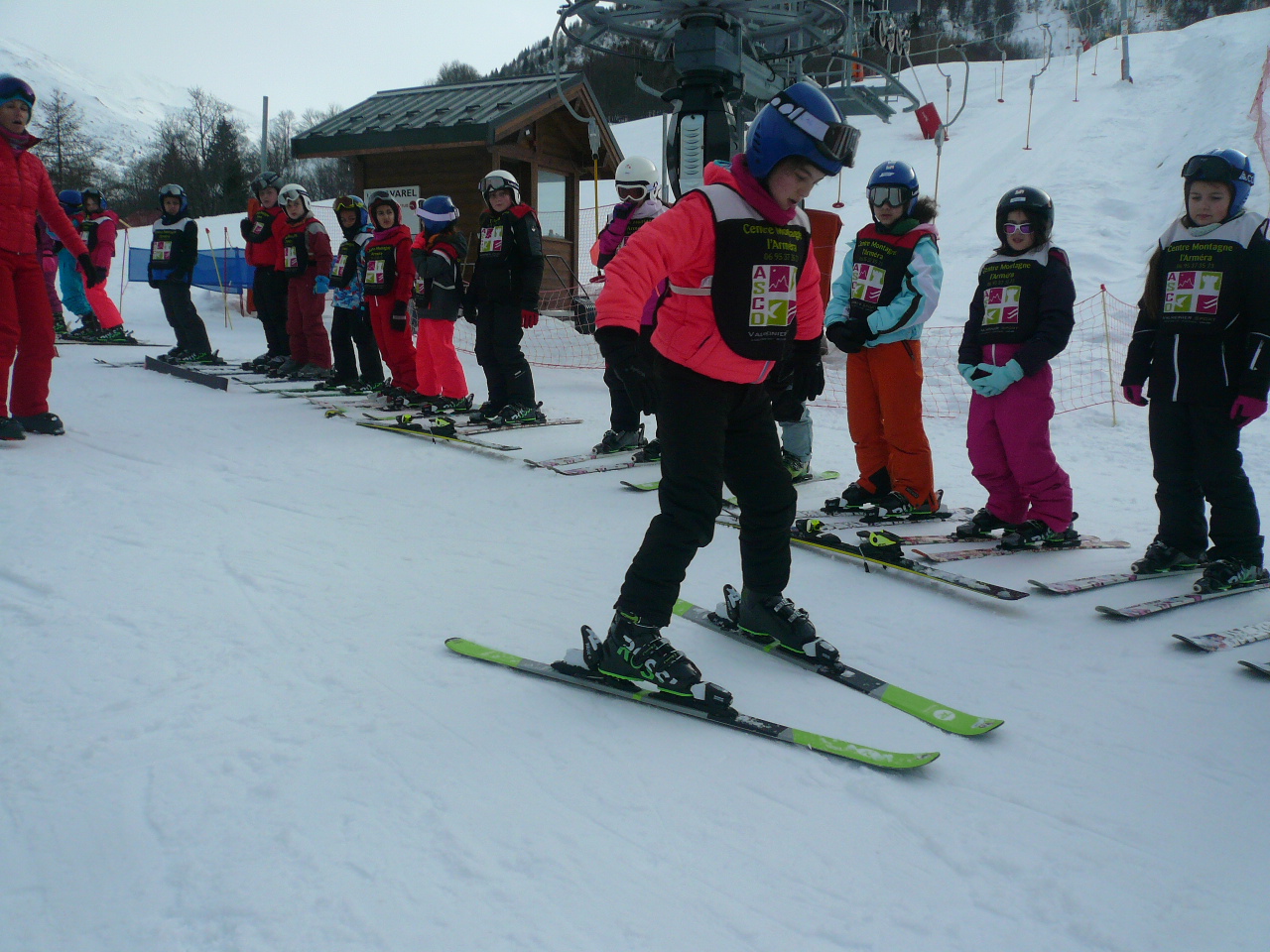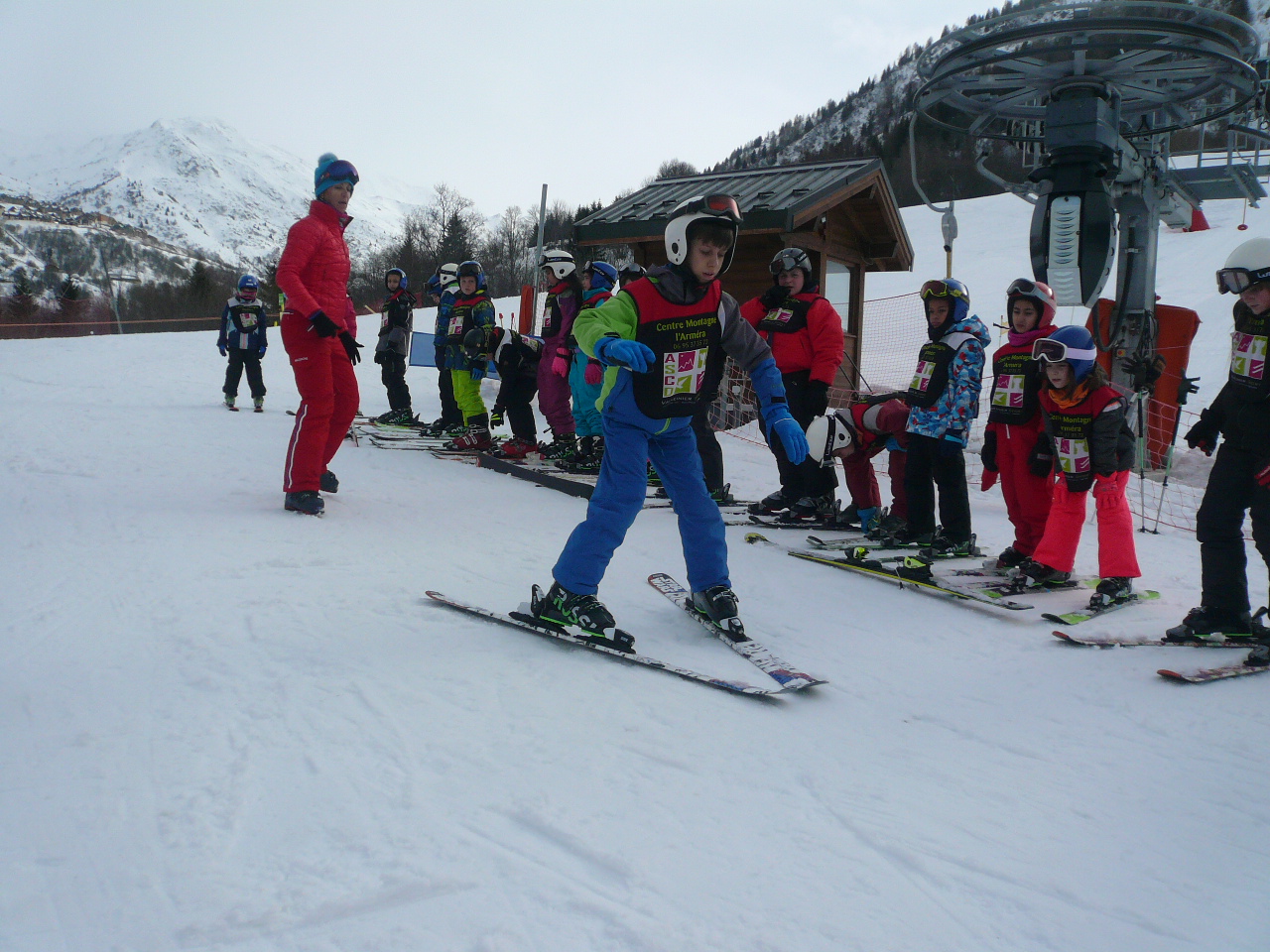 Nous avons fait des groupes de niveau avec les 2 classes de l'école du stade. Il y a 7 groupes en tout et donc 7 moniteurs. Les débutants s'en sont tous bien sortis, ils devraient rapidement aller sur les "vraies" pistes. Les autres ont pris tire-fesses et télésièges, les plus forts sont même allés tester les pistes de Valloire.