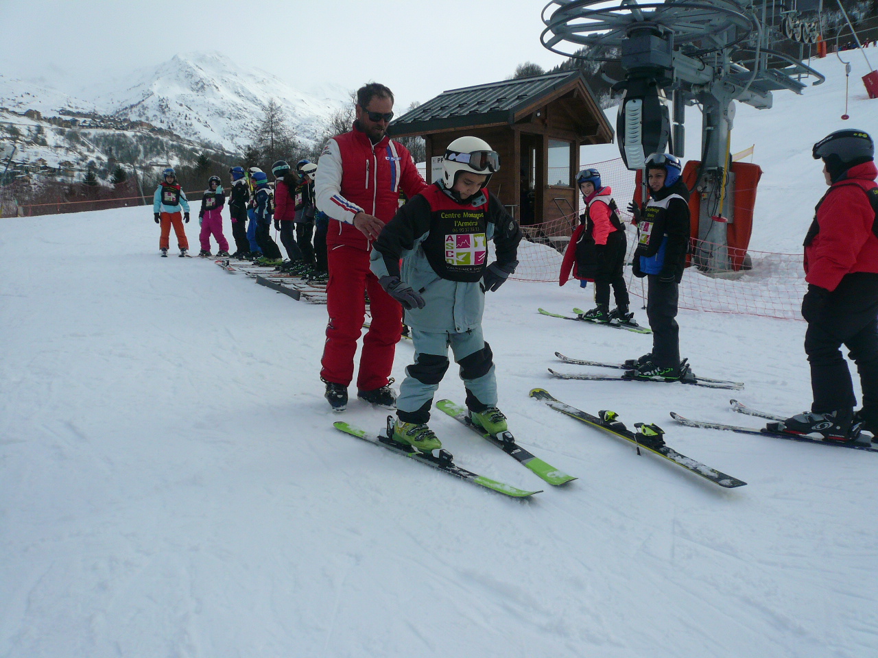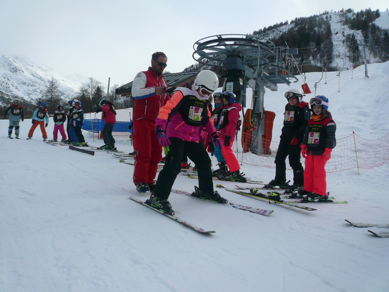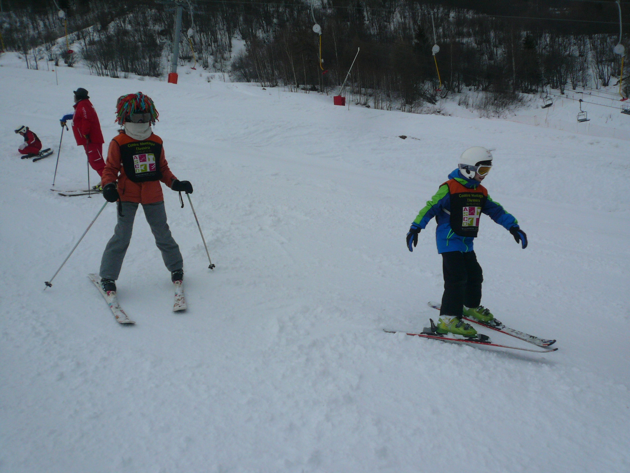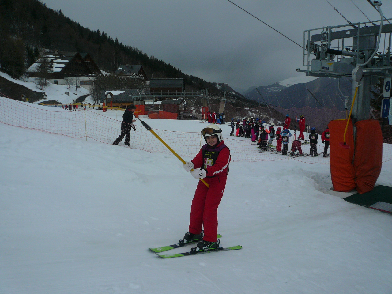 Nous avons fait des groupes de niveau avec les 2 classes de l'école du stade. Il y a 7 groupes en tout et donc 7 moniteurs. Les débutants s'en sont tous bien sortis, ils devraient rapidement aller sur les "vraies" pistes. Les autres ont pris tire-fesses et télésièges, les plus forts sont même allés tester les pistes de Valloire.