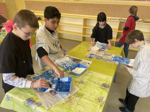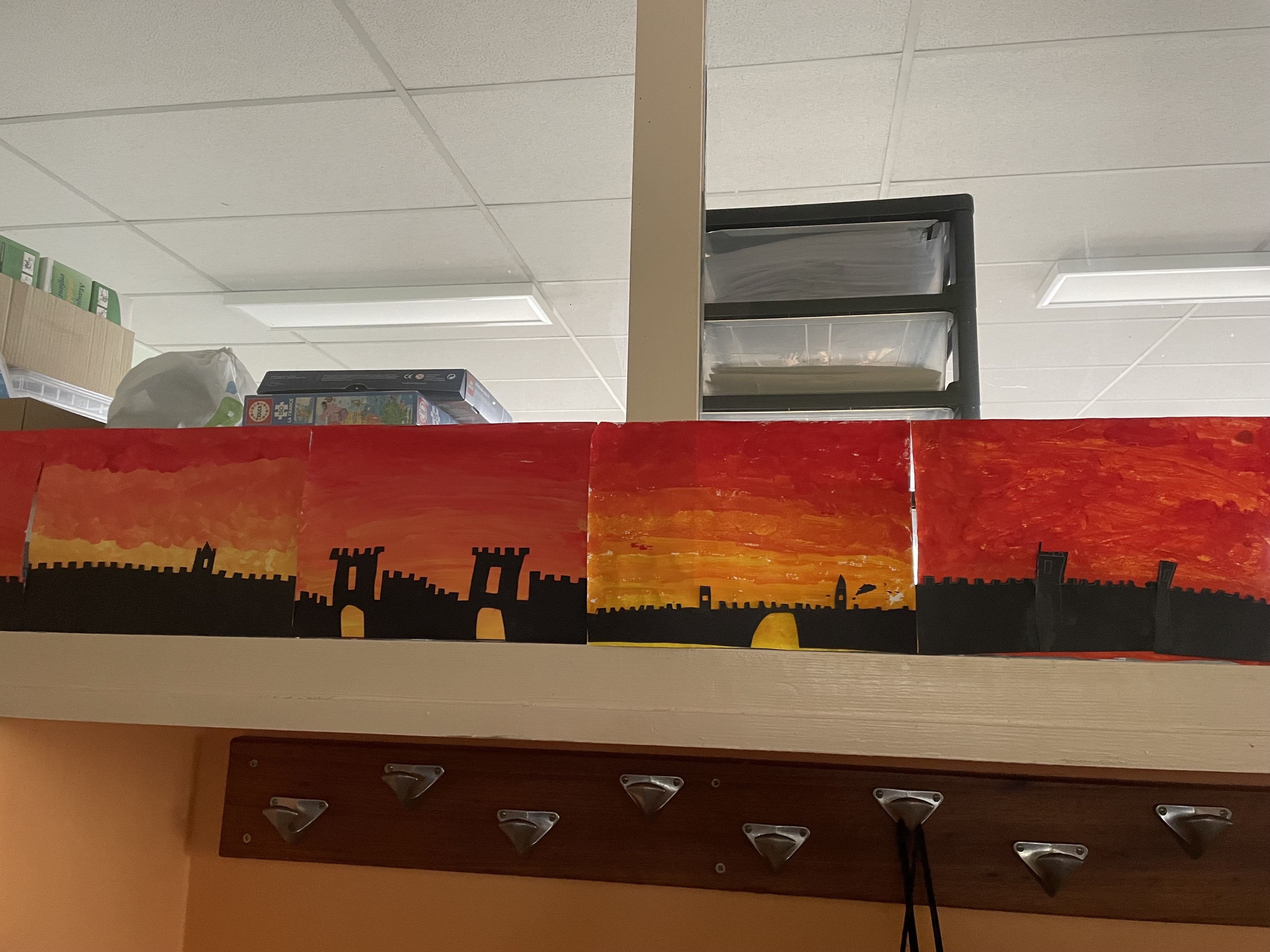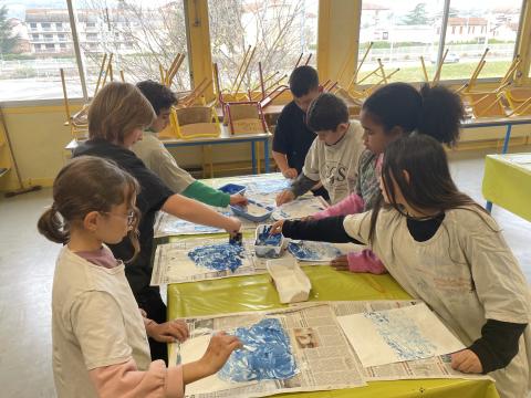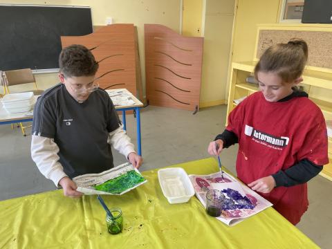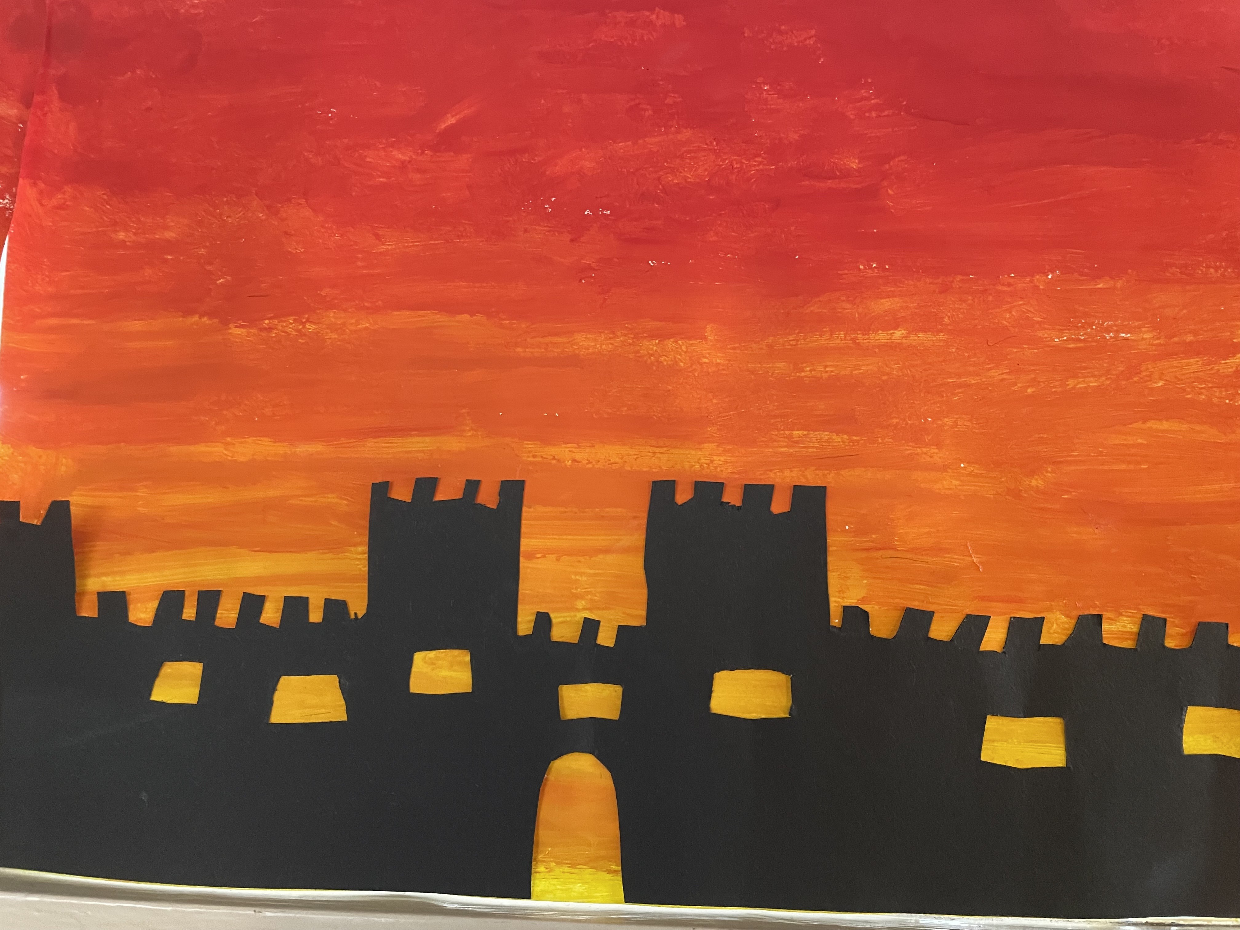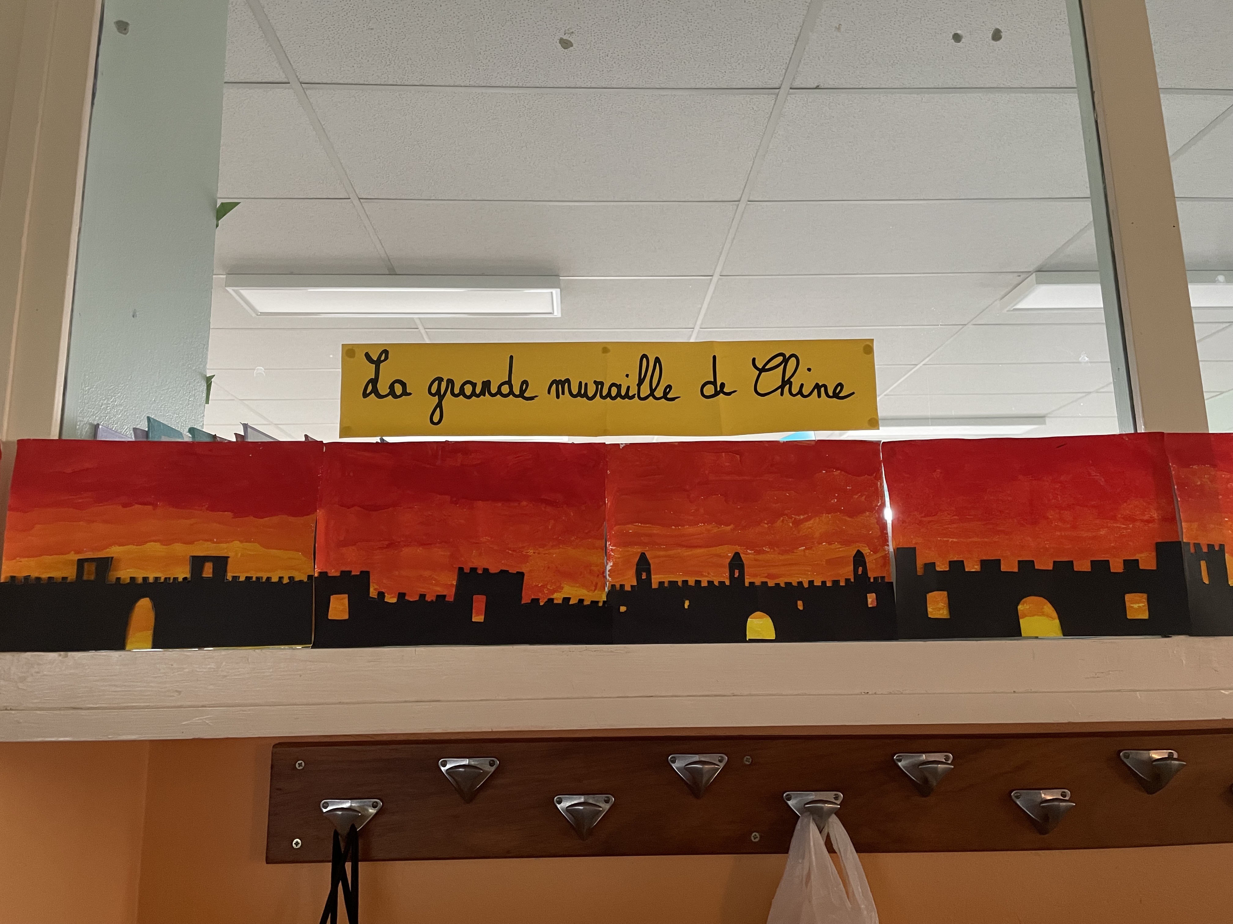 Aujourd'hui c'est peinture ! On réalise un dégradé pour mettre en fond de notre Grande muraille de Chine. Les élèves ont adoré cette activité, certains n'avaient pas touché de pinceaux depuis la maternelle !!! Quelle bonne idée de cadeau d'anniversaire: de la peinture et des pinceaux !