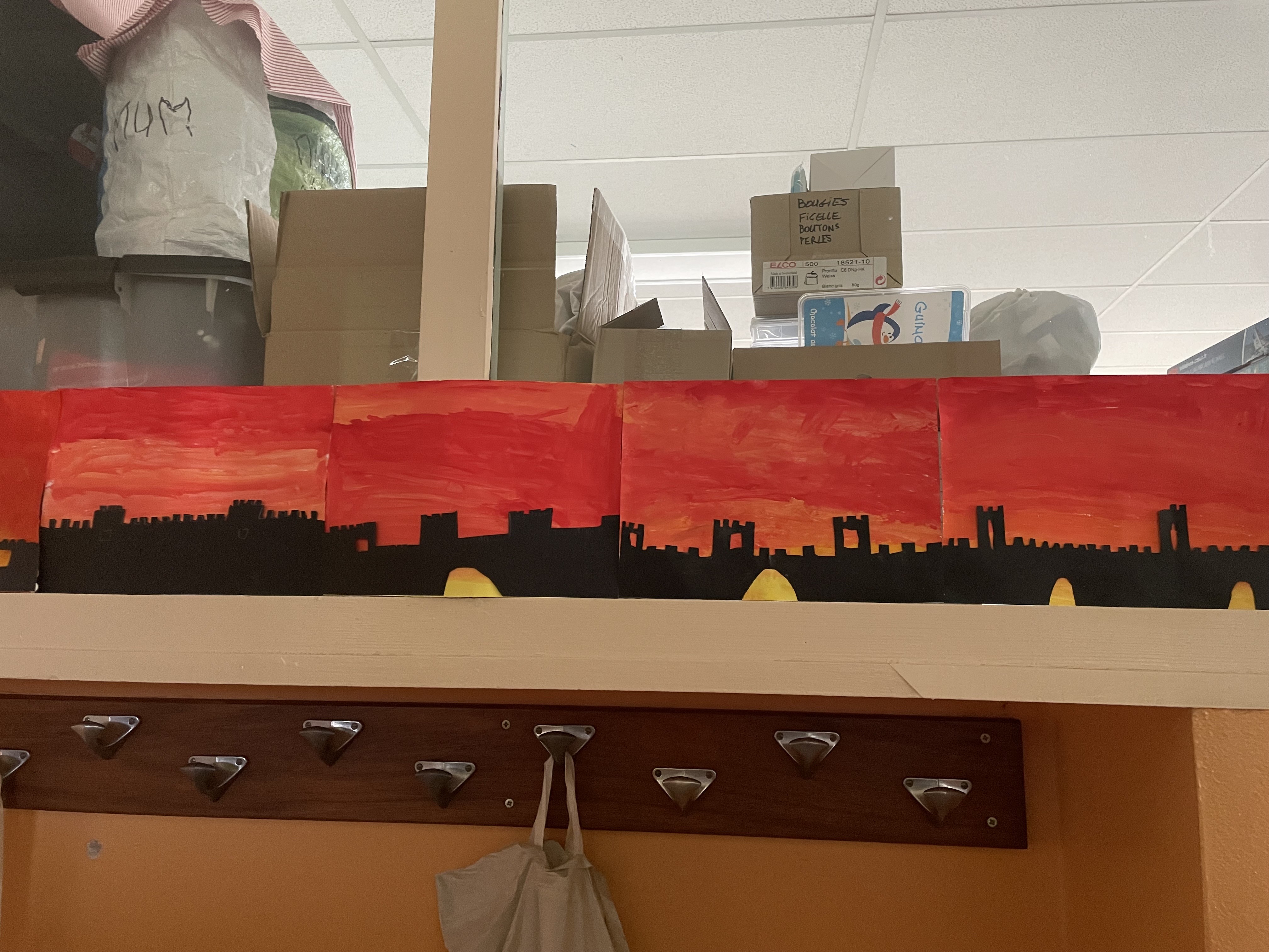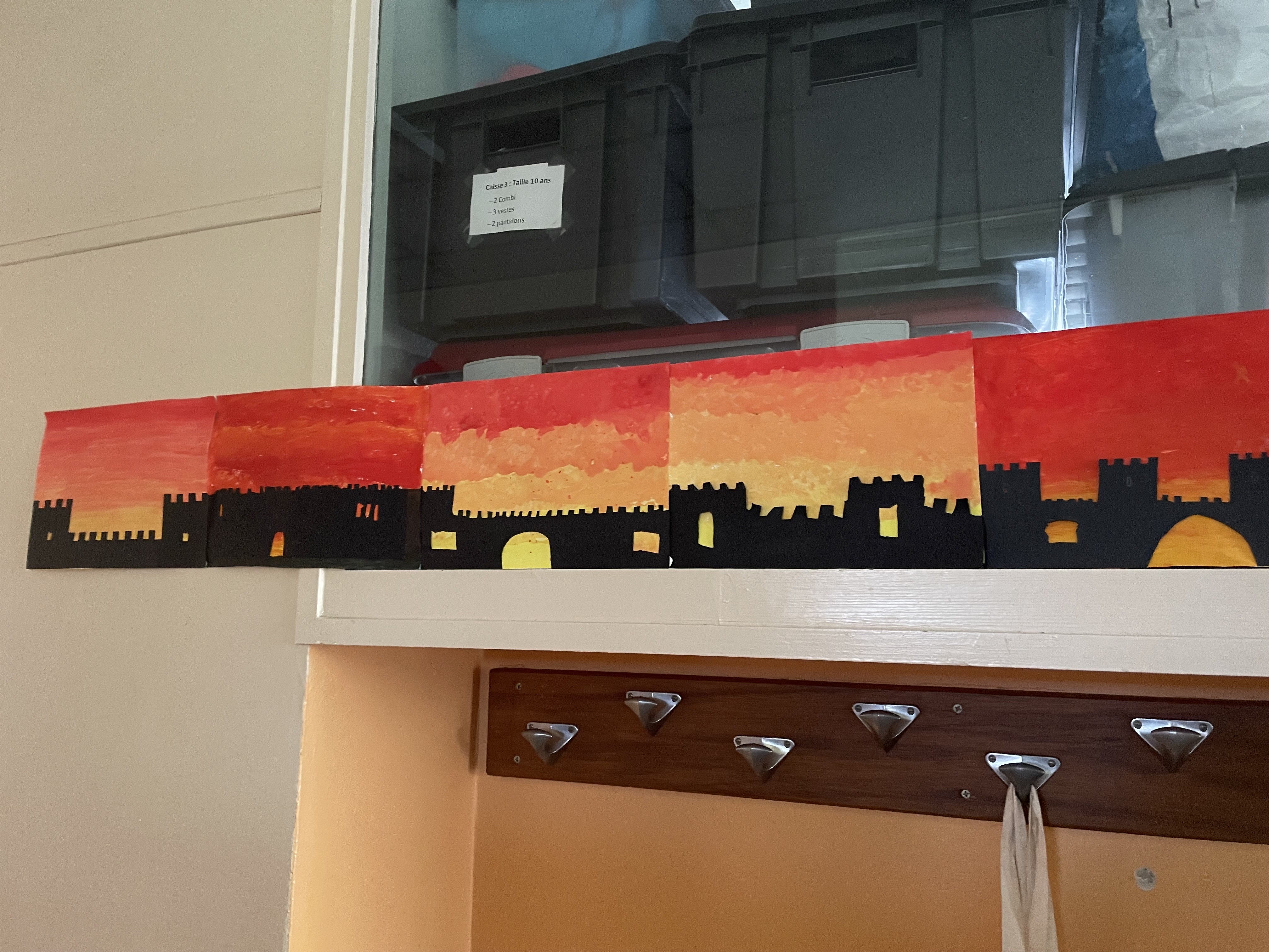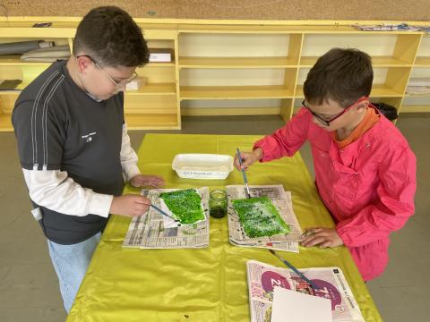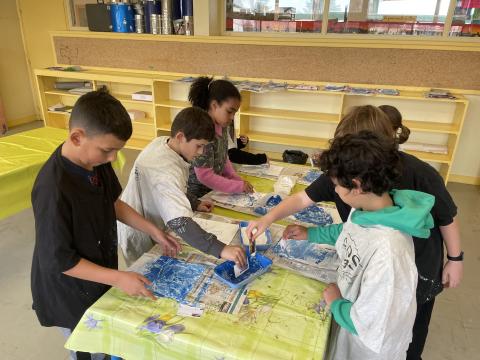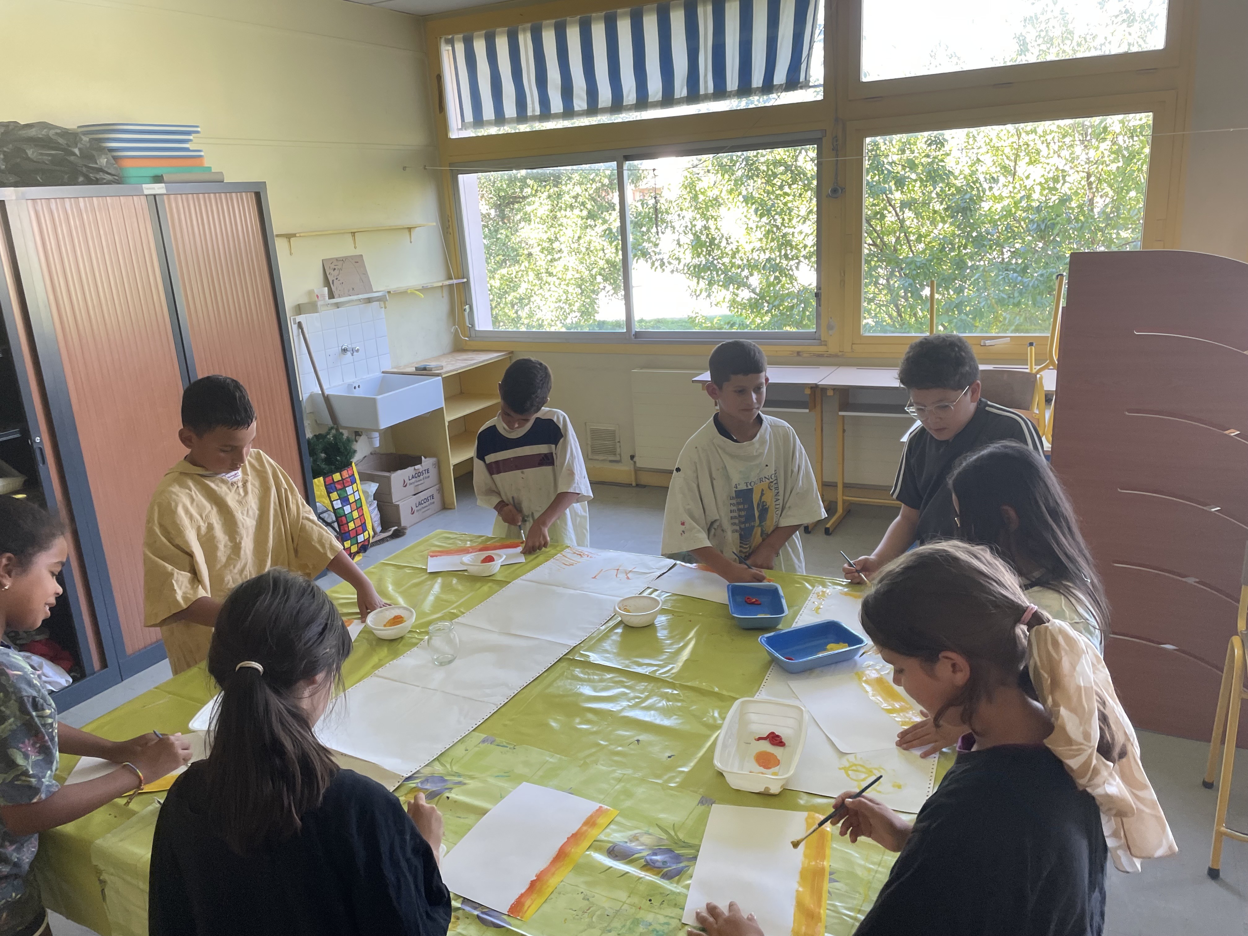 Aujourd'hui c'est peinture ! On réalise un dégradé pour mettre en fond de notre Grande muraille de Chine. Les élèves ont adoré cette activité, certains n'avaient pas touché de pinceaux depuis la maternelle !!! Quelle bonne idée de cadeau d'anniversaire: de la peinture et des pinceaux !