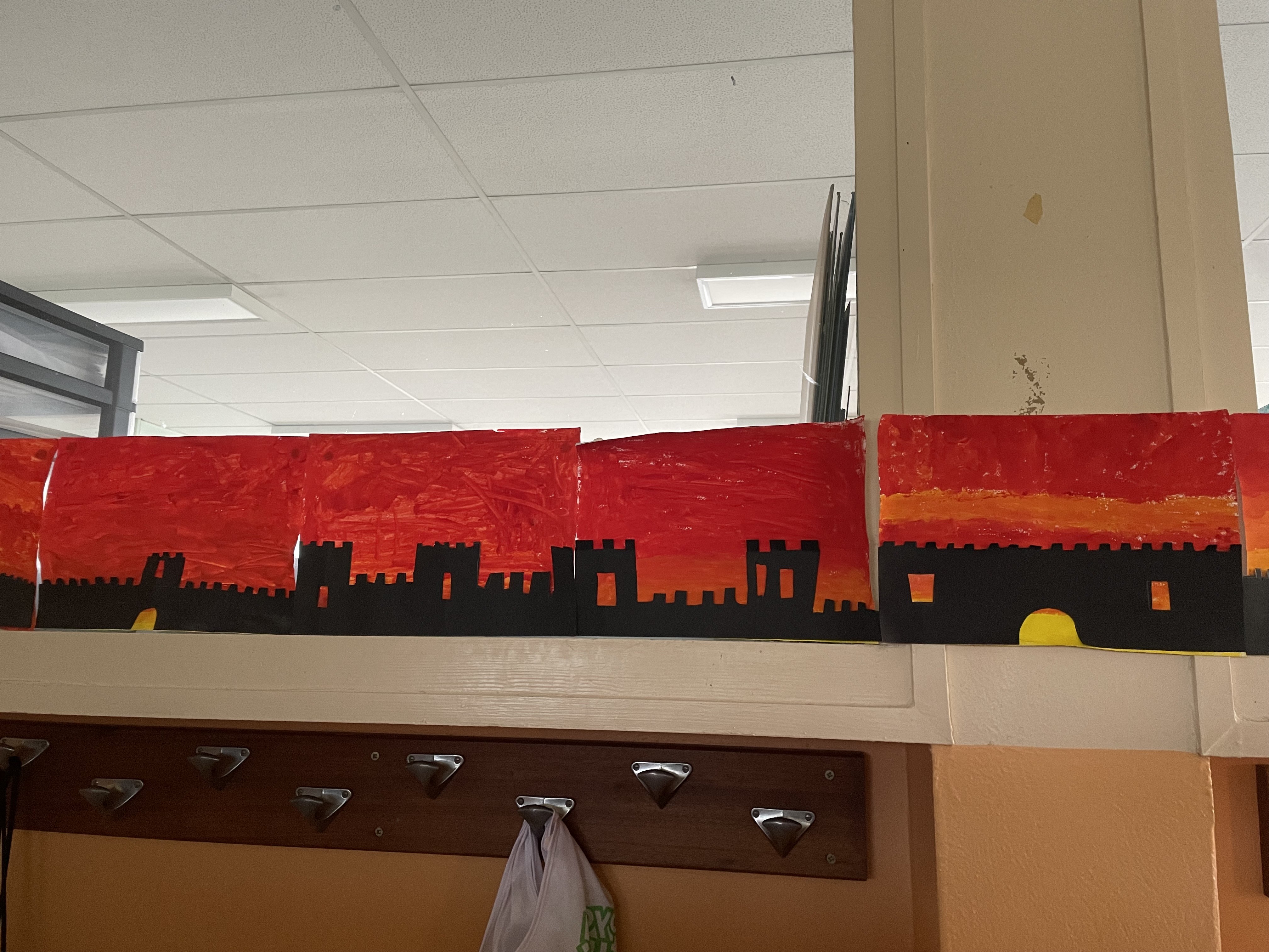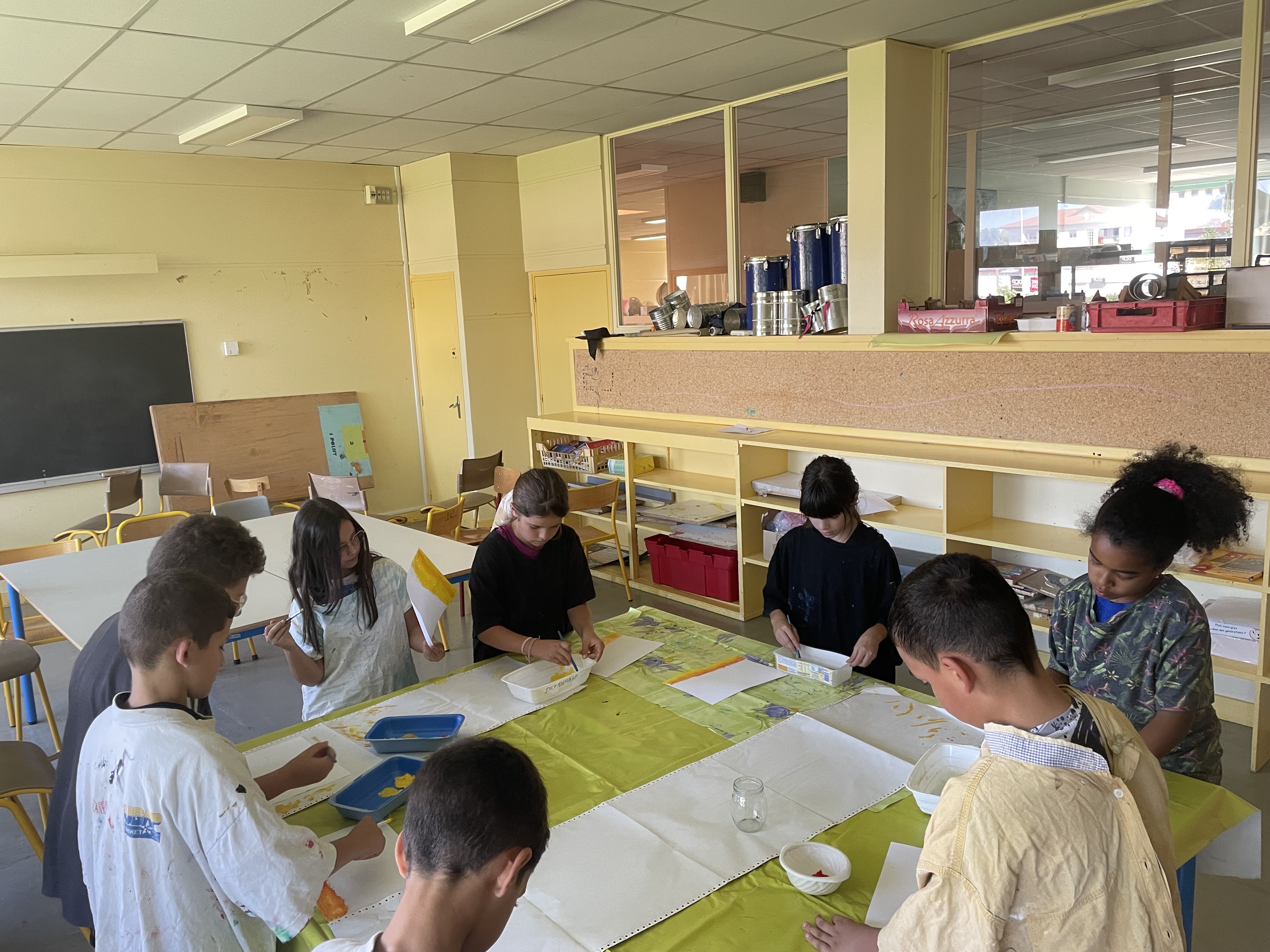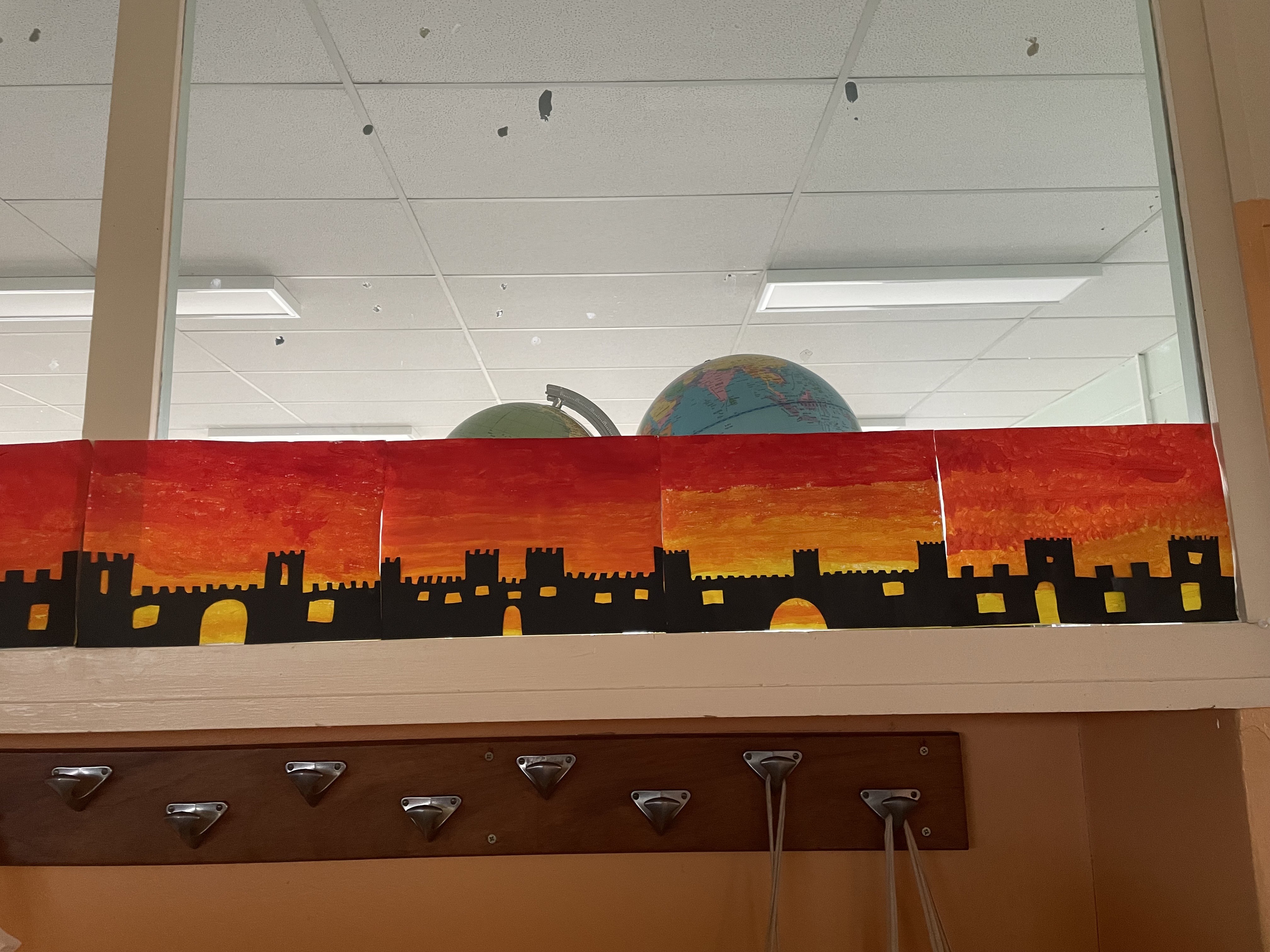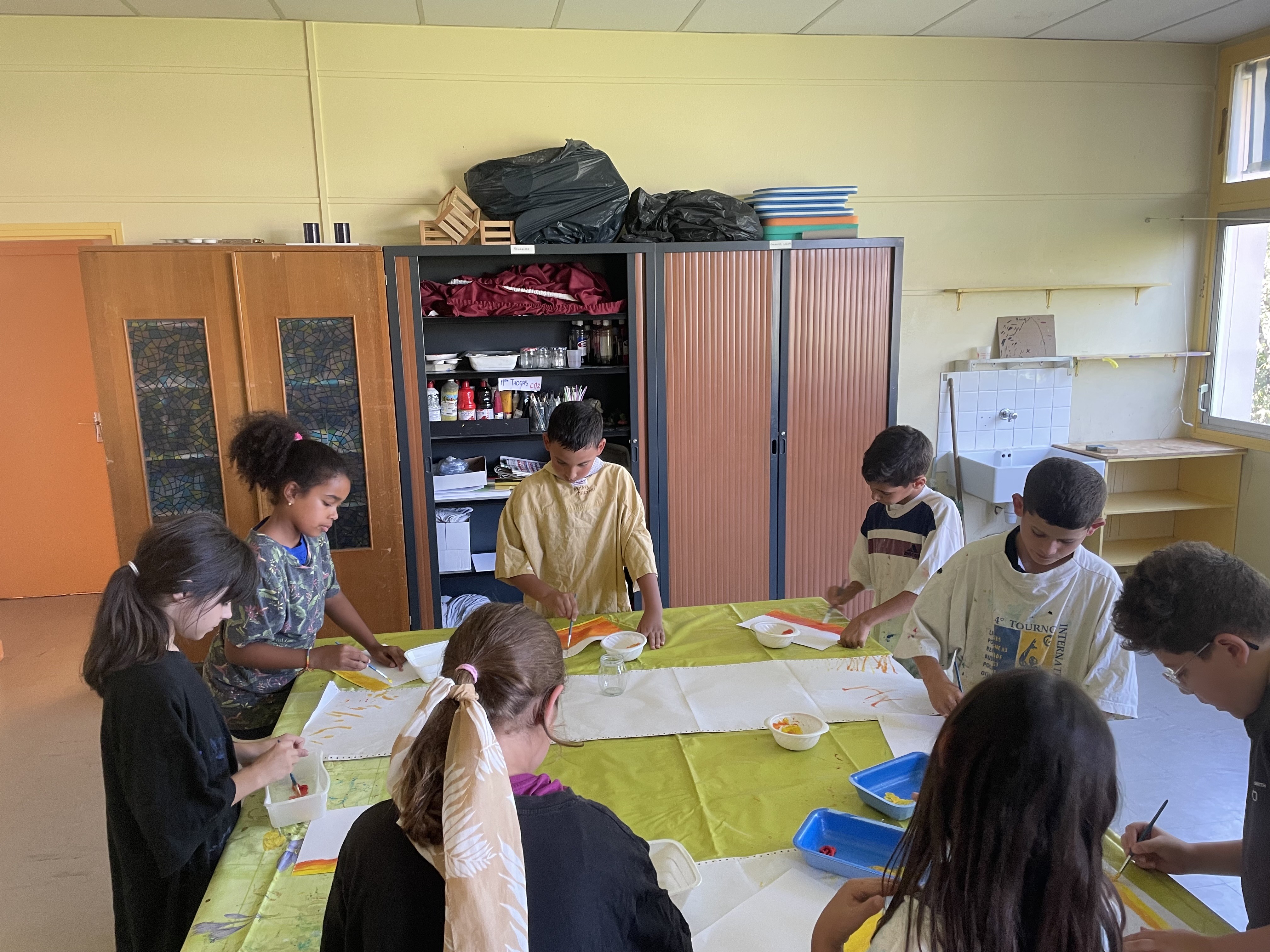 Aujourd'hui c'est peinture ! On réalise un dégradé pour mettre en fond de notre Grande muraille de Chine. Les élèves ont adoré cette activité, certains n'avaient pas touché de pinceaux depuis la maternelle !!! Quelle bonne idée de cadeau d'anniversaire: de la peinture et des pinceaux !