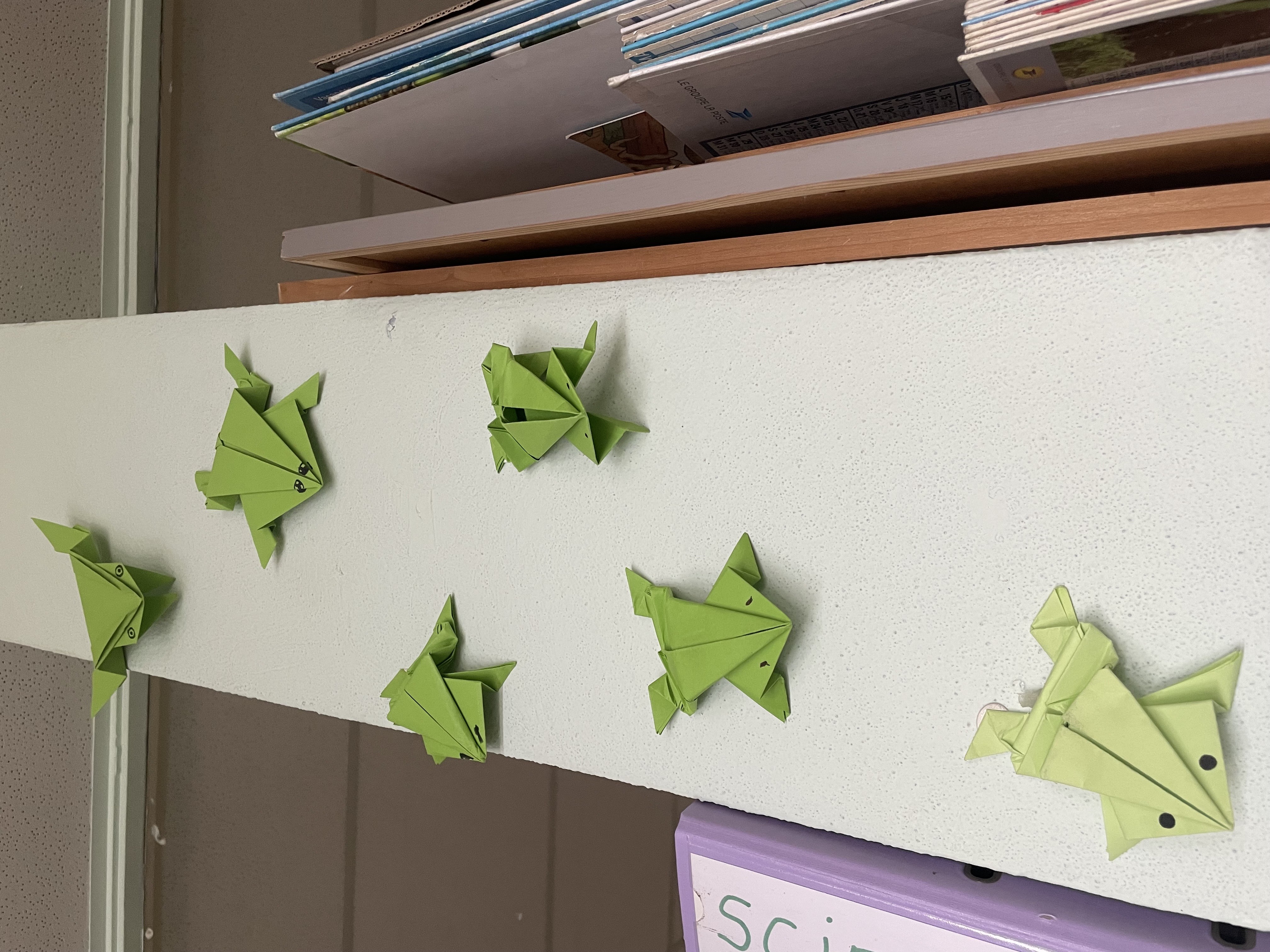 Pour illustrer l'oeuvre étudié en Histoire des arts, La princesse et la grenouille, on a réalisé des grenouilles en origami en suivant un tutoriel, ou plutôt on a essayé... pas facile pour tout le monde ! Là aussi certains ont un sérieux manque d'entraînement dans les activités de pliage, découpage... une bonne idée d'occupation pendant les journées pluvieuses à la maison !
