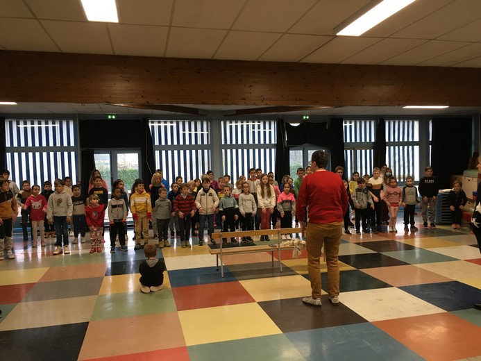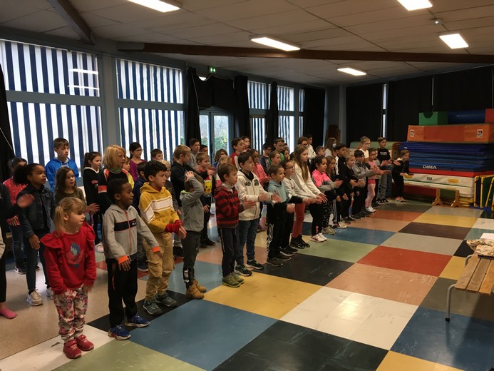 Les élèves de l'élémentaire ont retrouvé ceux de maternelle pour le concert traditionnel de fin d'année. Chaque classe a ainsi pu présenter aux autres les chants et percussions travaillés depuis le début de l'année. En écoutant chanter les petites sections de maternelle, les CM ont pris conscience du chemin qu'ils avaient parcouru depuis leur entrée à l'école !