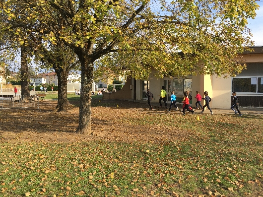 C'est sous un grand soleil que tous les élèves de l'école élémentaire de La Plaine ont participé au courseton ce vendredi 12 novembre. La classe de CP s'est élancée en premier, encadrée pour leur premier tour par deux élèves de CM2. Puis ça a été le tour de la classe de CE1 puis de celle de CE2/CM1 et enfin la nôtre. Tous les élèves ont réalisé de belles performances dans une ambiance excellente. Chaque classe était très encouragée par les autres. Les élèves de ma classe ont bien géré le comptage des tours, merci à eux. A la fin, le goûter bien mérité a été très apprécié !