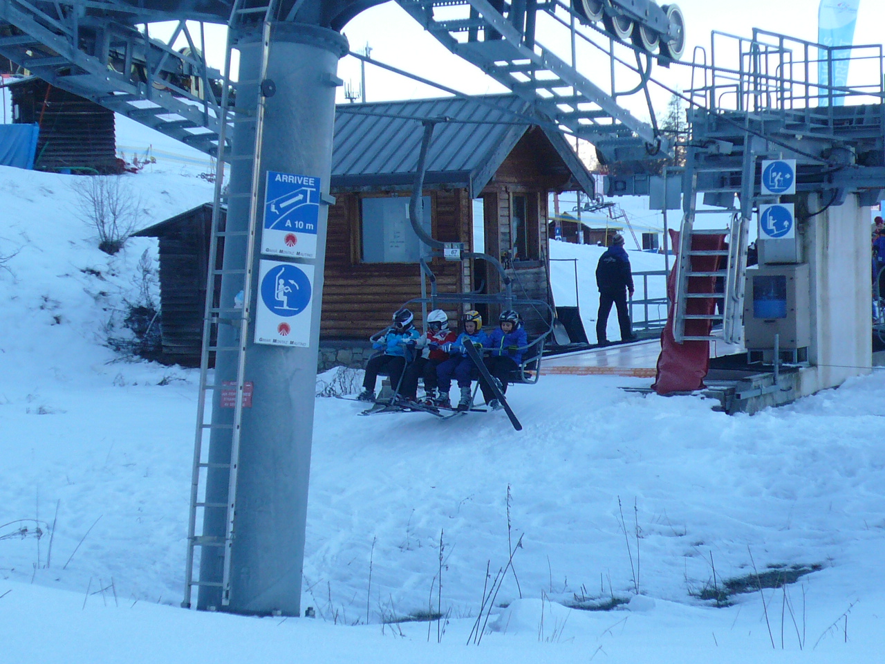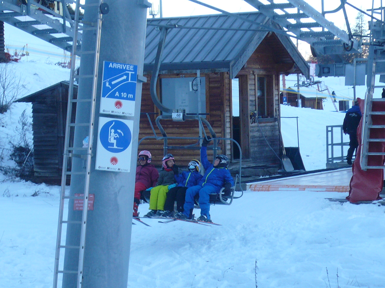 - Séance de ski de ce matin: 2 des 3 grands groupes de débutants ont pris le télésiège pour la première fois, sensations garanties, visages crispés au départ mais sourires au bout de quelques mètres ! Certains ont descendu les pistes bleues, de vrais champions !