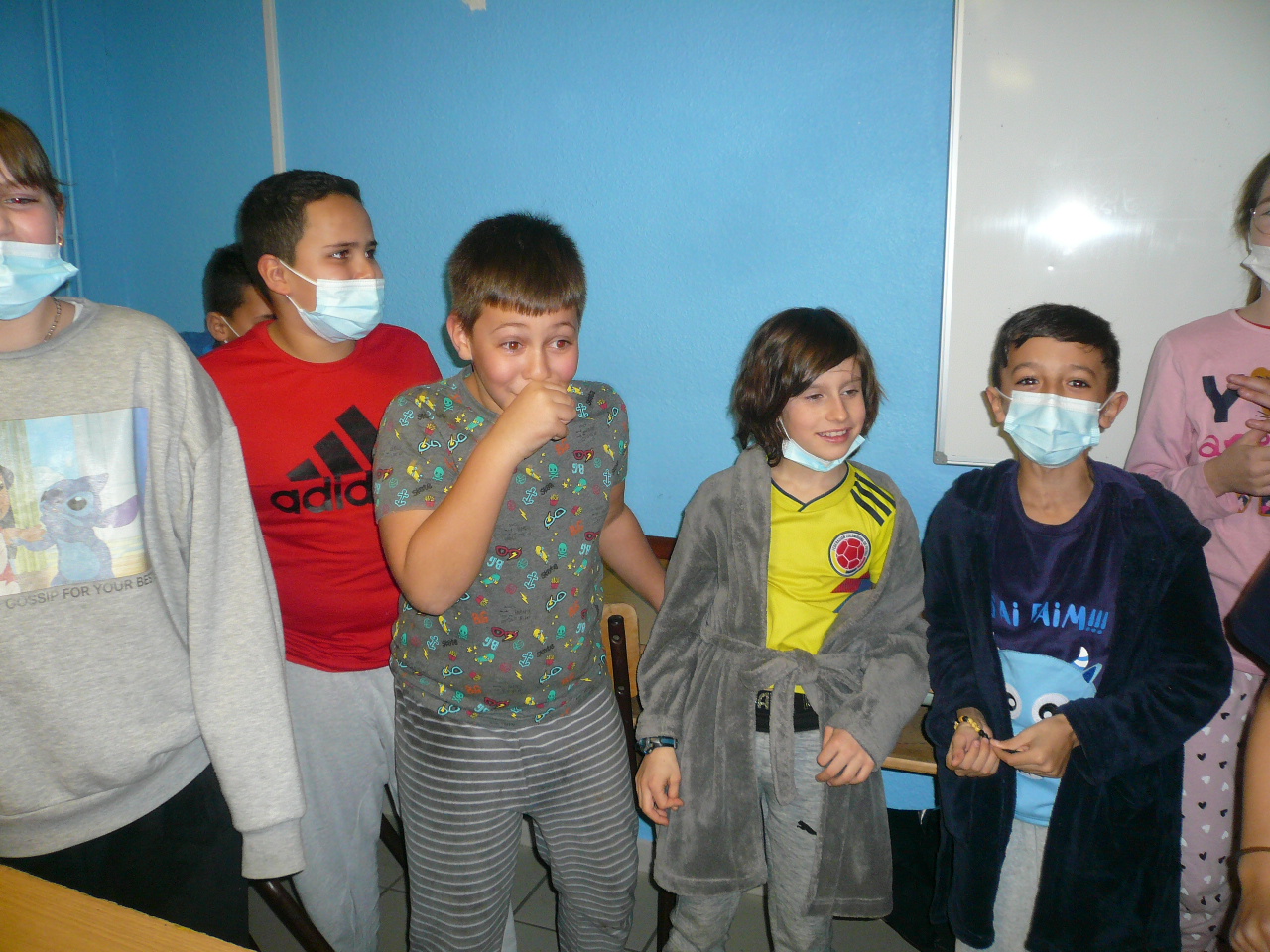 - Pour la veillée du soir, il y avait 3 groupes: un blindtest pour les excités (heureusement que je ne peux pas mettre de son sur les photos !), un temps calme dans les chambres pour les fatigués et un repos obligatoire pour Sacha, Imed et Véra ! Hum hum...