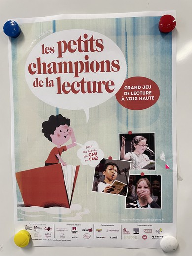 Notre classe, ainsi que celle de Mme Malexieux, se sont engagées dans le projet Les petits champions de la lecture. C'est un projet national qui se déroule chaque année. Il s'agit de lire à voix haute le texte de son choix pendant 3 minutes en mettant le ton.
