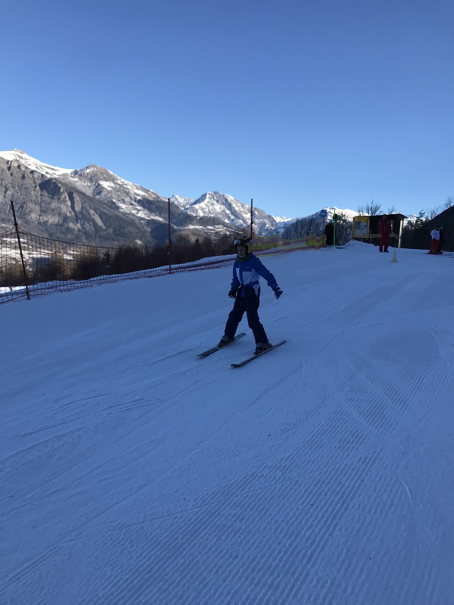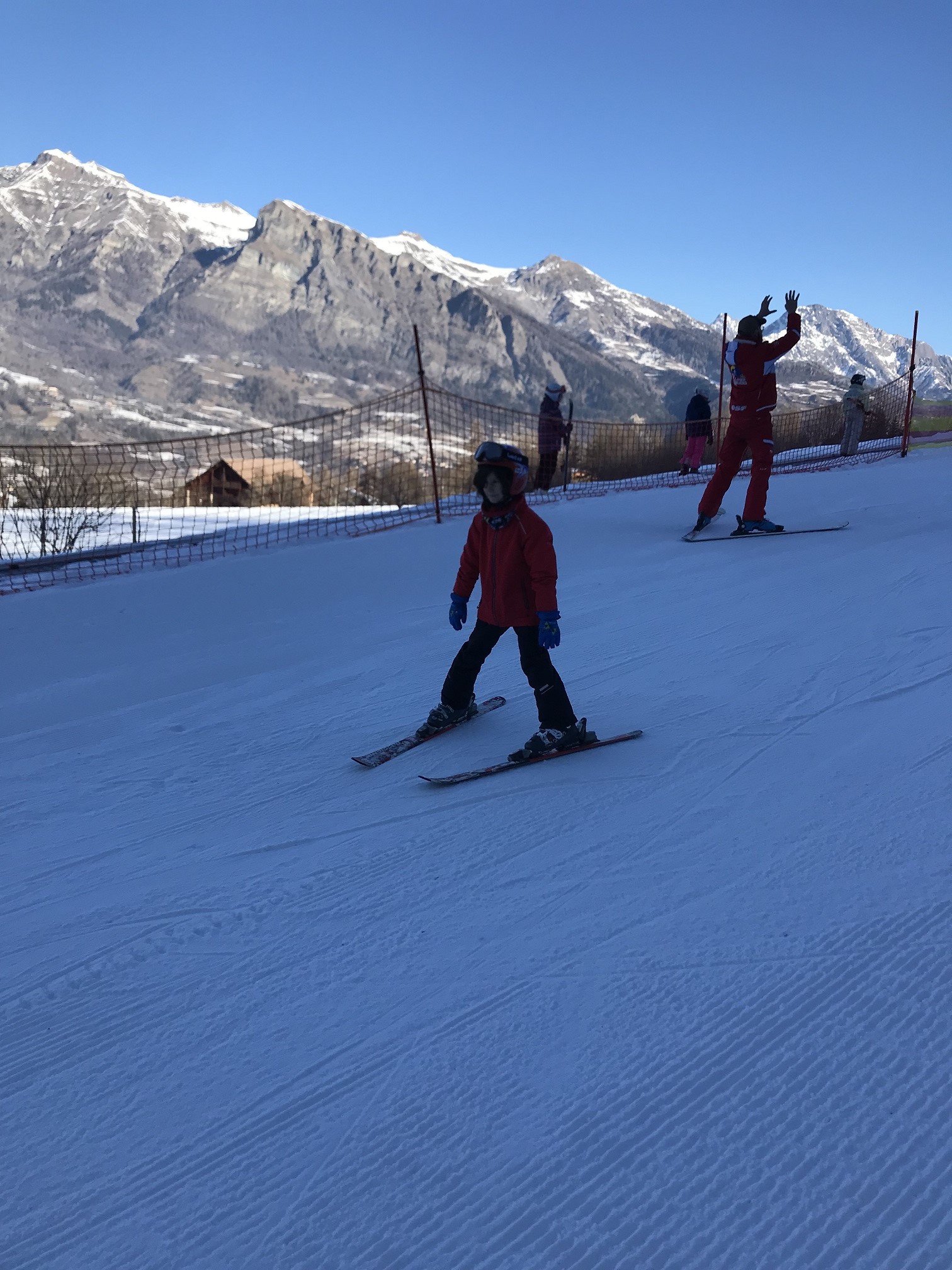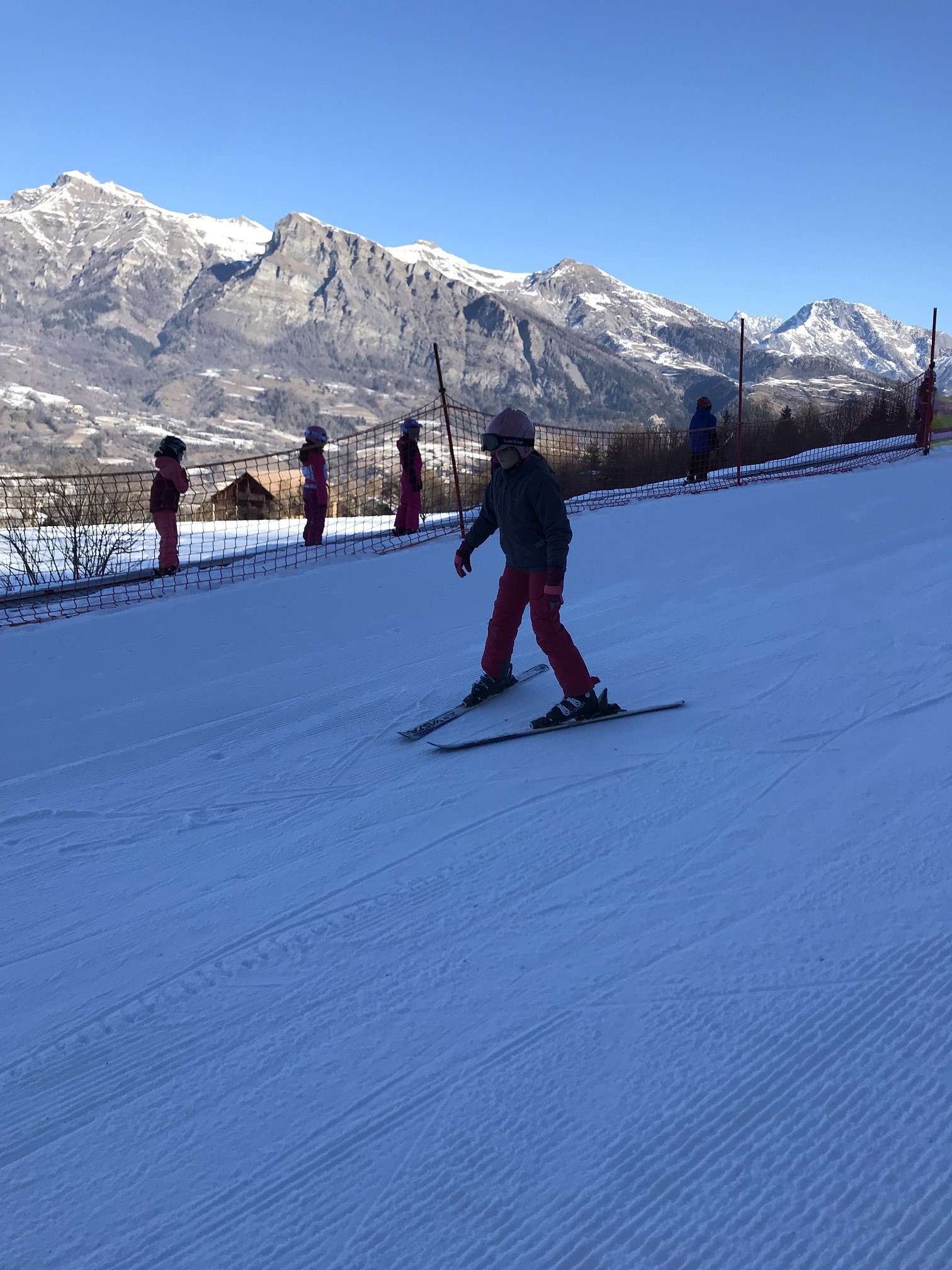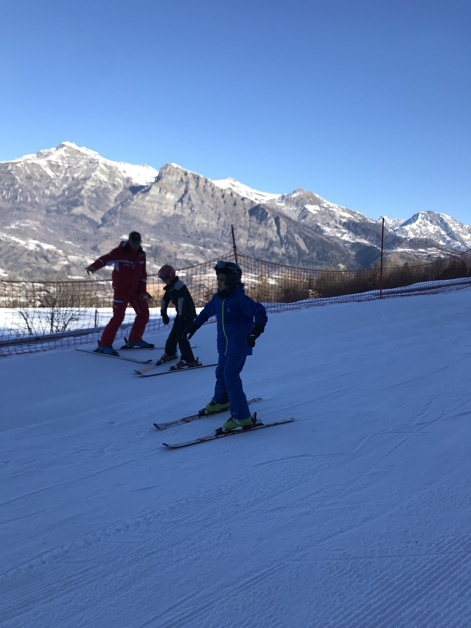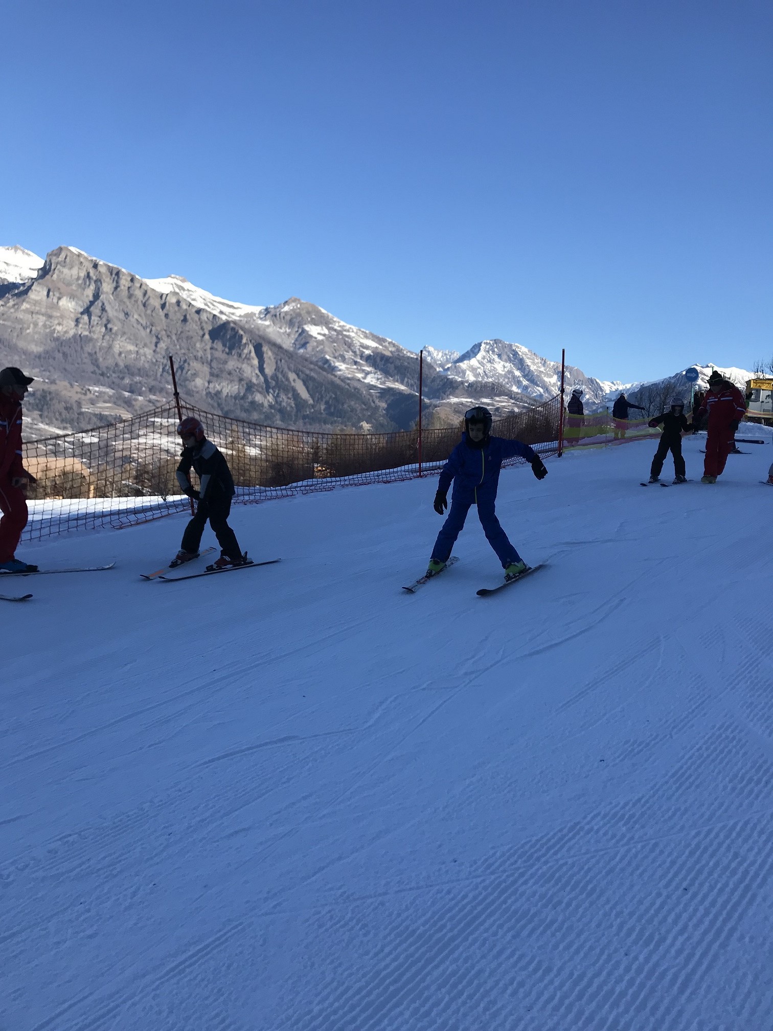 La première séance de ski s'est très bien passée, ils sont tous ravis ! Les débutants arrivent tous à freiner en chasse-neige. ils sont restés sur le bas des pistes pour apprendre les bases. Sacha et Thibault, eux, sont partis sur les "vraies" pistes en télésiège.