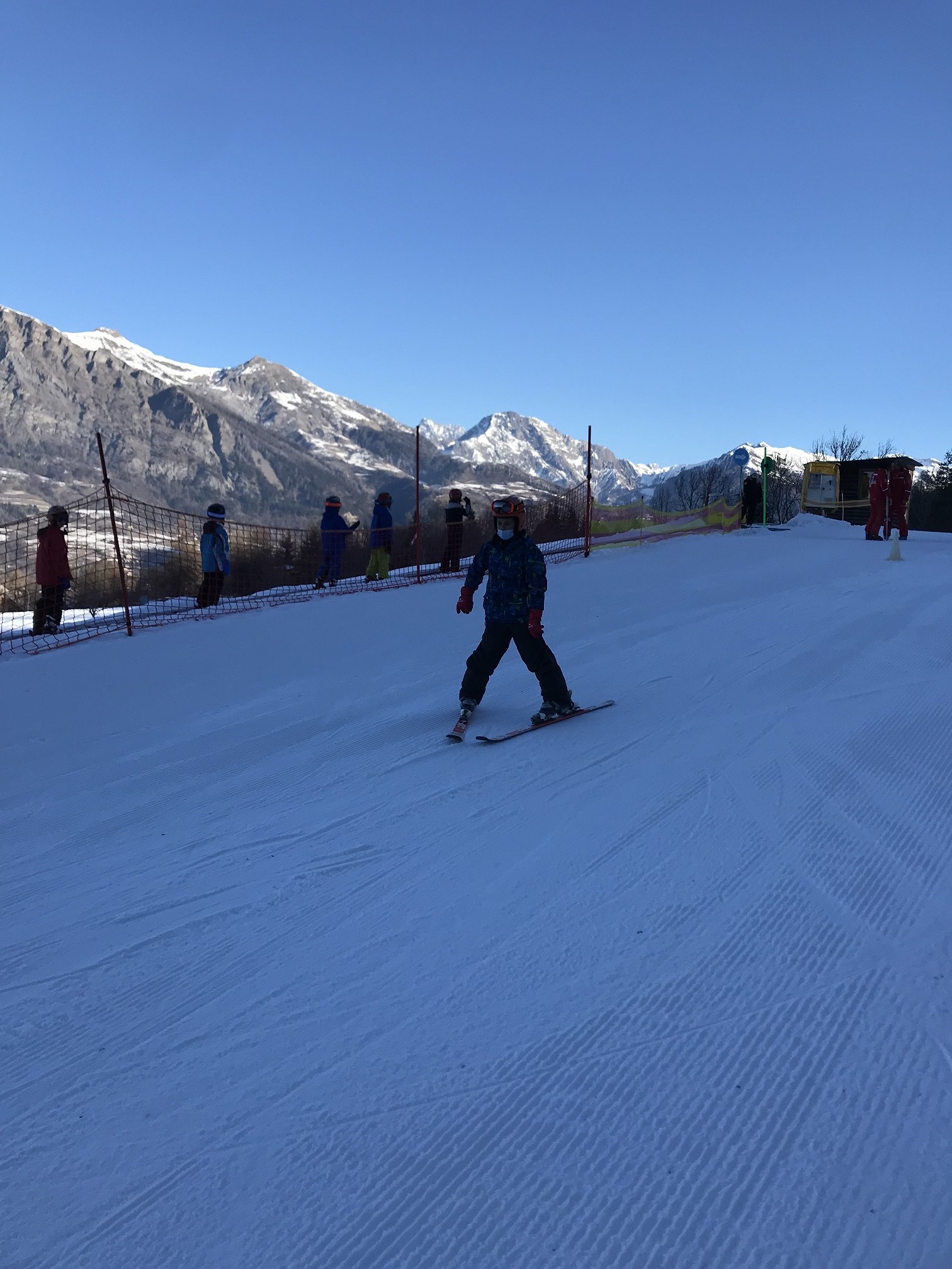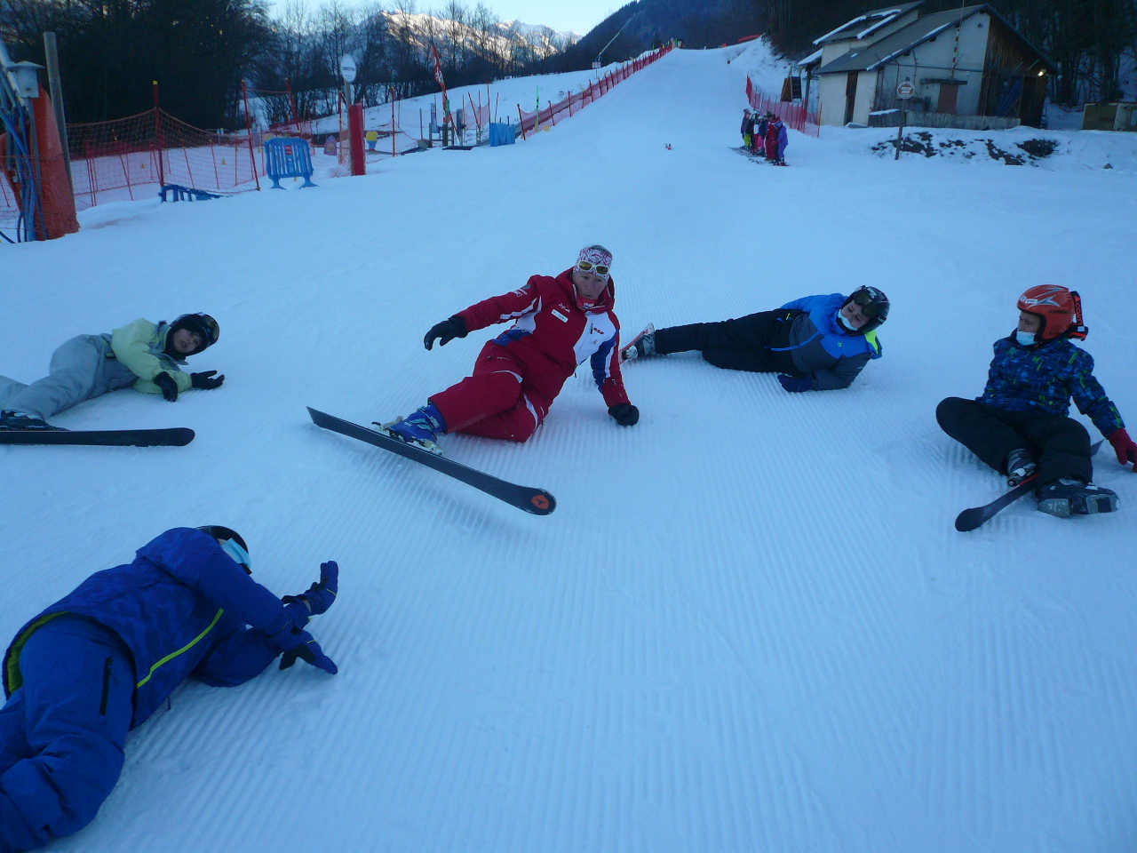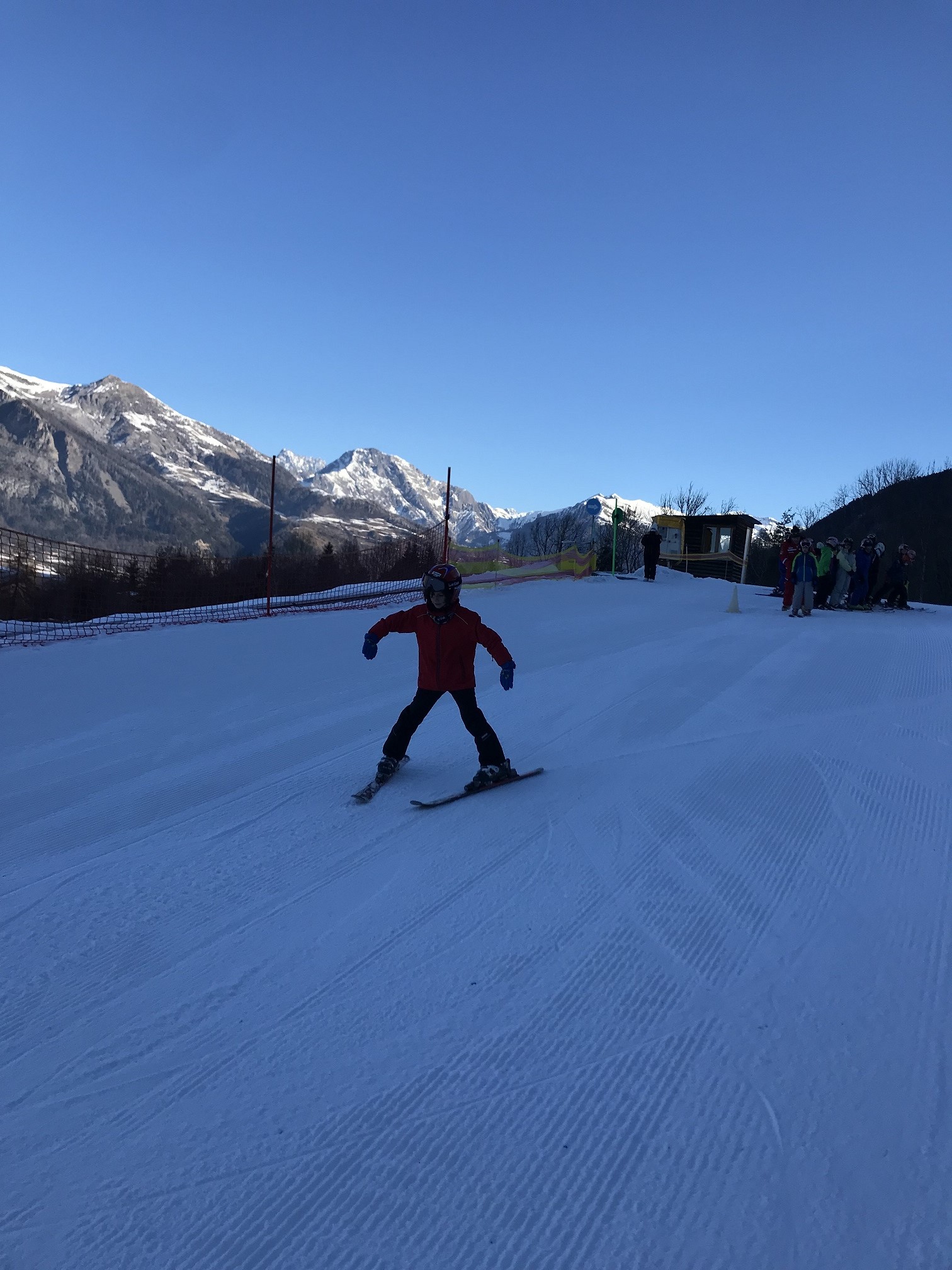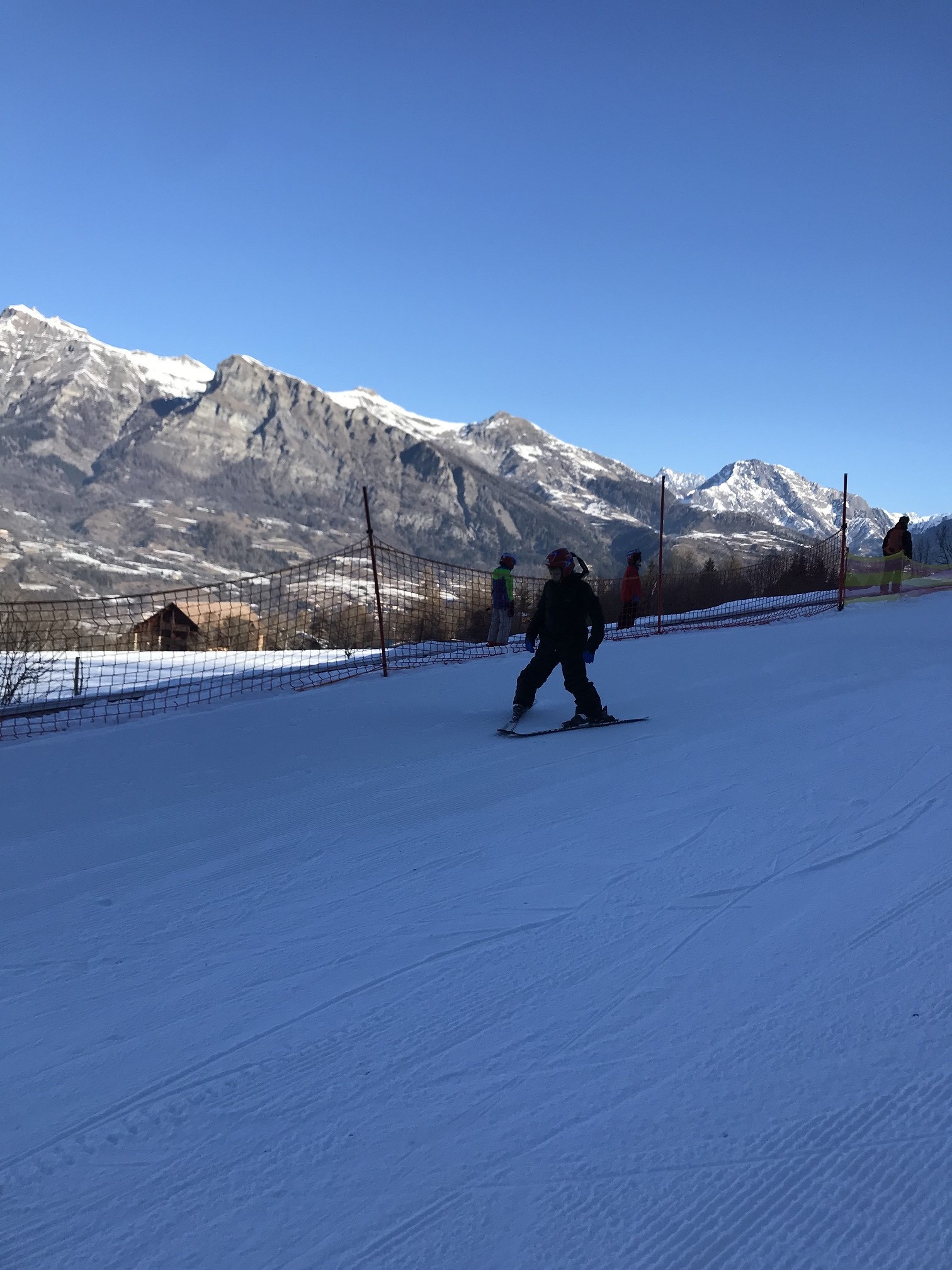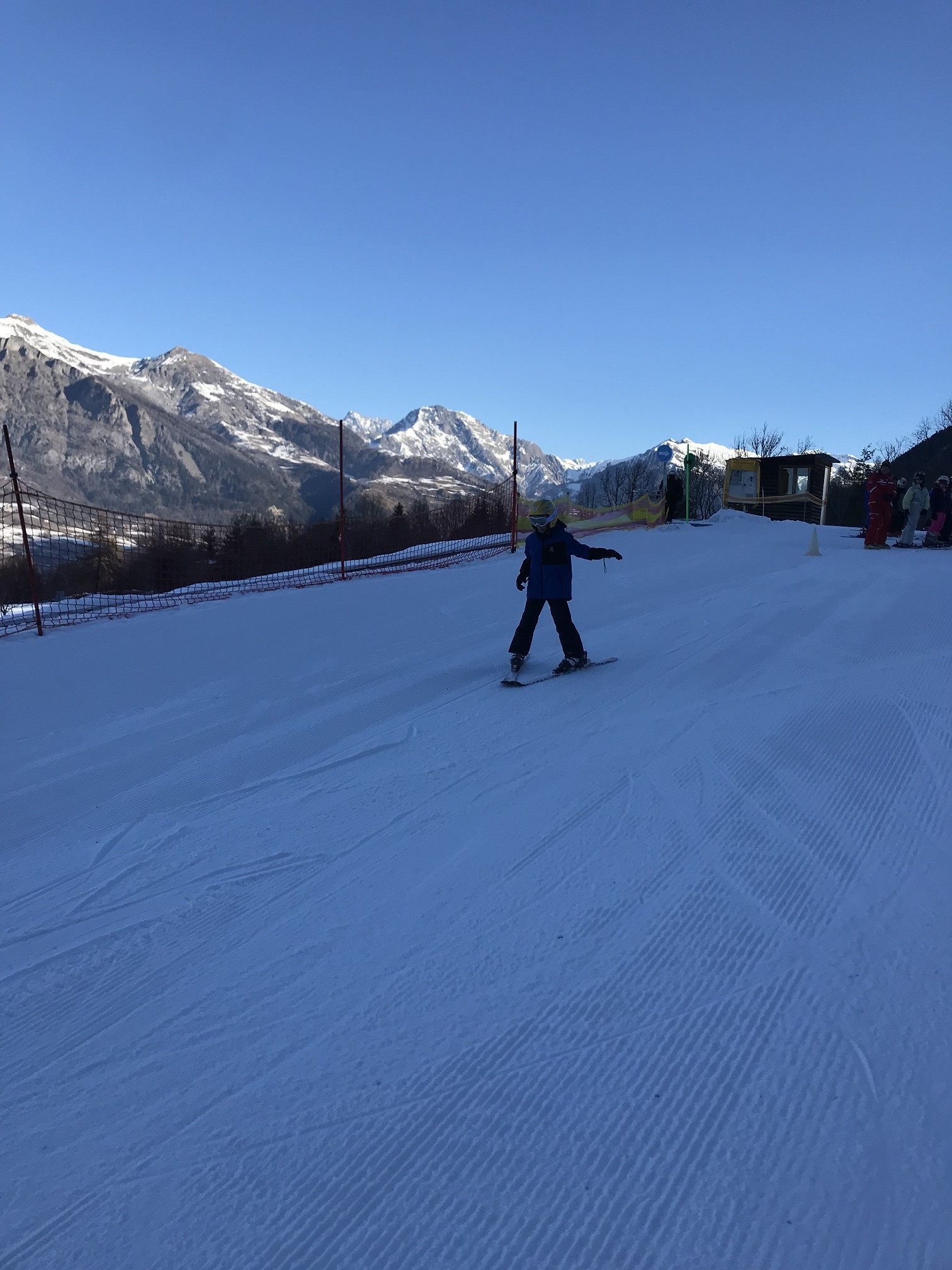 La première séance de ski s'est très bien passée, ils sont tous ravis ! Les débutants arrivent tous à freiner en chasse-neige. ils sont restés sur le bas des pistes pour apprendre les bases. Sacha et Thibault, eux, sont partis sur les "vraies" pistes en télésiège.