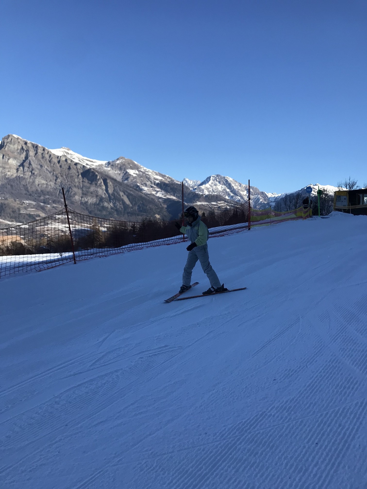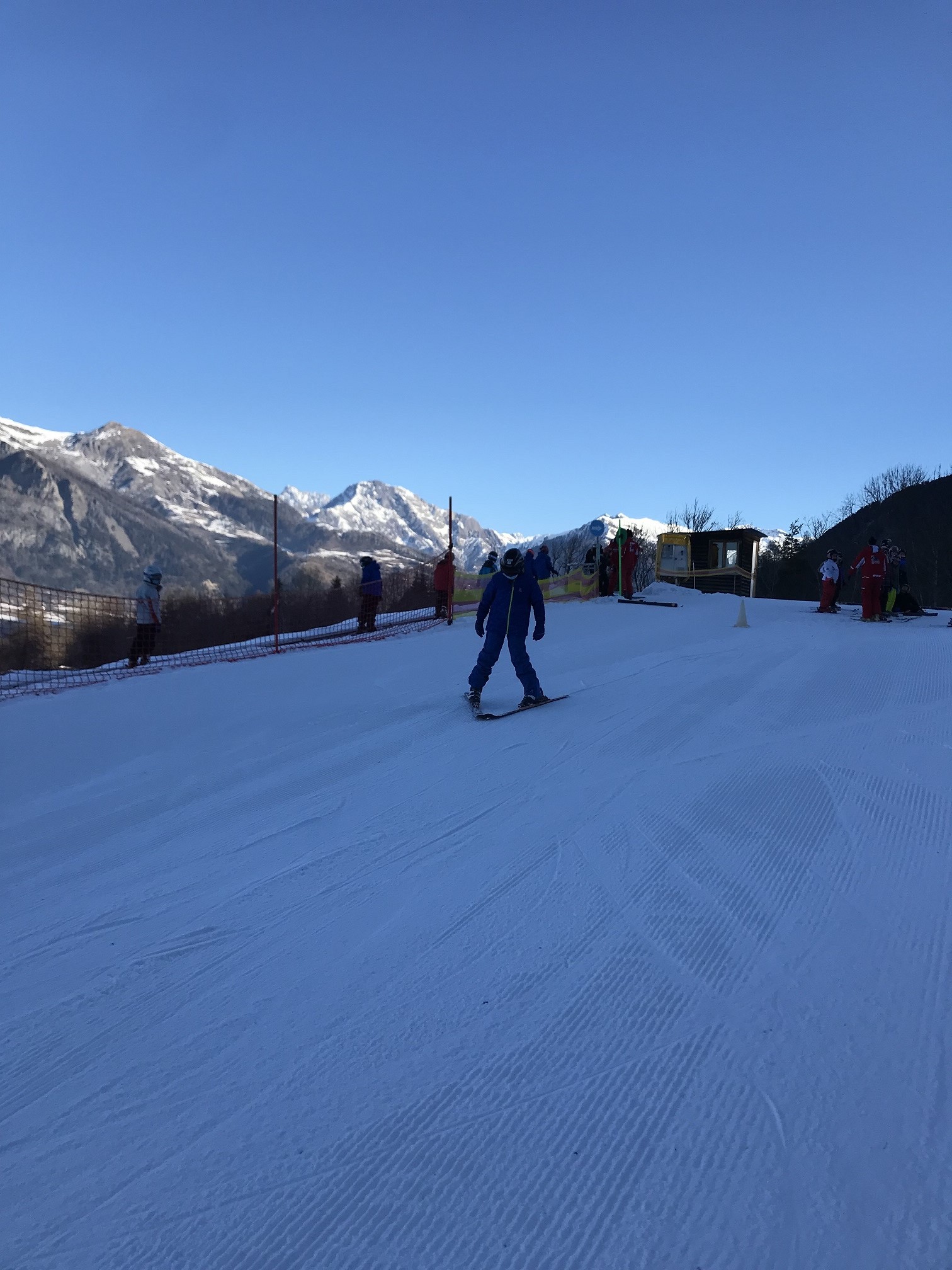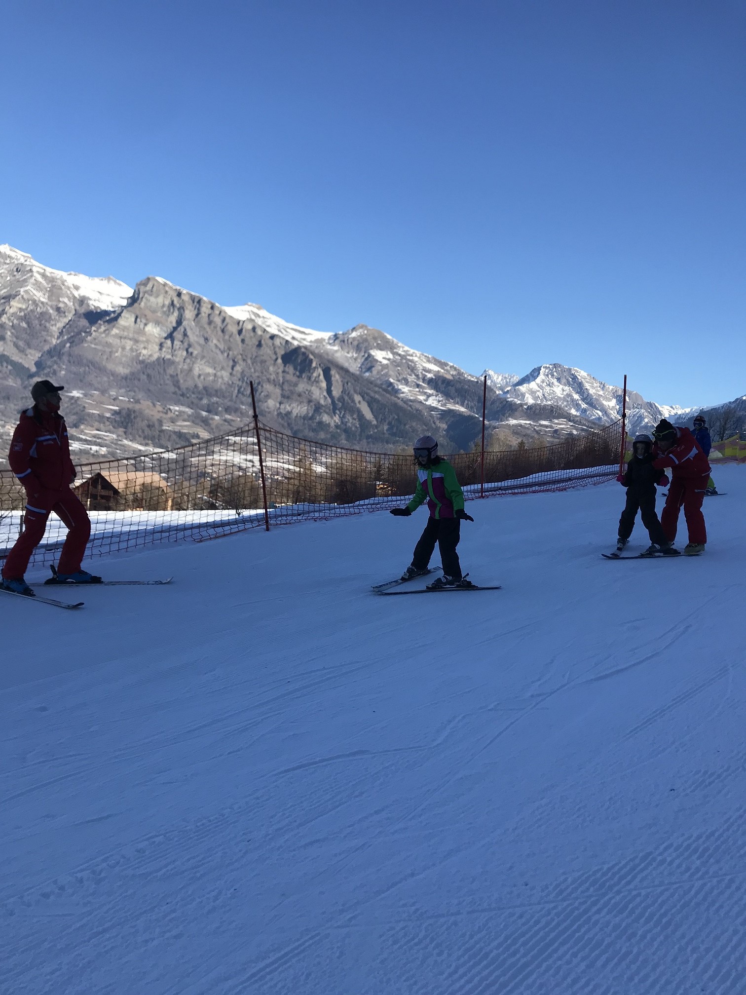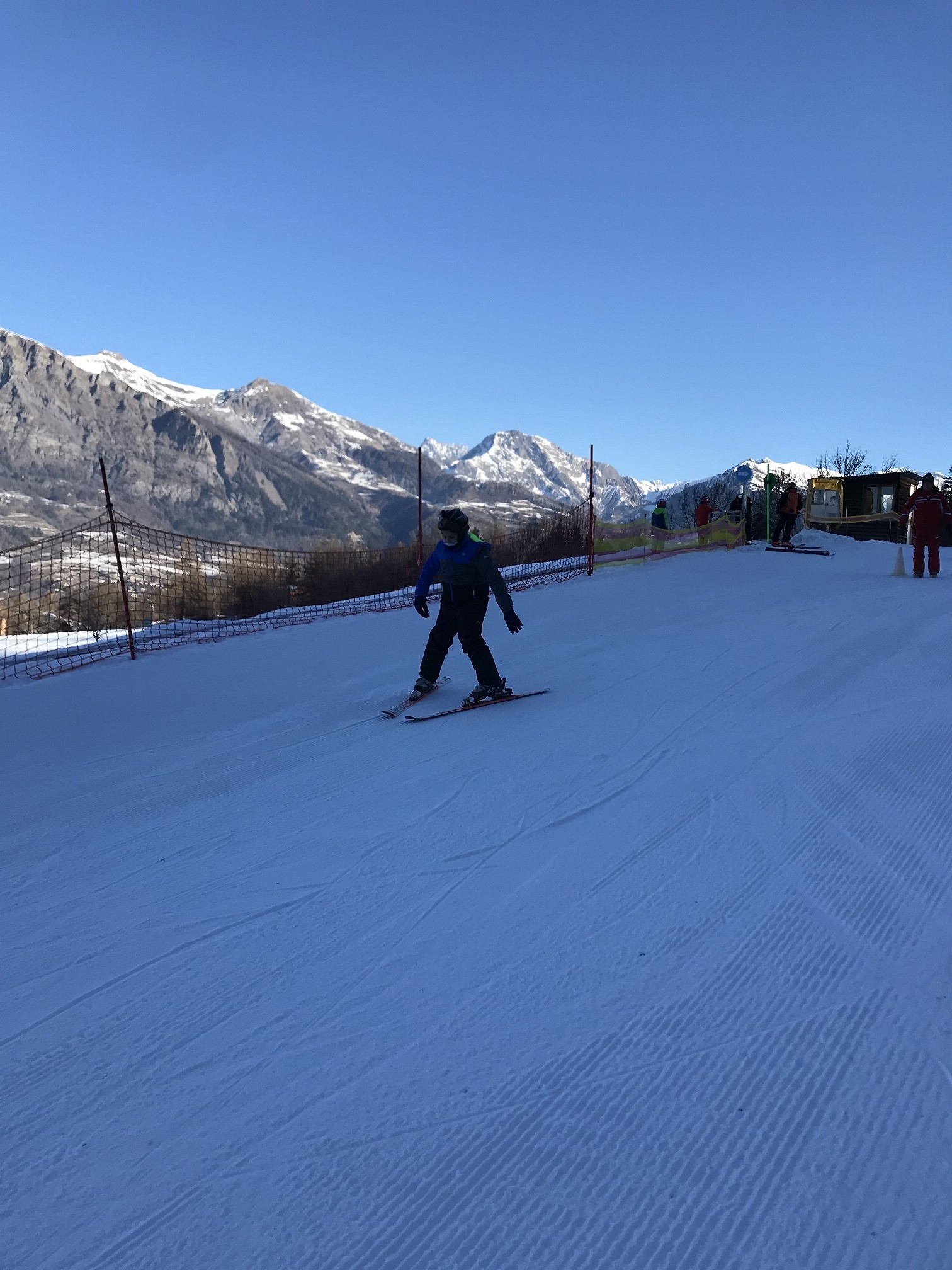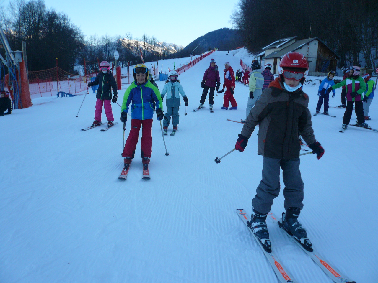 La première séance de ski s'est très bien passée, ils sont tous ravis ! Les débutants arrivent tous à freiner en chasse-neige. ils sont restés sur le bas des pistes pour apprendre les bases. Sacha et Thibault, eux, sont partis sur les "vraies" pistes en télésiège.