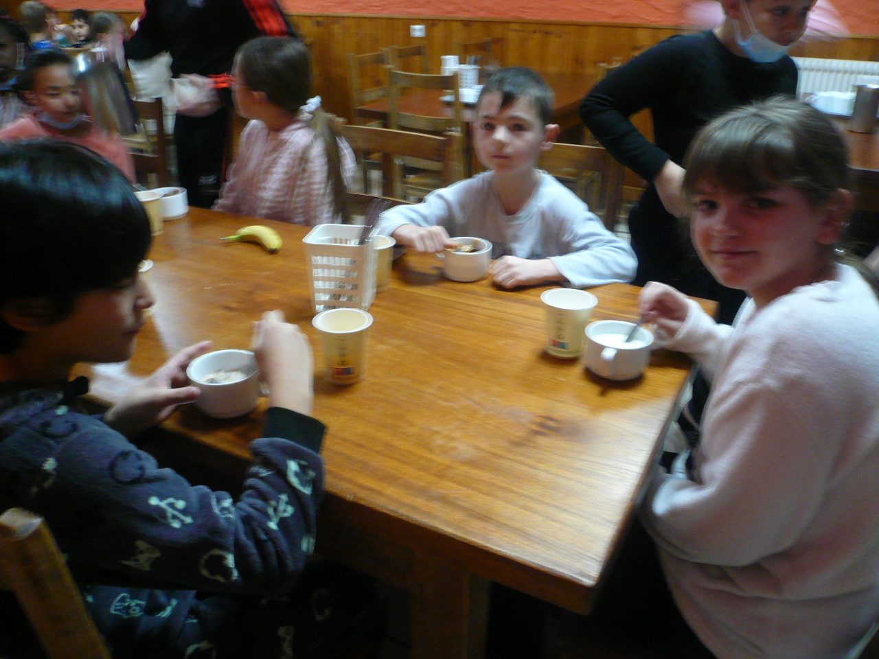 Cette première nuit s'est bien passée pour tout le monde. Le petit déj est avalé, on se prépare pour le ski. A tout à l'heure !