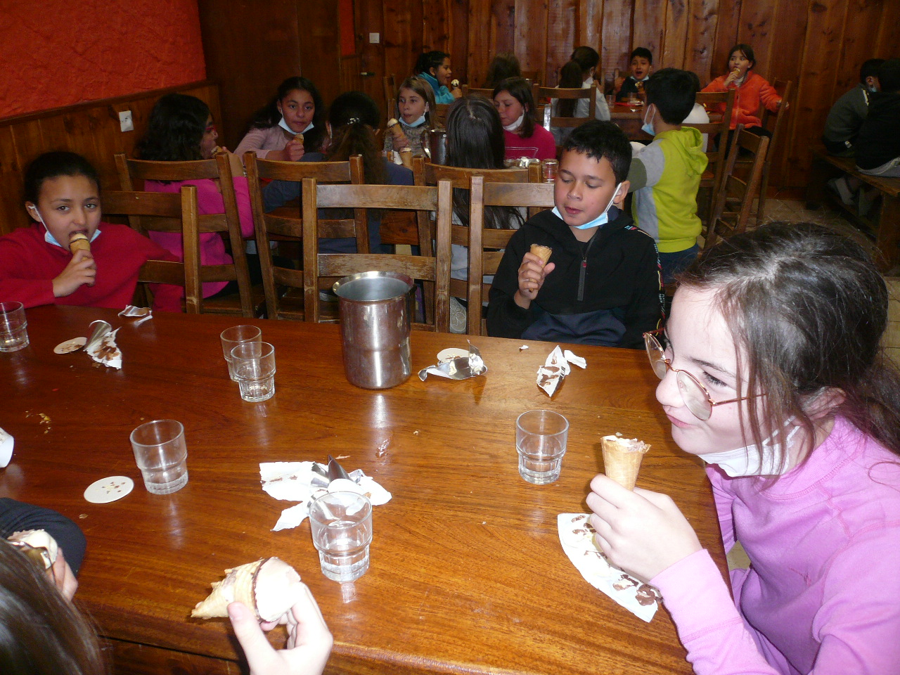 Aujourd'hui encore un grand soleil et +3 degrés ce matin à 8h00. Les enfants ont tous fait leur dernière séance de ski et ont eu un pincement au coeur en rendant leur matériel...