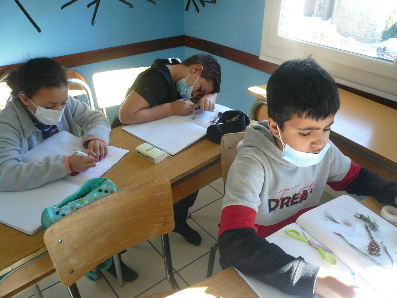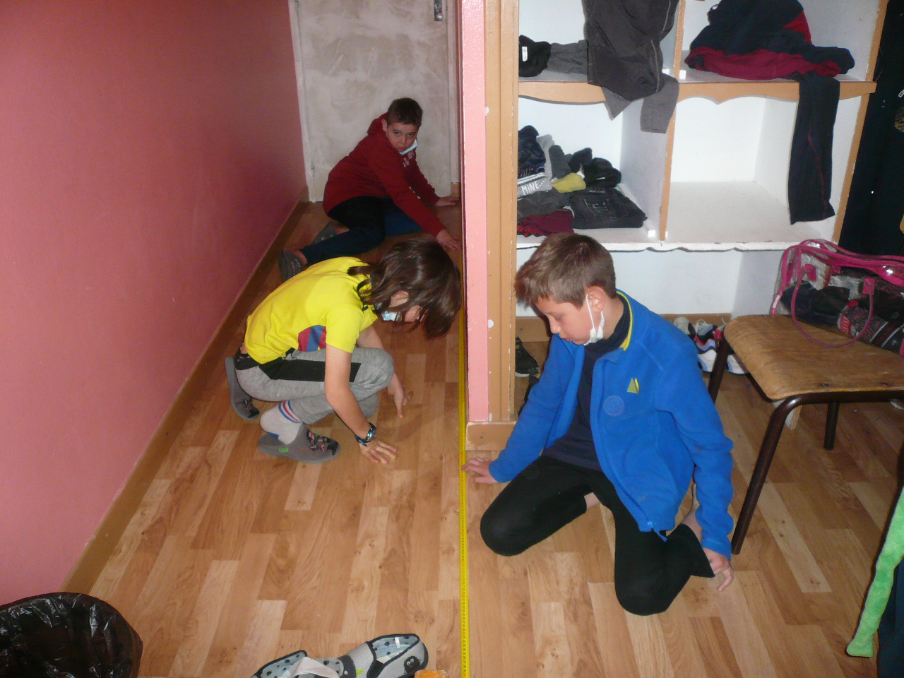 Après-midi classe: on a termine notre travail sur les conifères puis on a tracé le plan de notre chambre avec la salle de bain, les lits portes et fenêtres. Puis nous sommes allés mesurer tout ça avec un mètre. ruban.