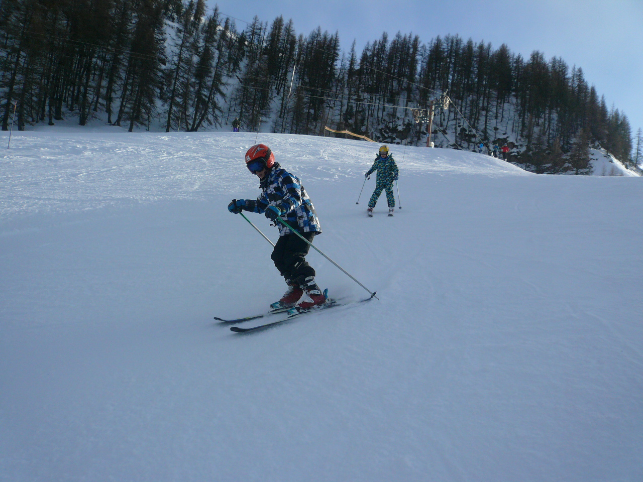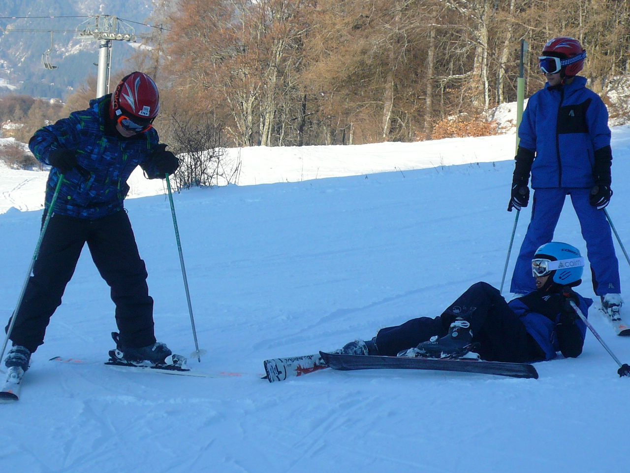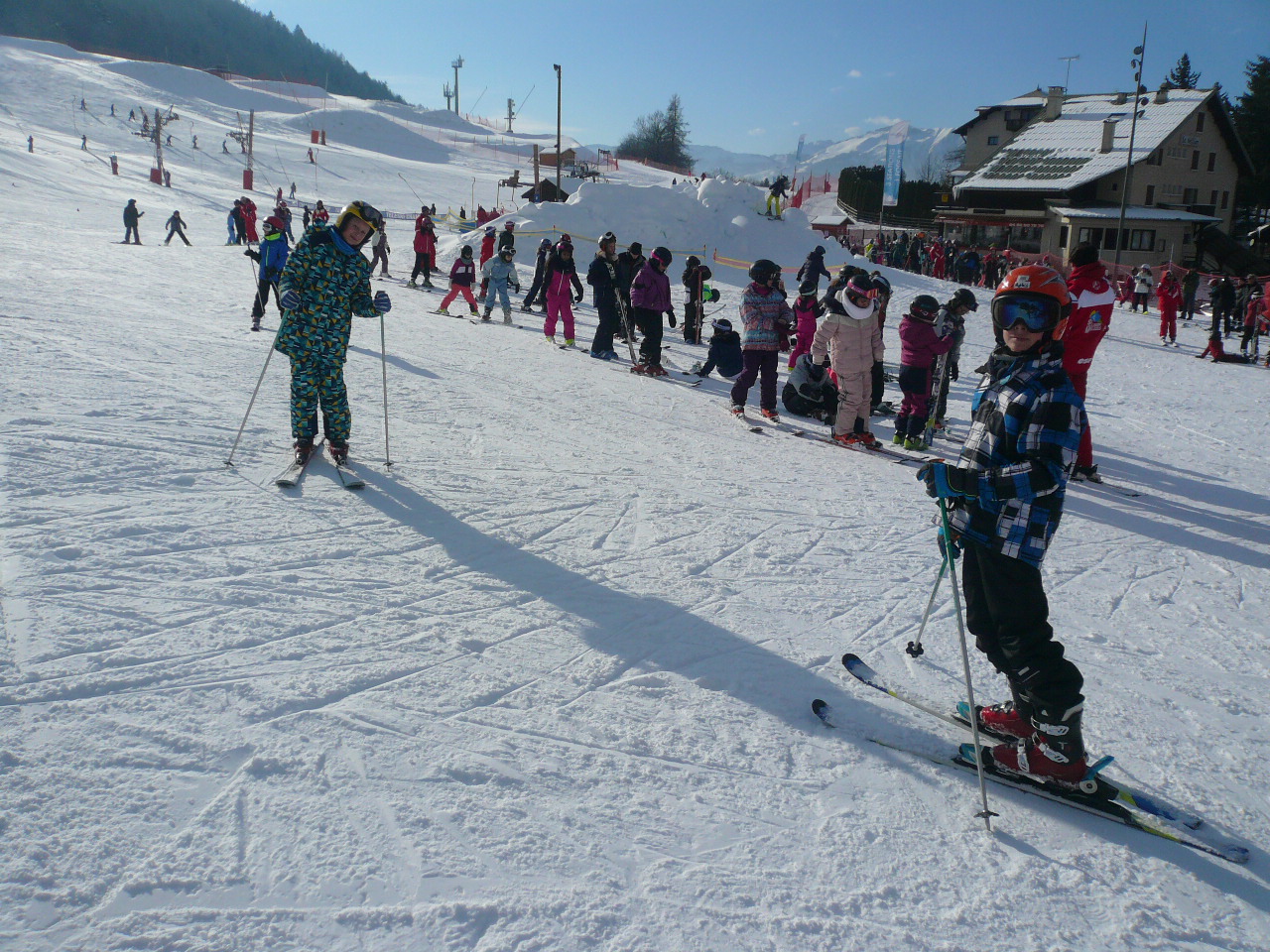 Non Renald n'est pas tout seul et n'a pas un cours particulier. Les 100 enfants des 5 classes de St Marcellin ont été mis en groupes de niveau par les moniteurs de ski le premier jour. Il y a 10 groupes d'une dizaine d'enfants chacun. Du coup les élèves de ma classe se retrouvent éparpillés sur 8 groupes, c'est hyper pas pratique pour les photos !!!