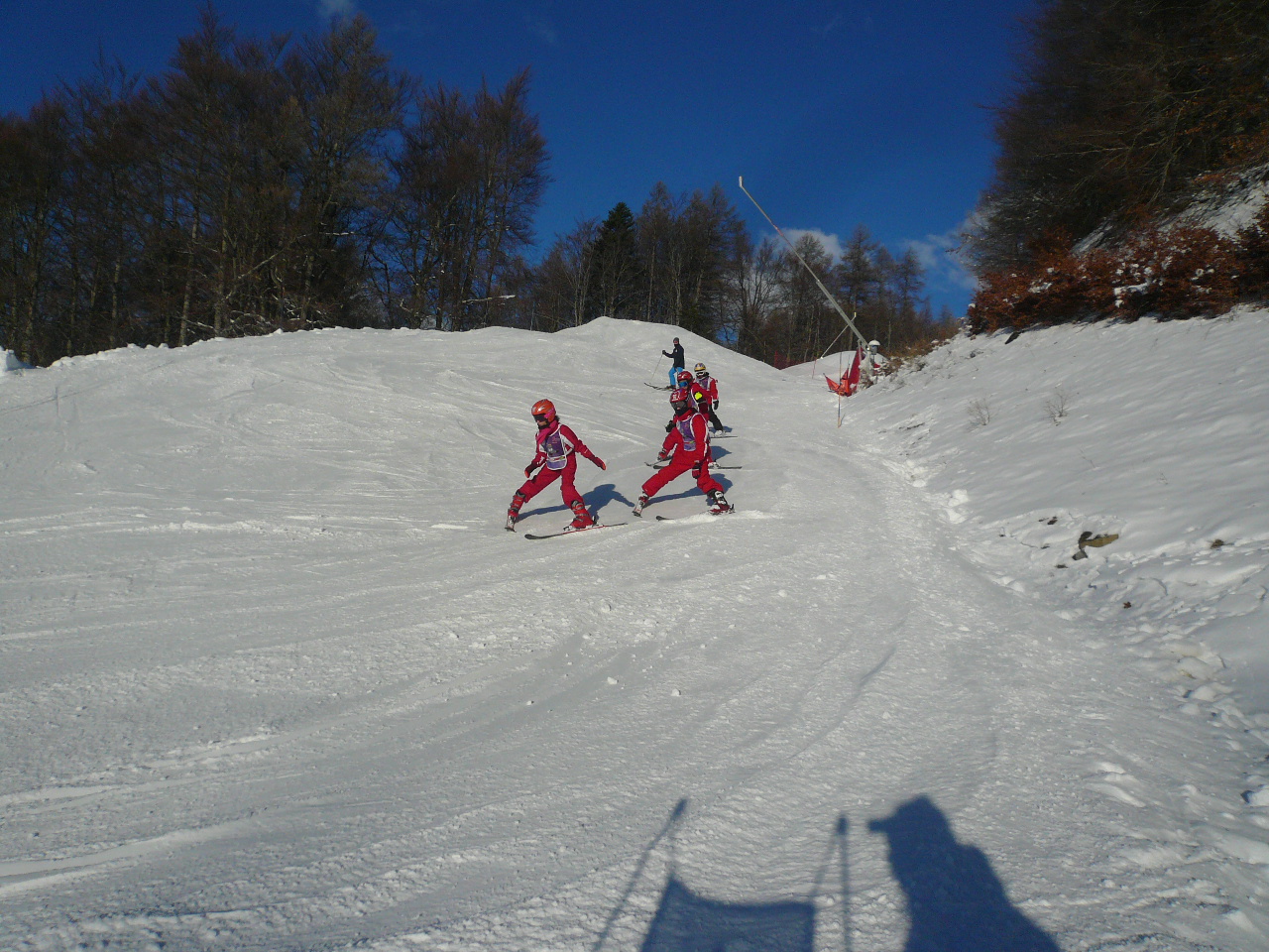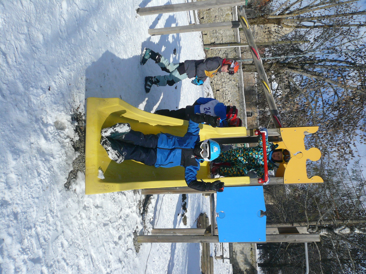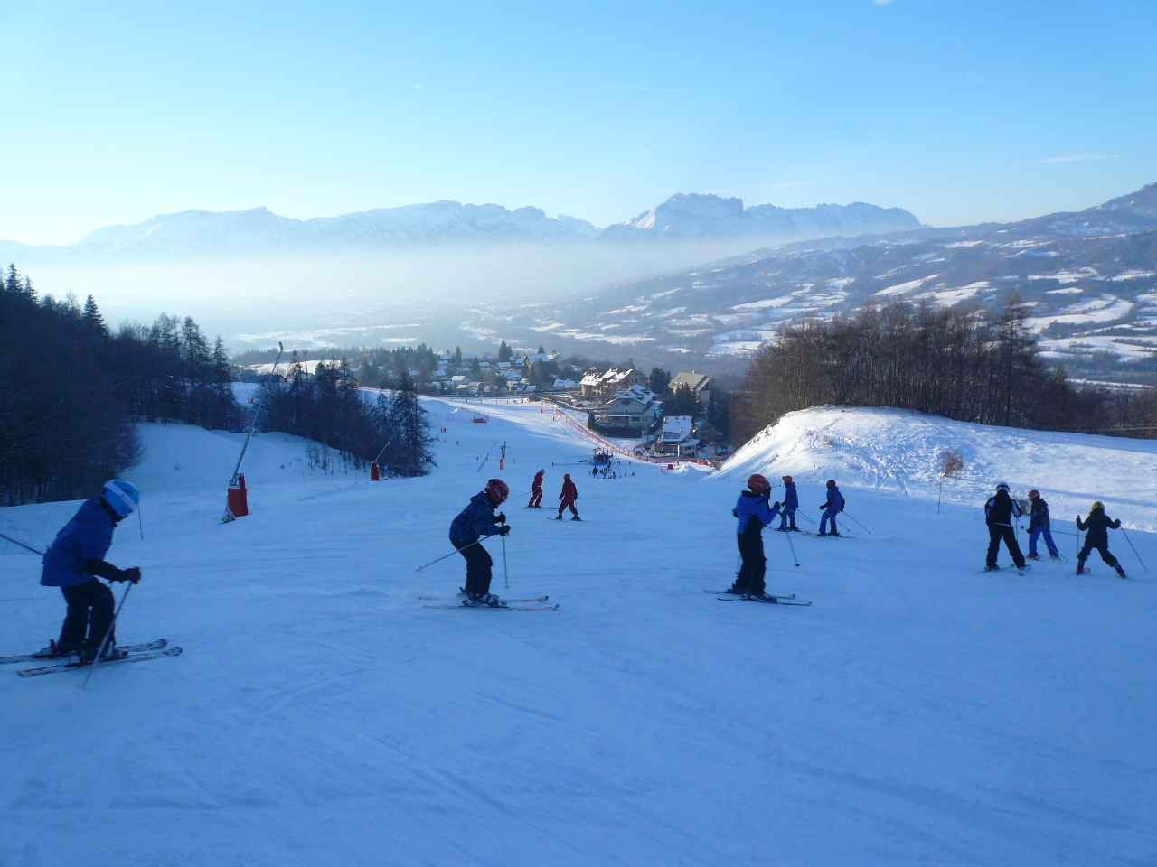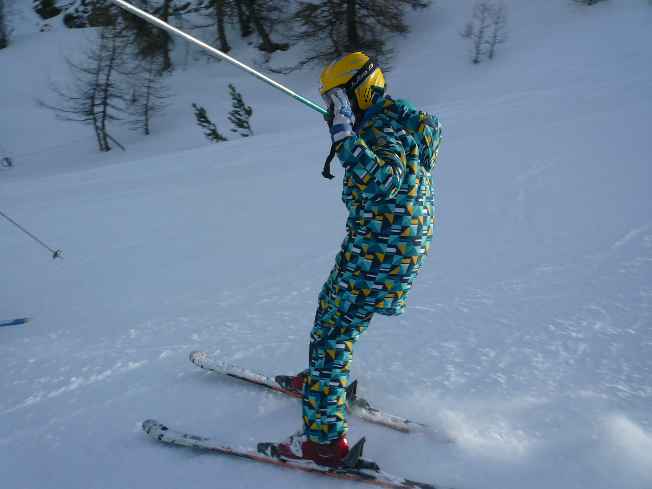 Non Renald n'est pas tout seul et n'a pas un cours particulier. Les 100 enfants des 5 classes de St Marcellin ont été mis en groupes de niveau par les moniteurs de ski le premier jour. Il y a 10 groupes d'une dizaine d'enfants chacun. Du coup les élèves de ma classe se retrouvent éparpillés sur 8 groupes, c'est hyper pas pratique pour les photos !!!
