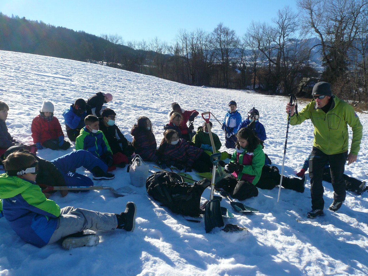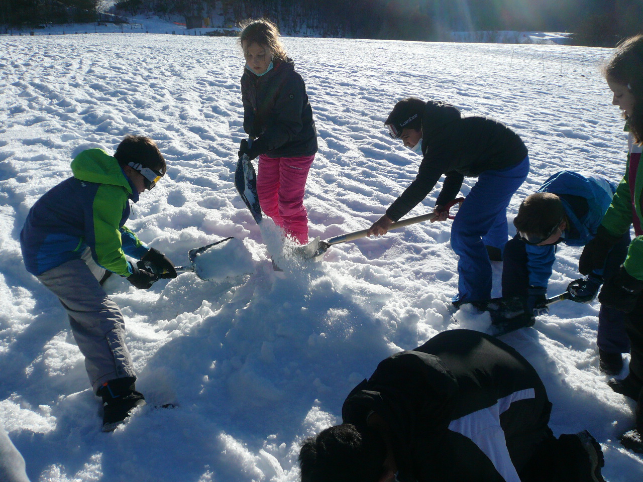 Cette après-midi nous avons travaillé avec un spécialiste sur les dangers de la montagne et en particulier les avalanches.