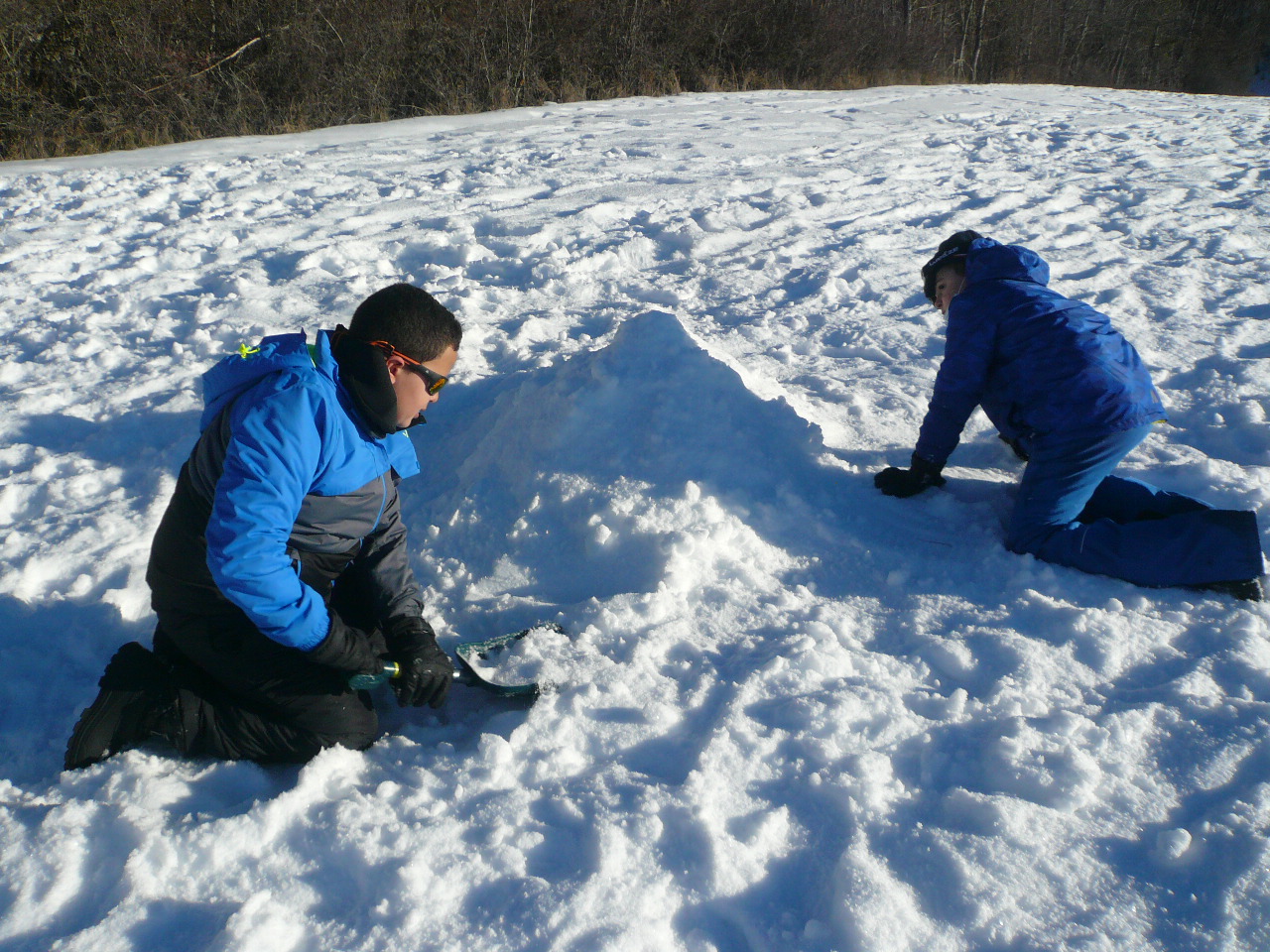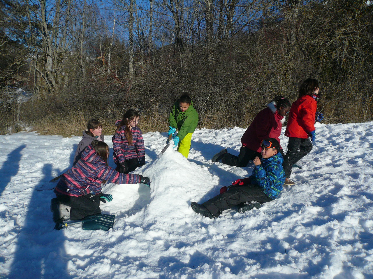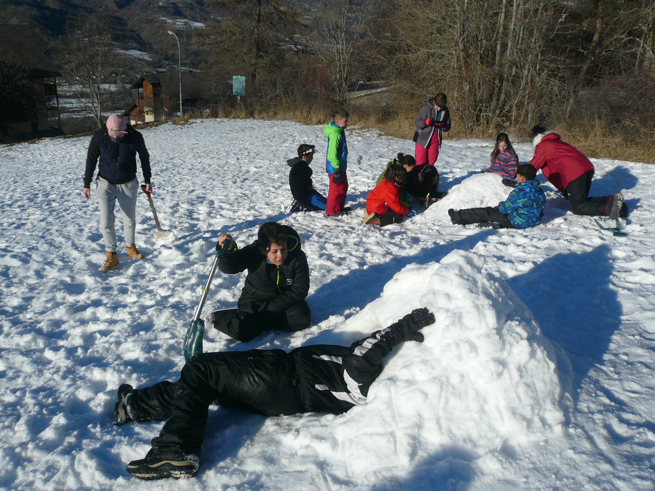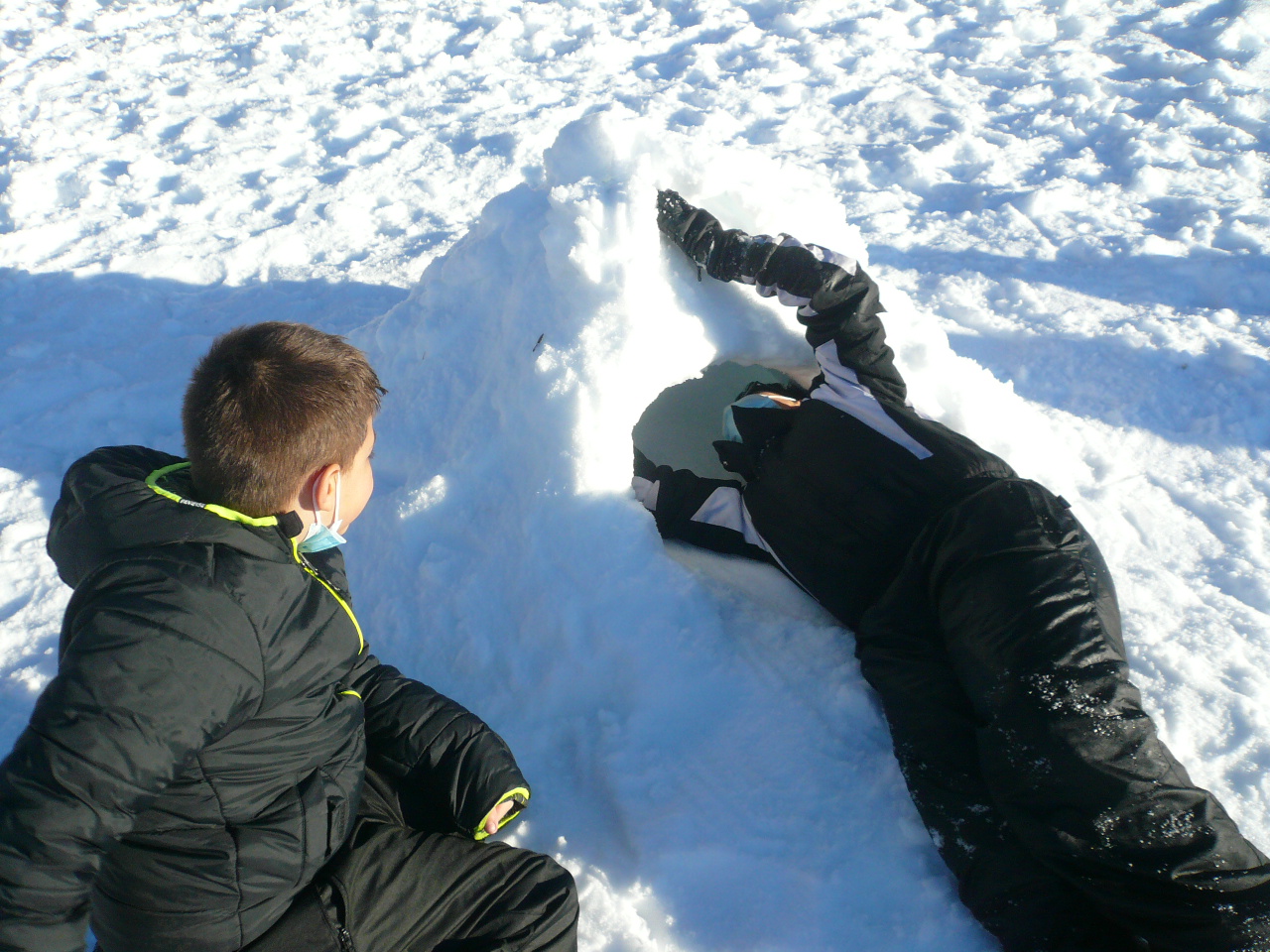 Pour la récré nous avons construit des igloos mais ce n'était pas facile car la neige n'a pas de cohésion, elle est très sèche, c'est de la poudreuse.