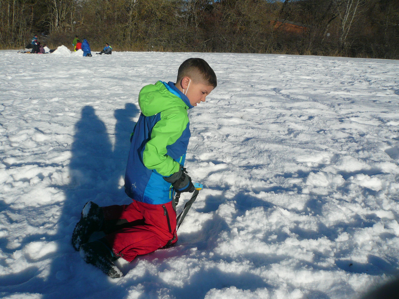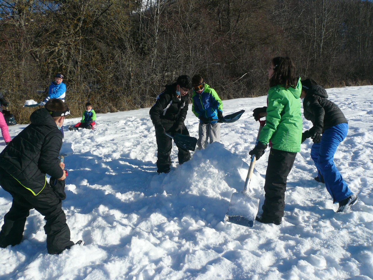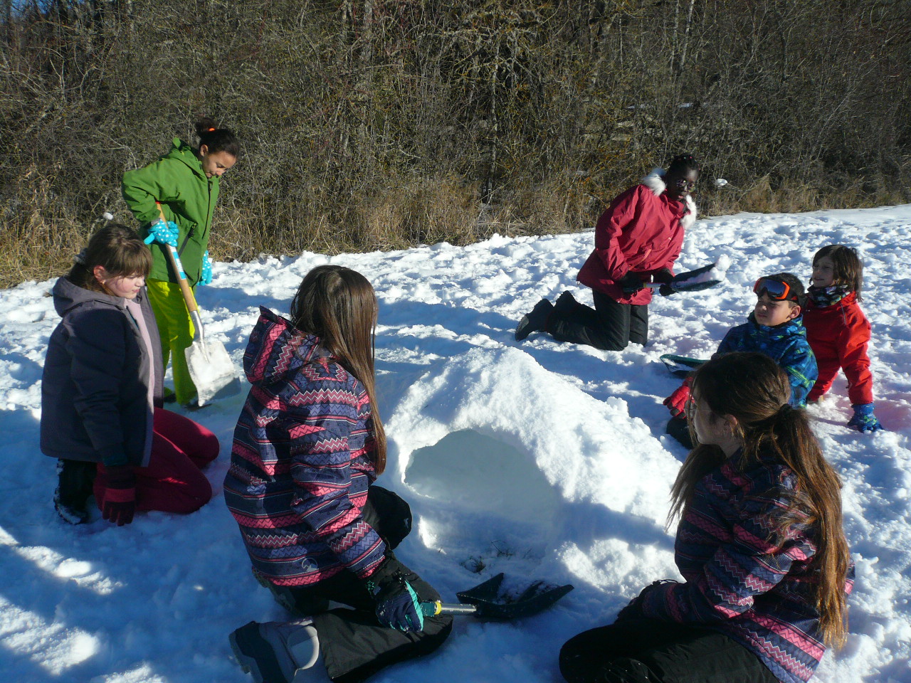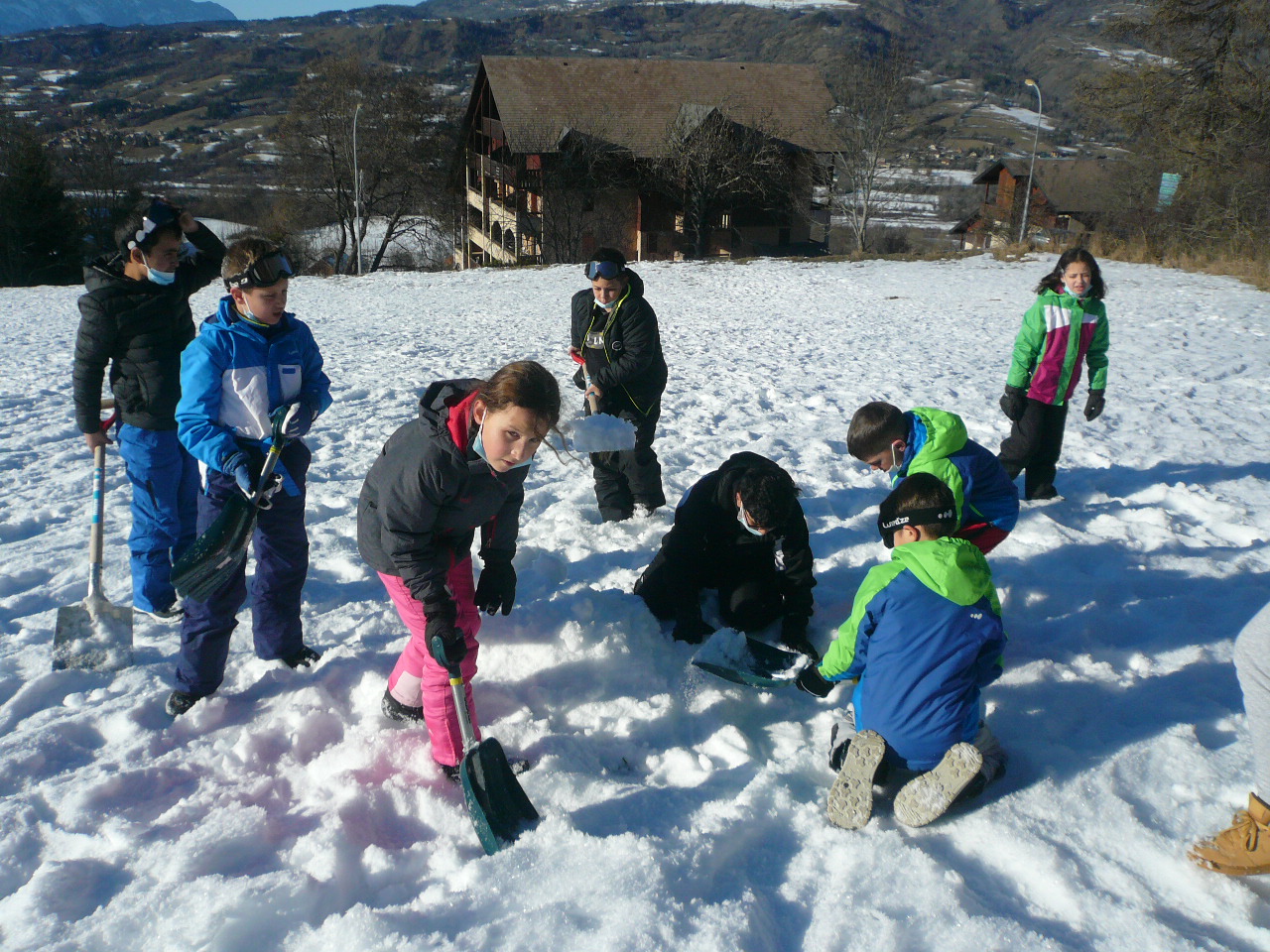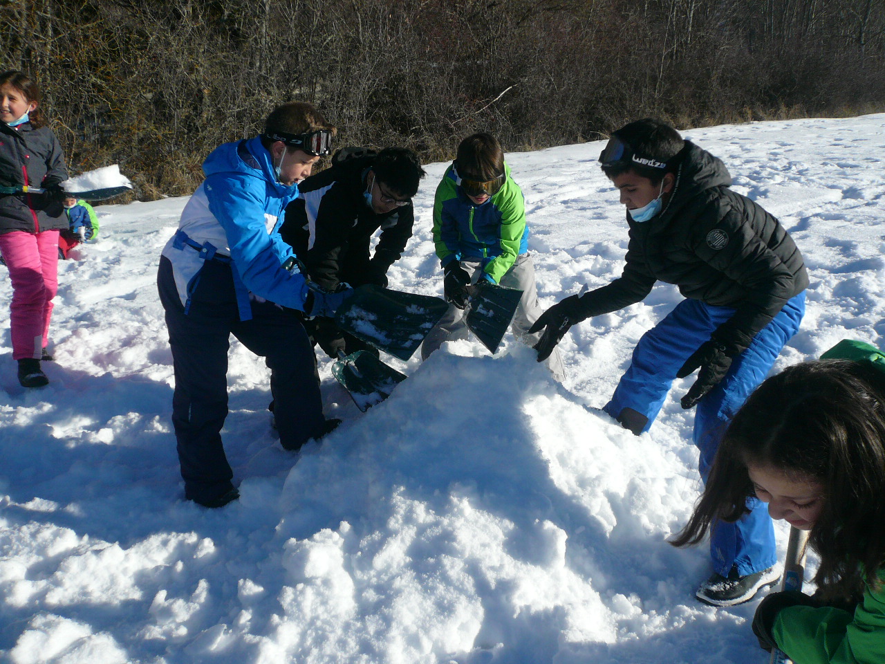 Pour la récré nous avons construit des igloos mais ce n'était pas facile car la neige n'a pas de cohésion, elle est très sèche, c'est de la poudreuse.
