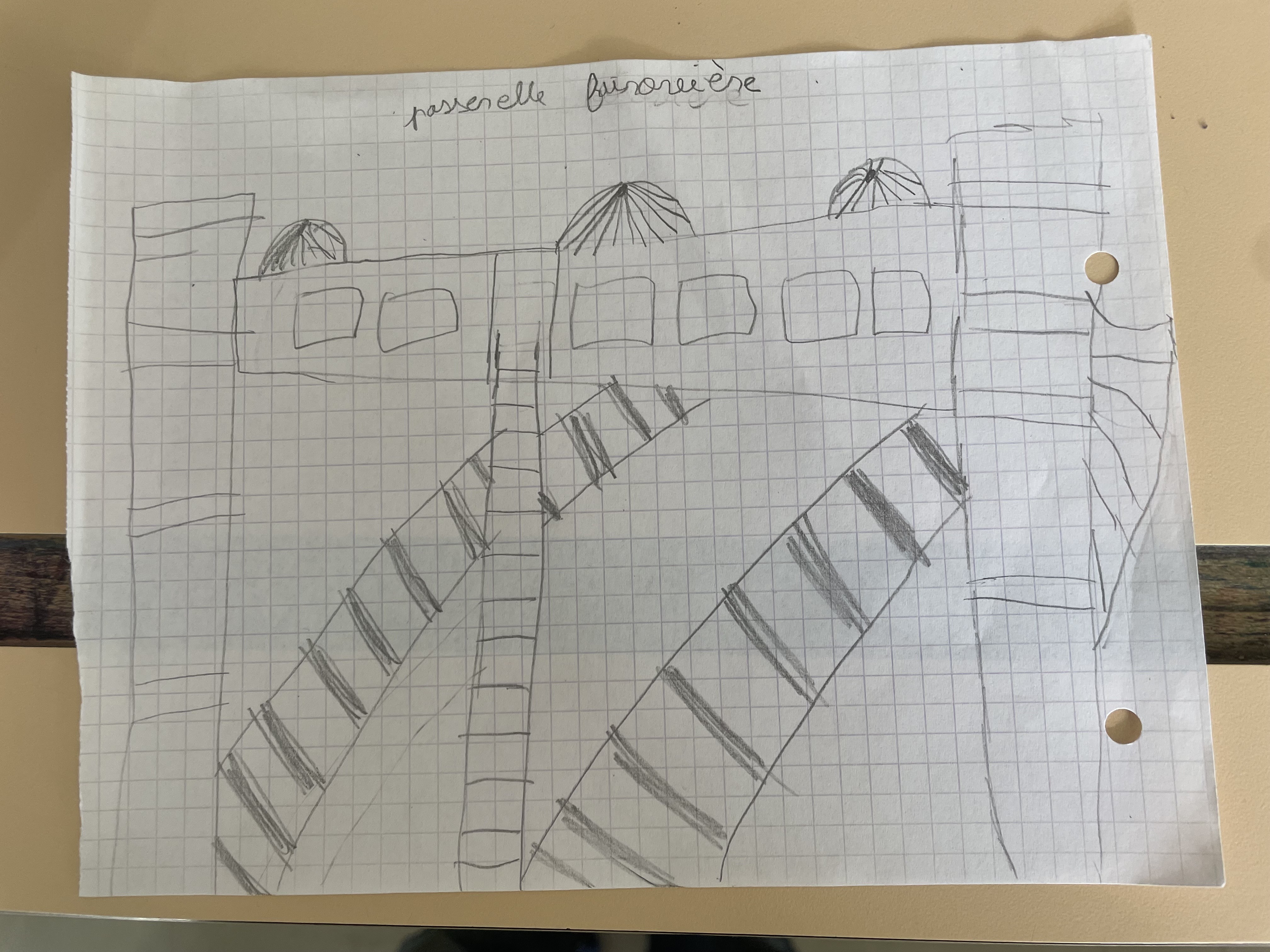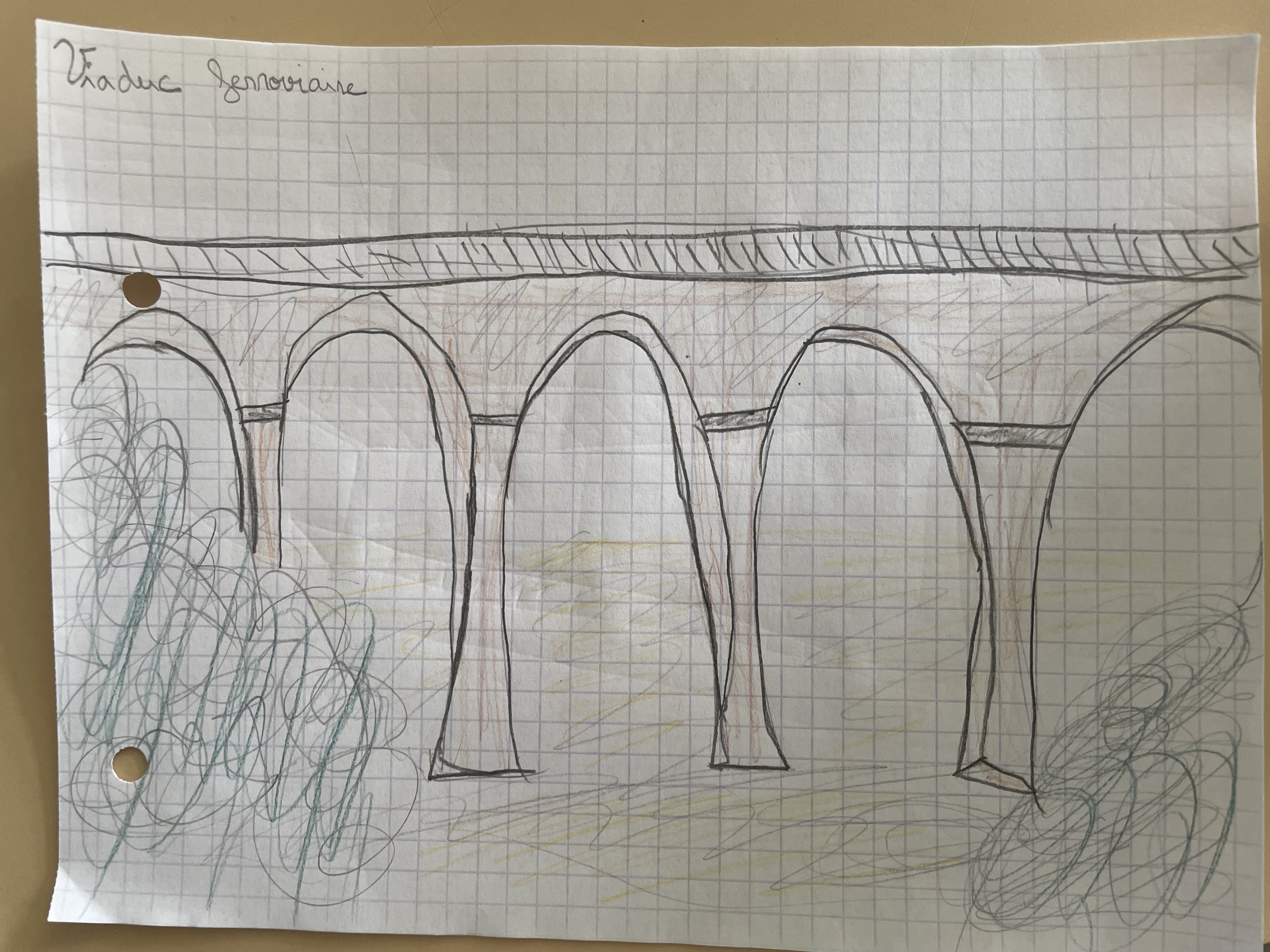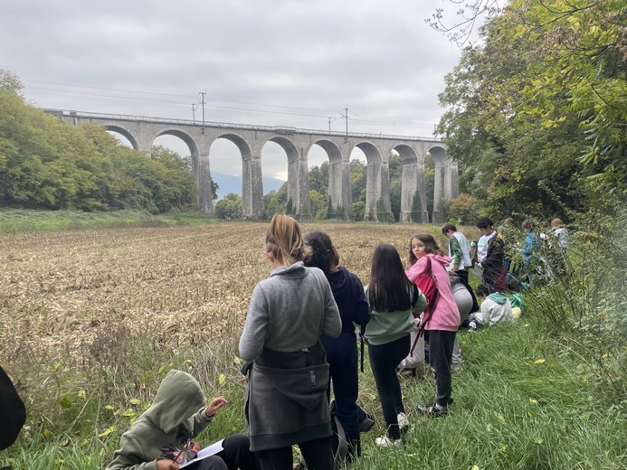 Nous avons profité de cette sortie pour observer et dessiner tous les ponts que nous avons rencontrés: pont routier, passerelle, viaduc et même aqueduc ! Ca a illustré notre travail d'étude d'un objet technique: le pont.