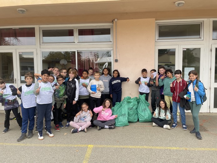 Le projet "Nettoyons la nature" nous a été proposé par l'enseigne E. Leclerc qui a fourni à chaque élève une paire de gants, un chasuble et un grand sac poubelle. Toutes les classes, des PS de maternelle aux CM2, se sont mobilisées, chacune dans un secteur différent.