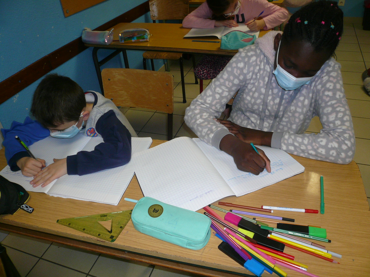 - Raphaël qui fait des beaux coloriages pour la maîtresse (?) et Kassim qui entretient sa forme !