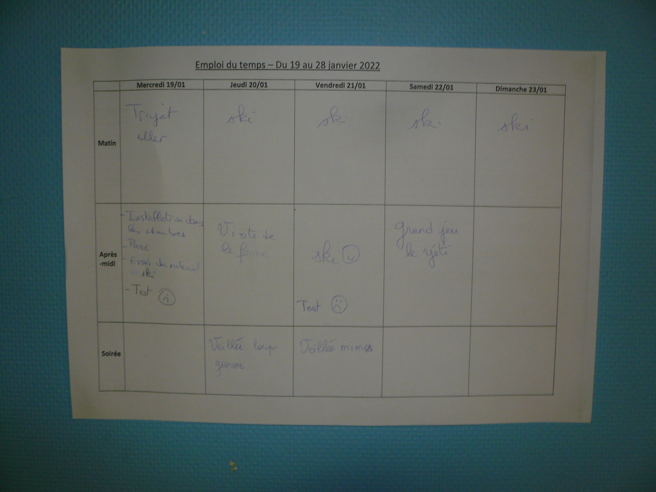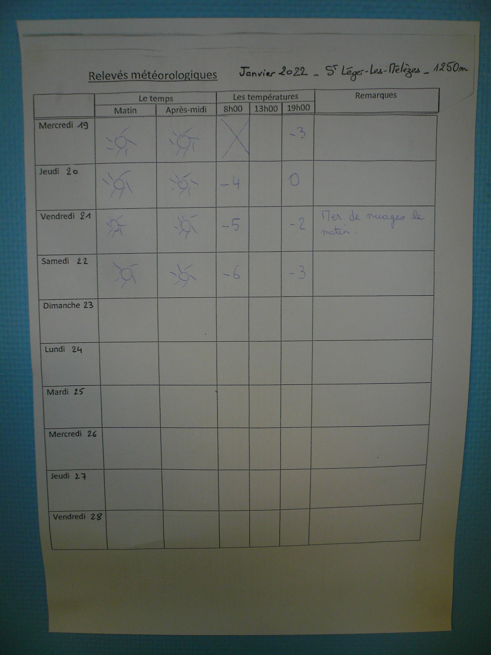 - Les rituels du soir dans la classe de 18 à 19h, moment silencieux très apprécié de la maîtresse ;-) mais aussi des élèves ! Relevé des températures et météo, planning, rédaction dans le journal de bord, lecture des sms et mails des familles (promis on finira par trouver le temps de vous répondre !)...