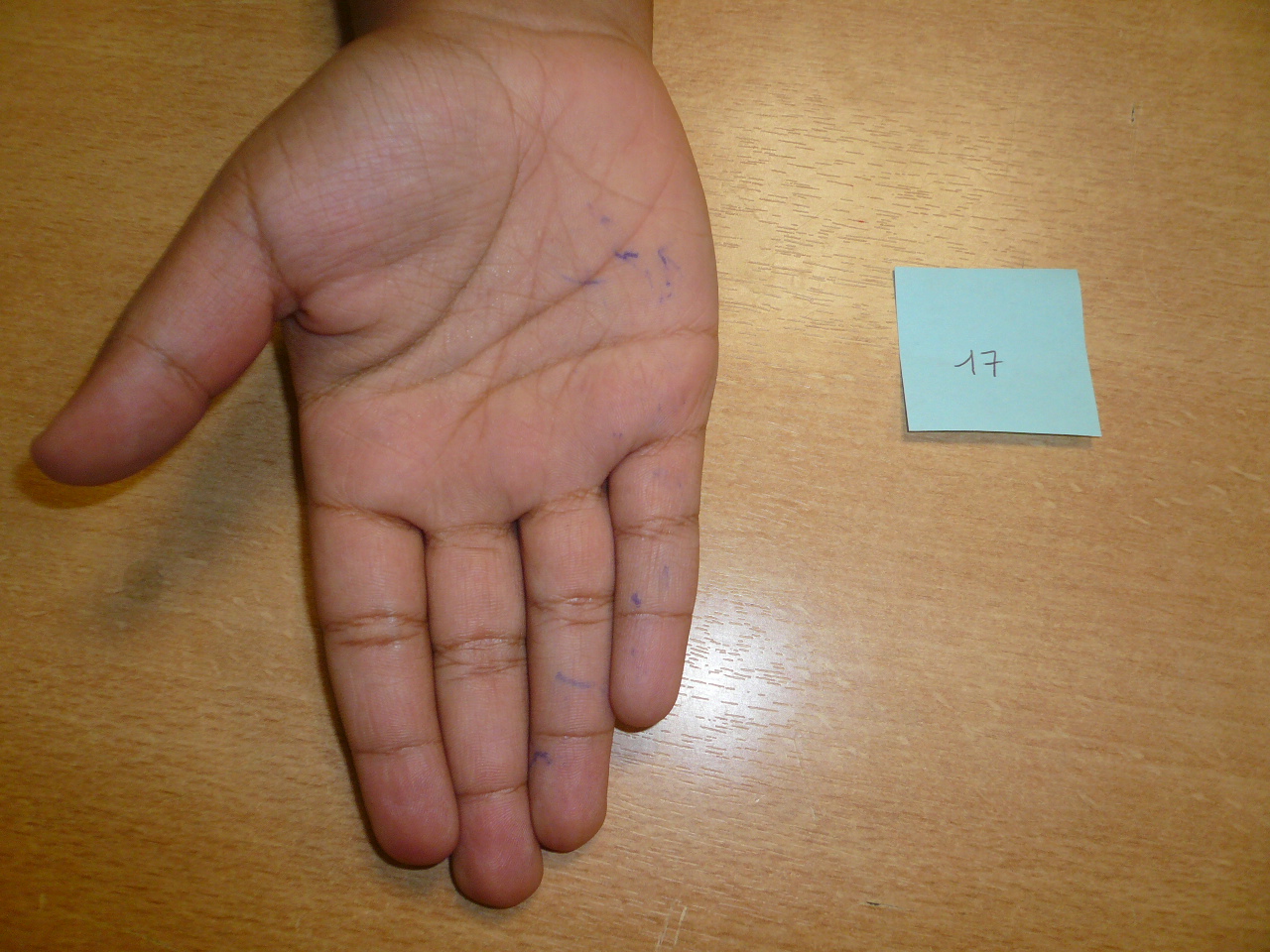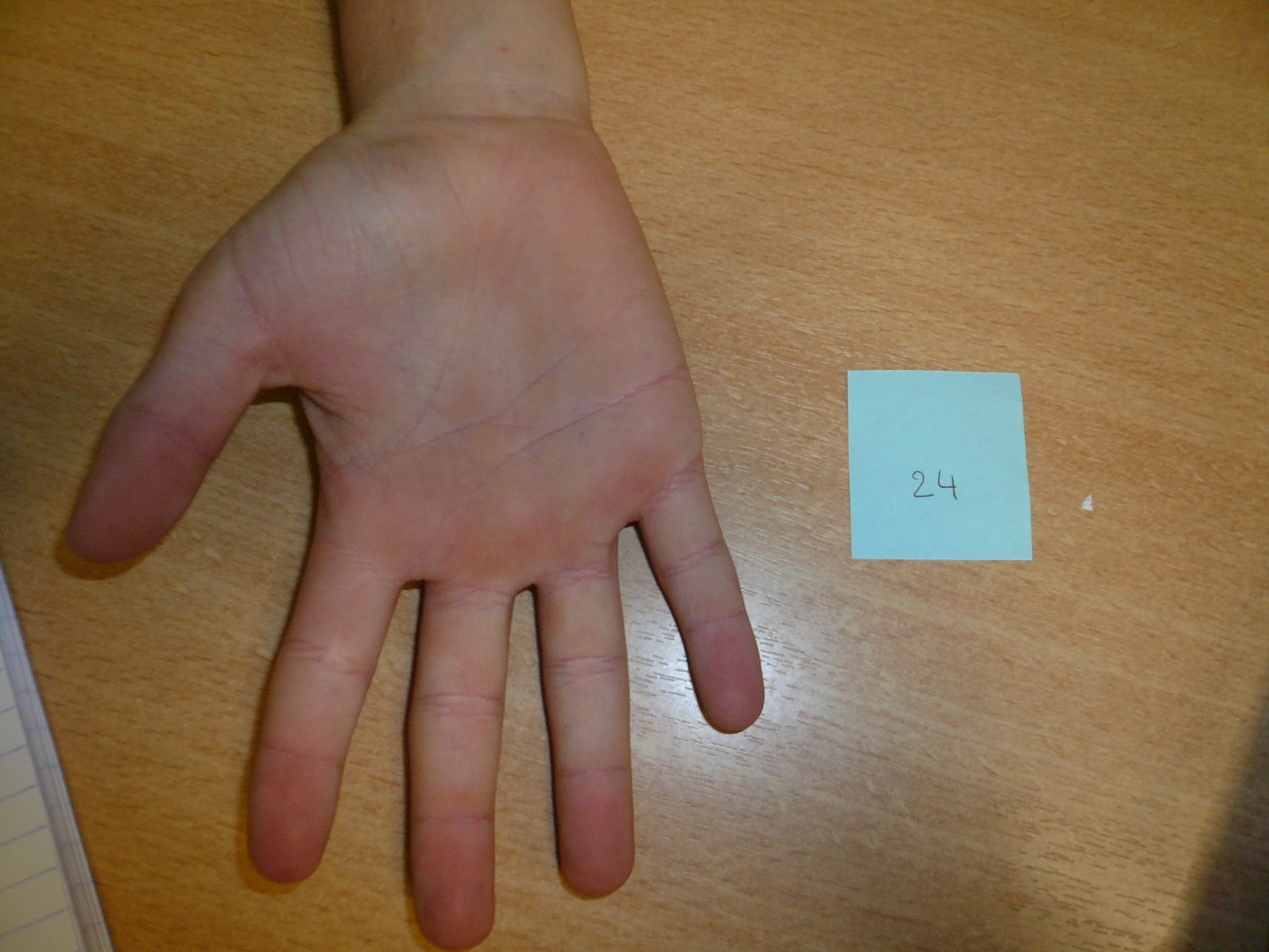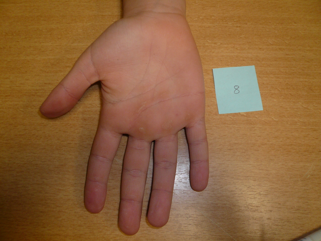 Pour finir cette belle journée, je vous propose un petit jeu à vous parents: Saurez-vous reconnaître la main de votre bambin ? J'attends vos réponses par mail ou sms. Ceux qui trouveront auront la chance de voir en avant-première leur petit chéri dans les bras de Morphée... ;-)