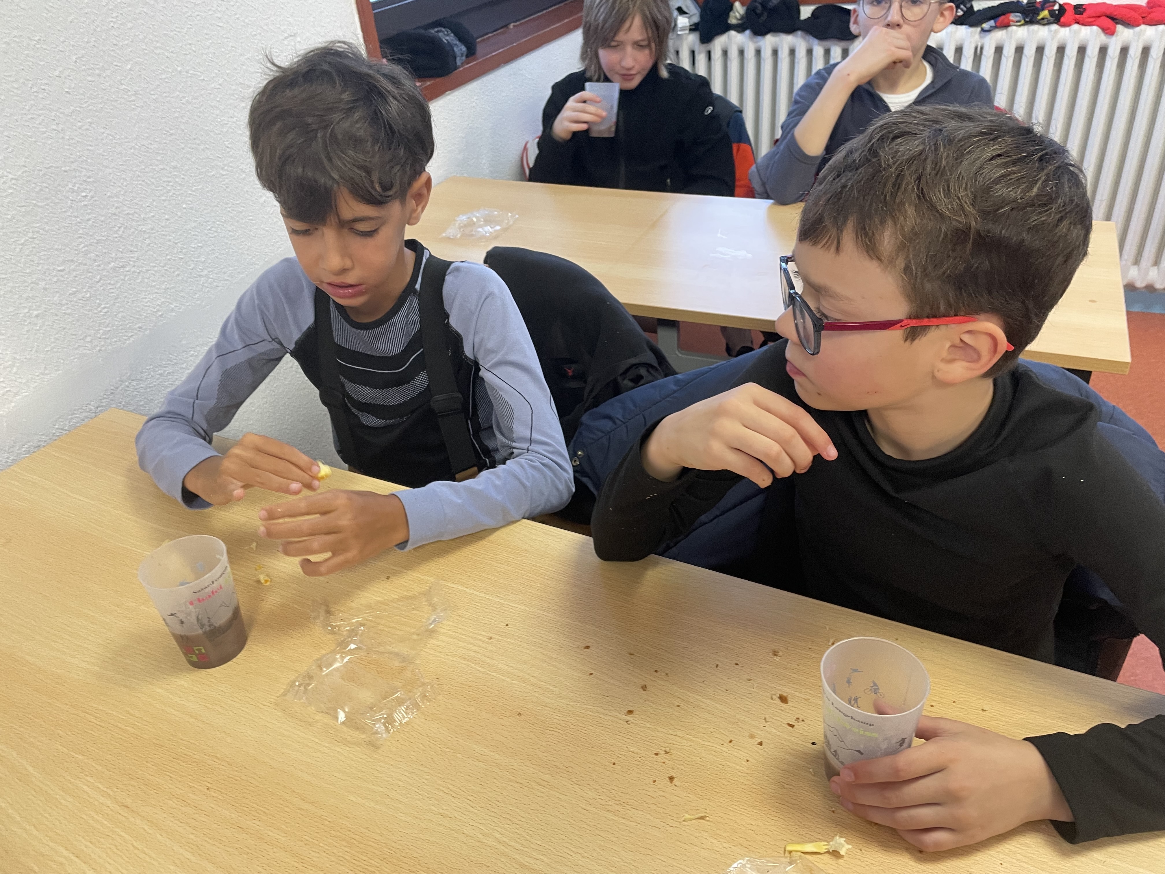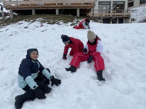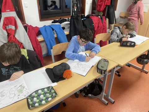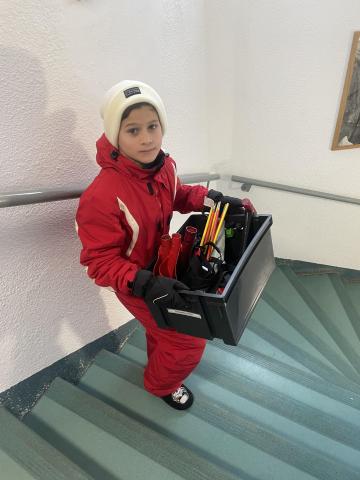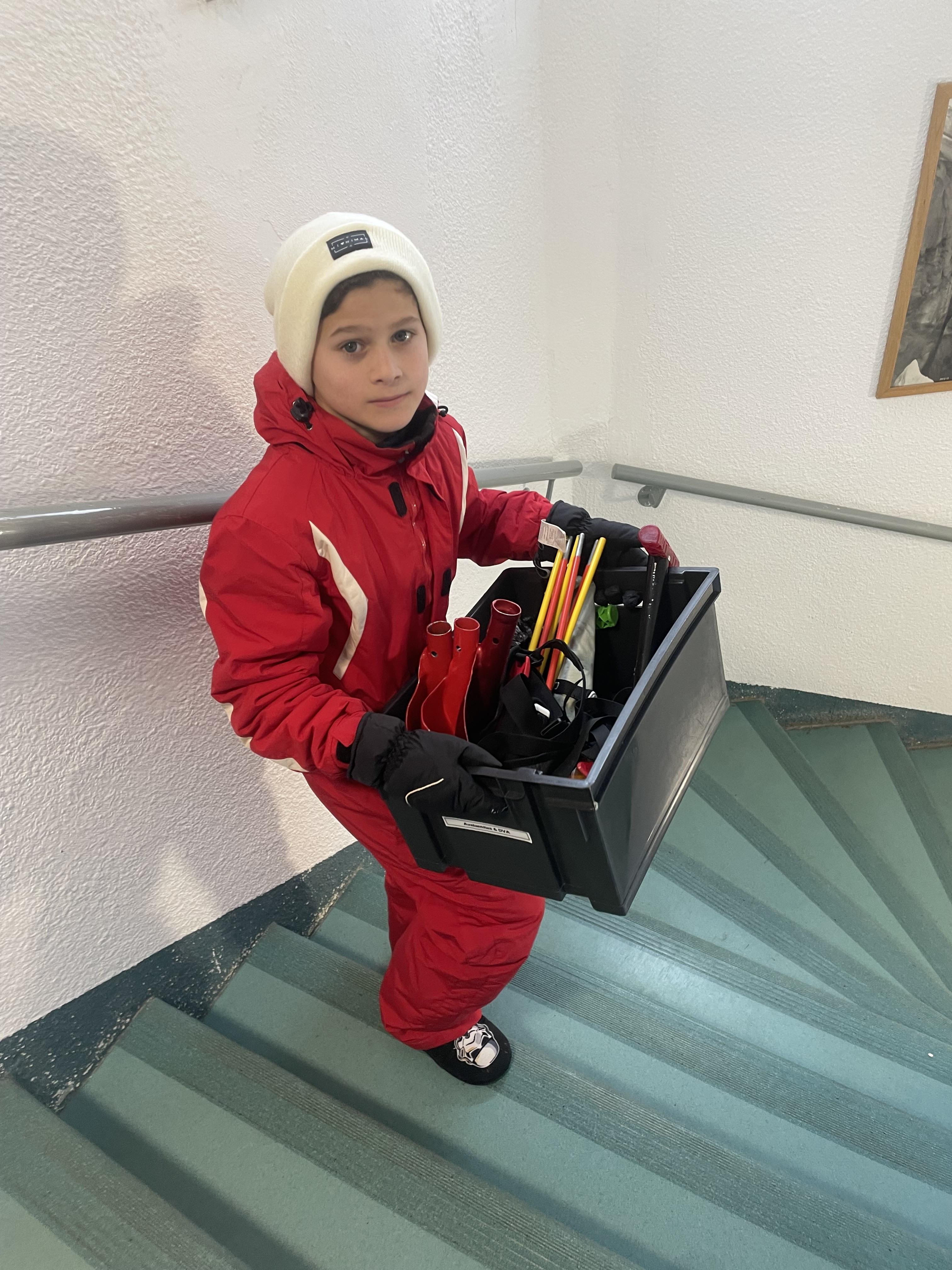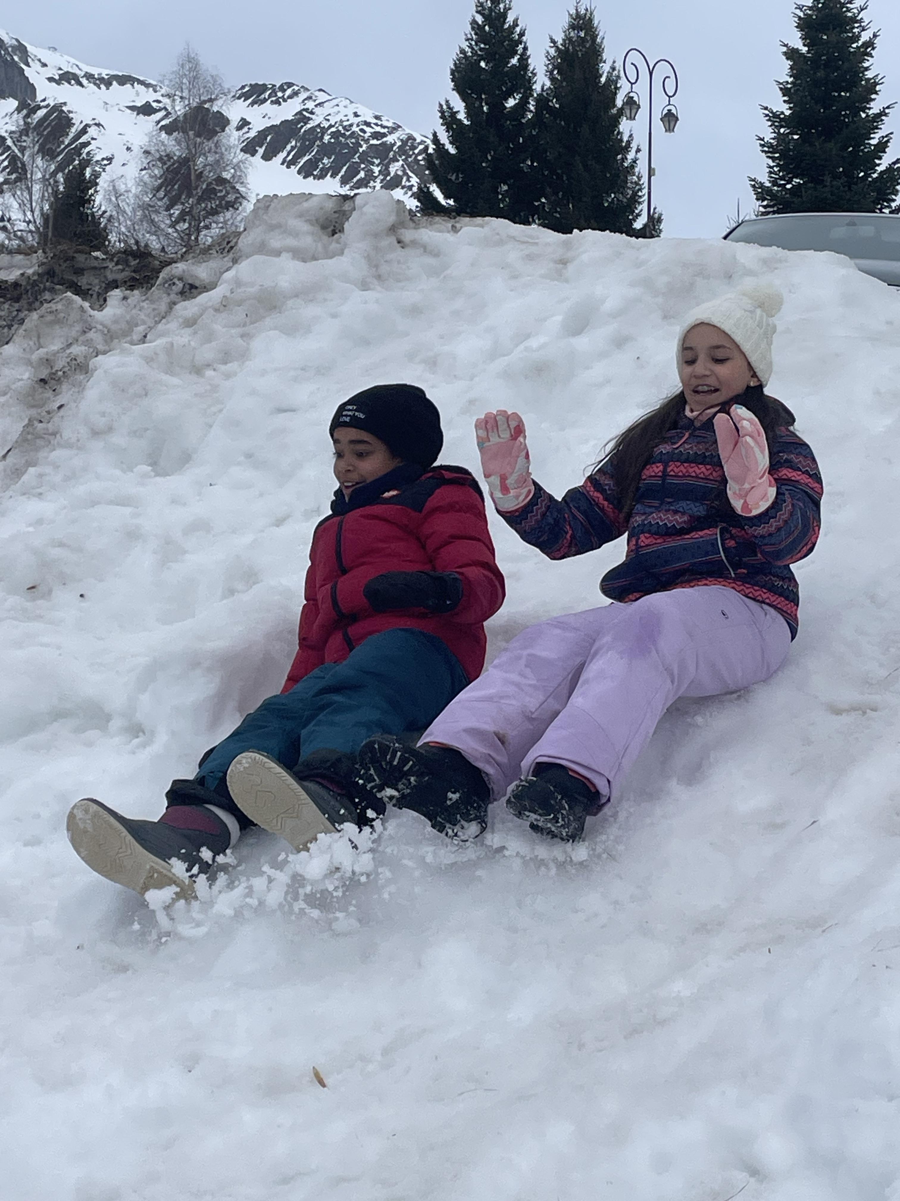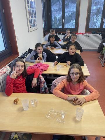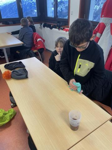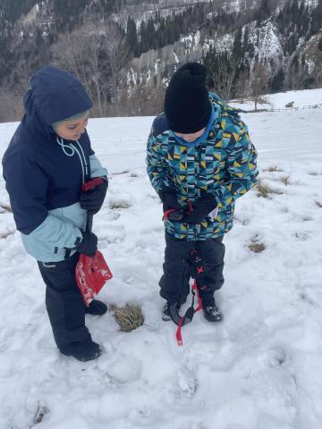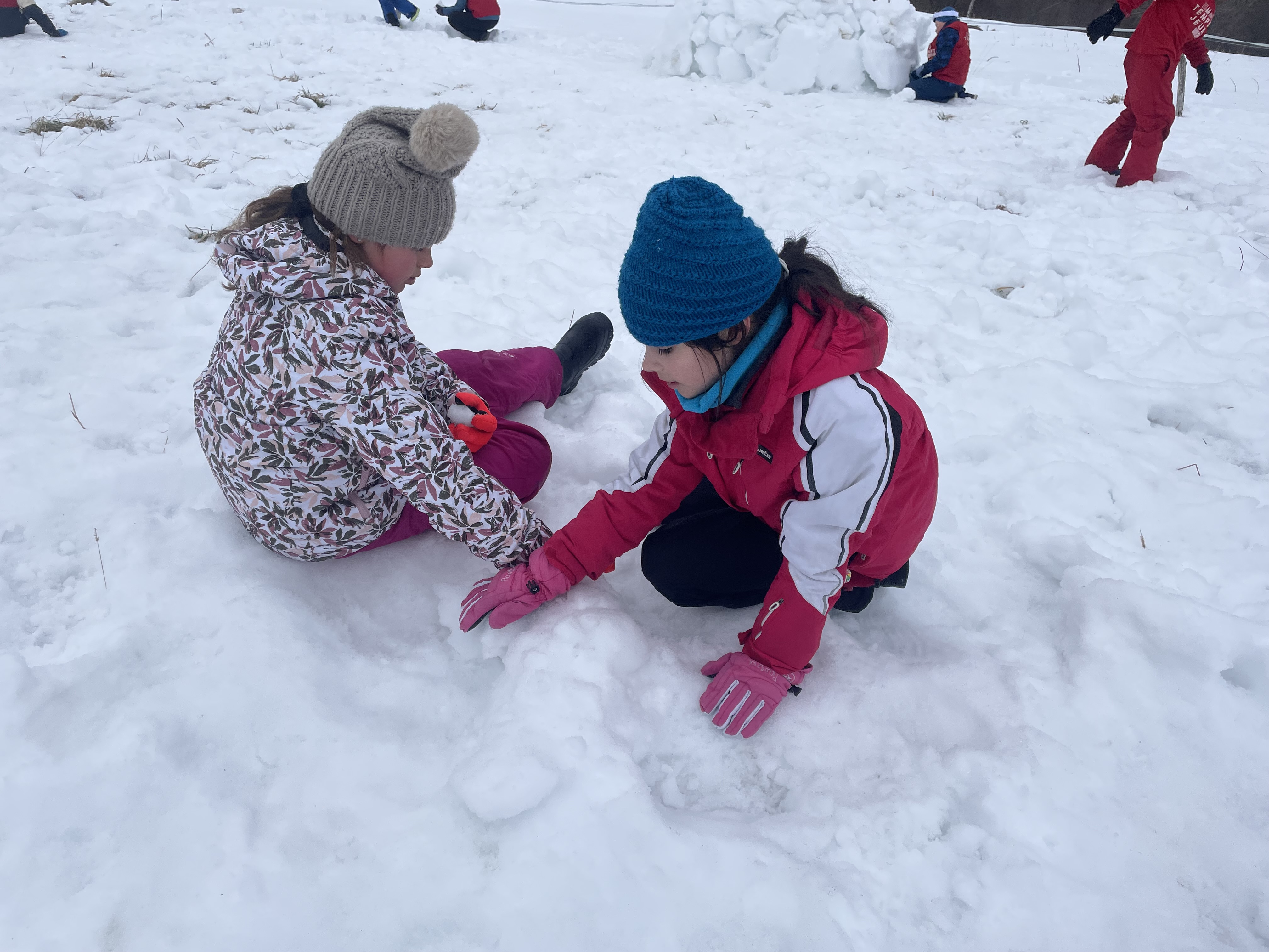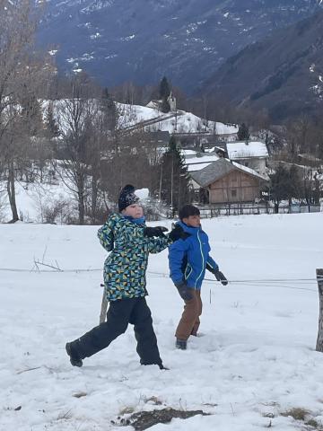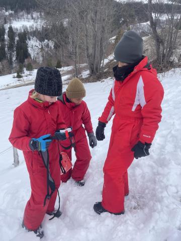 Ce matin nous avons travaillé sur la neige et les avalanches. Nous avons fait une heure de théorie en classe, illustrée par de petites vidéos d'avalanches. Les élèves étaient comme toujours très intéressés. Puis nous sommes passés à la pratique en extérieur. Les élèves ont pu s'entraîner à rechercher une victime sous la neige à l'aide de DVA (Détecteur de Victime d'Avalanche), de sonde et de pelle. Ils ont réussi à sauver tout le monde, OUF !!! Ensuite ils ont pu faire une récré dans la neige: glissades, batailles de boules de neige, sculptures... Une belle matinée !