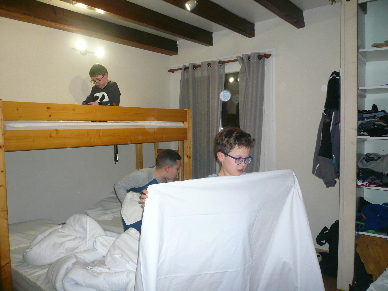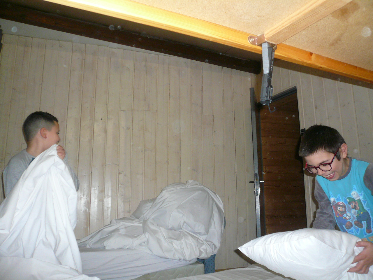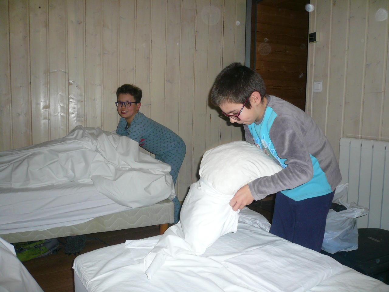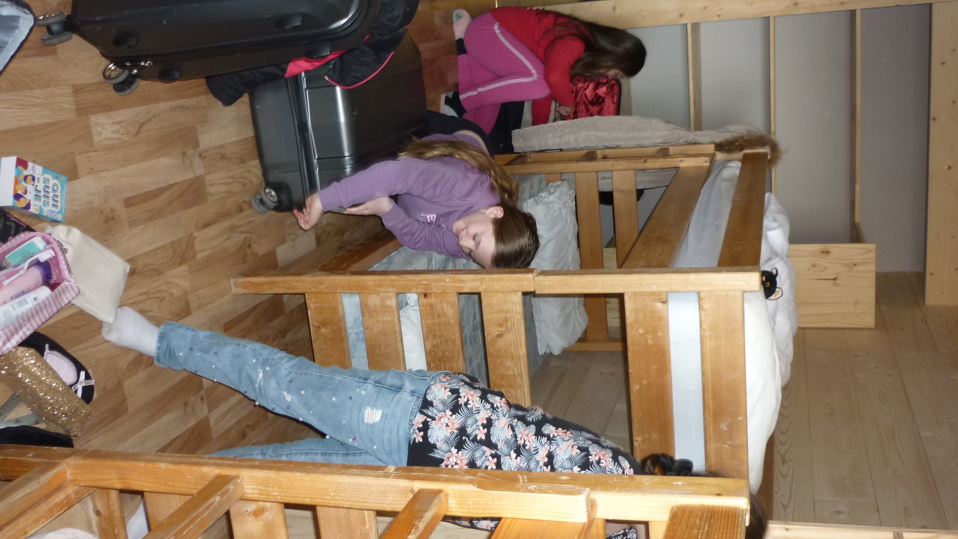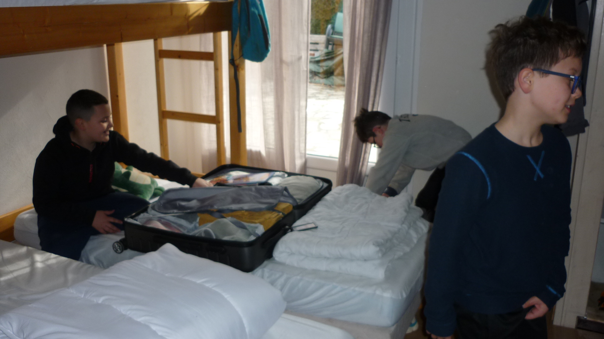 Moment très attendu: l'installation dans les chambres ! Pas toujours facile de vider sa valise et surtout de tout bien ranger ! La bonne humeur et les rigolades sont au rendez-vous.