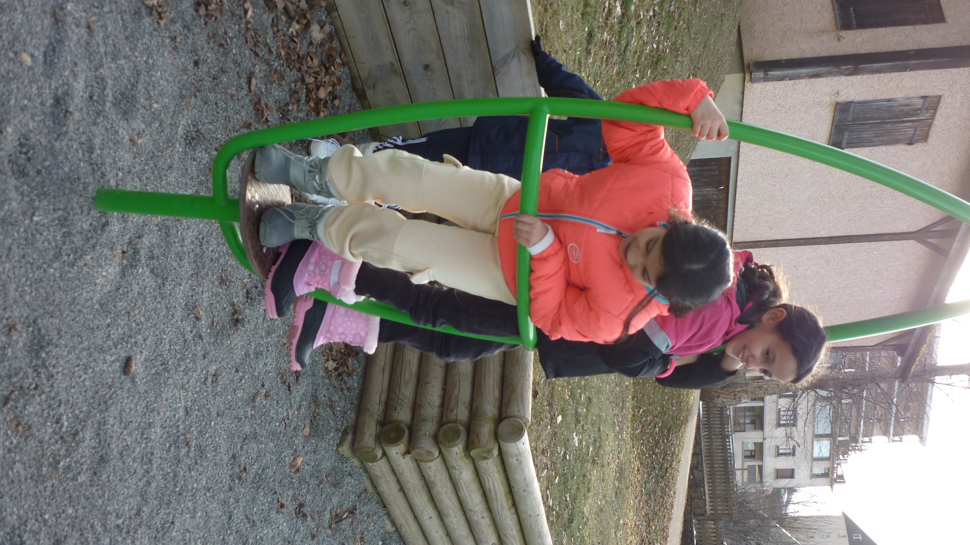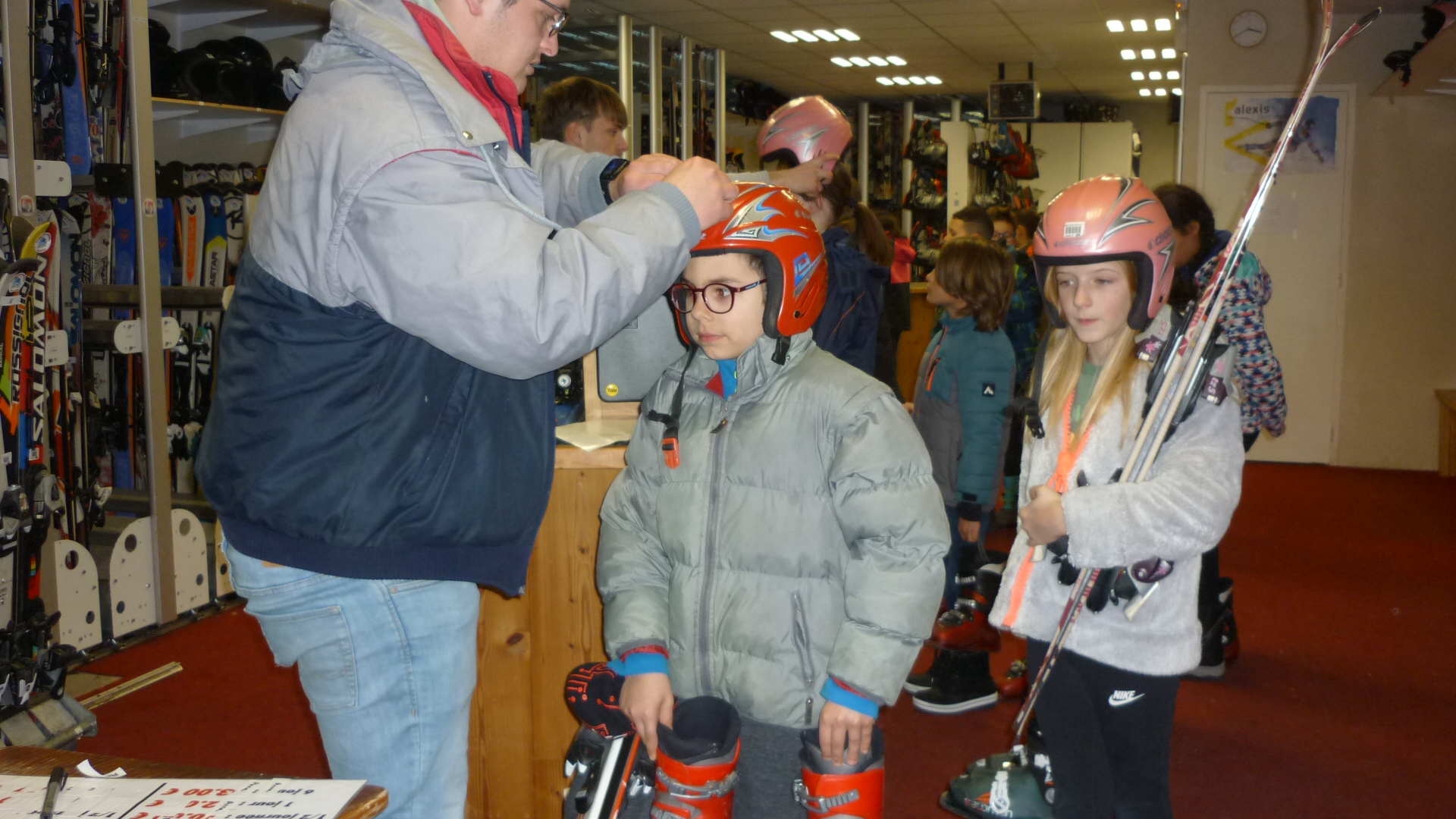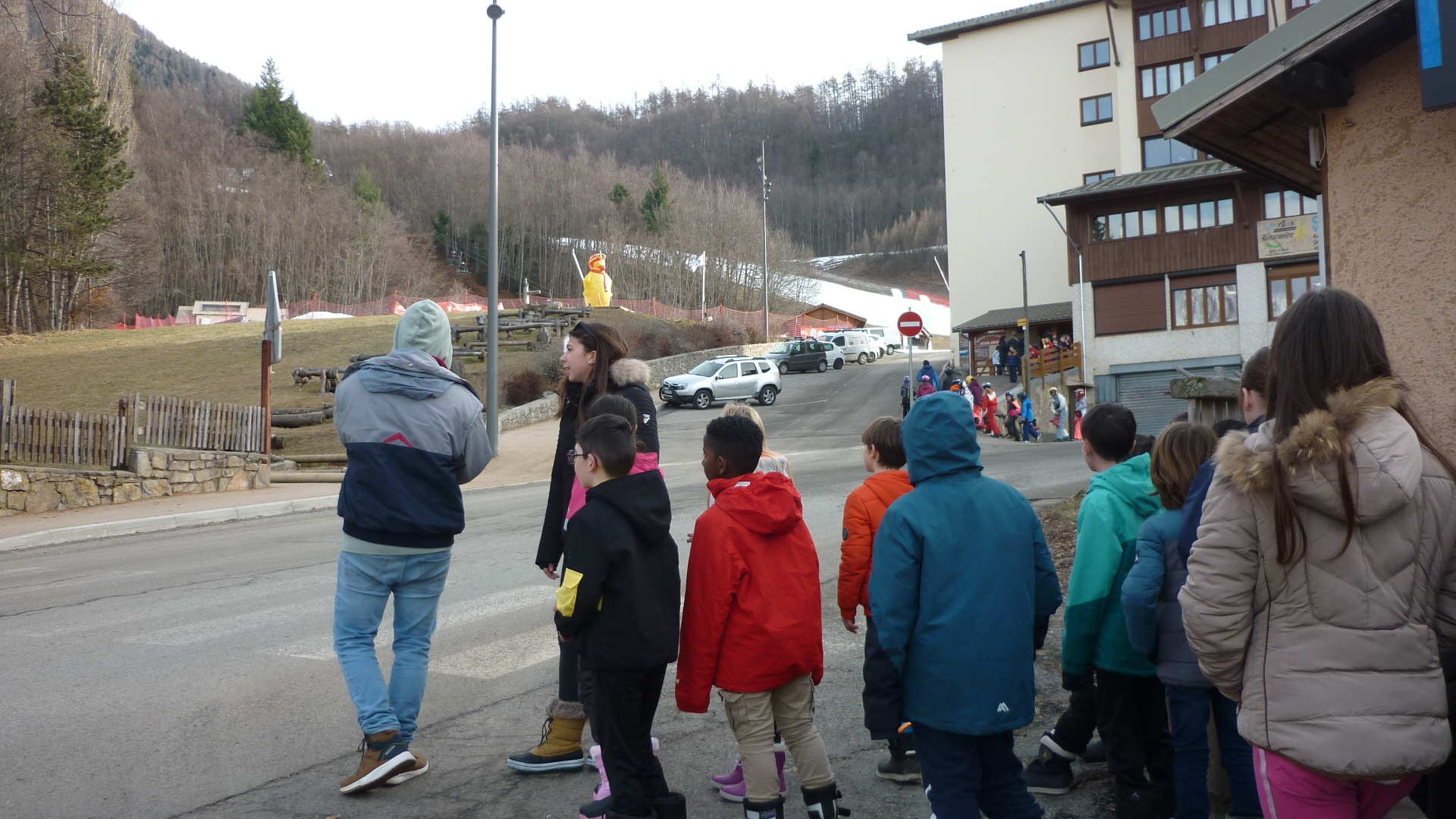 L'après-midi nous sommes allés visités le village, nous avons vu les pistes de ski, les remontées mécaniques et le jardin d'enfants ! Puis nous avons essayé le matériel de ski, qu'ils sont mignons avec leur casque !!!