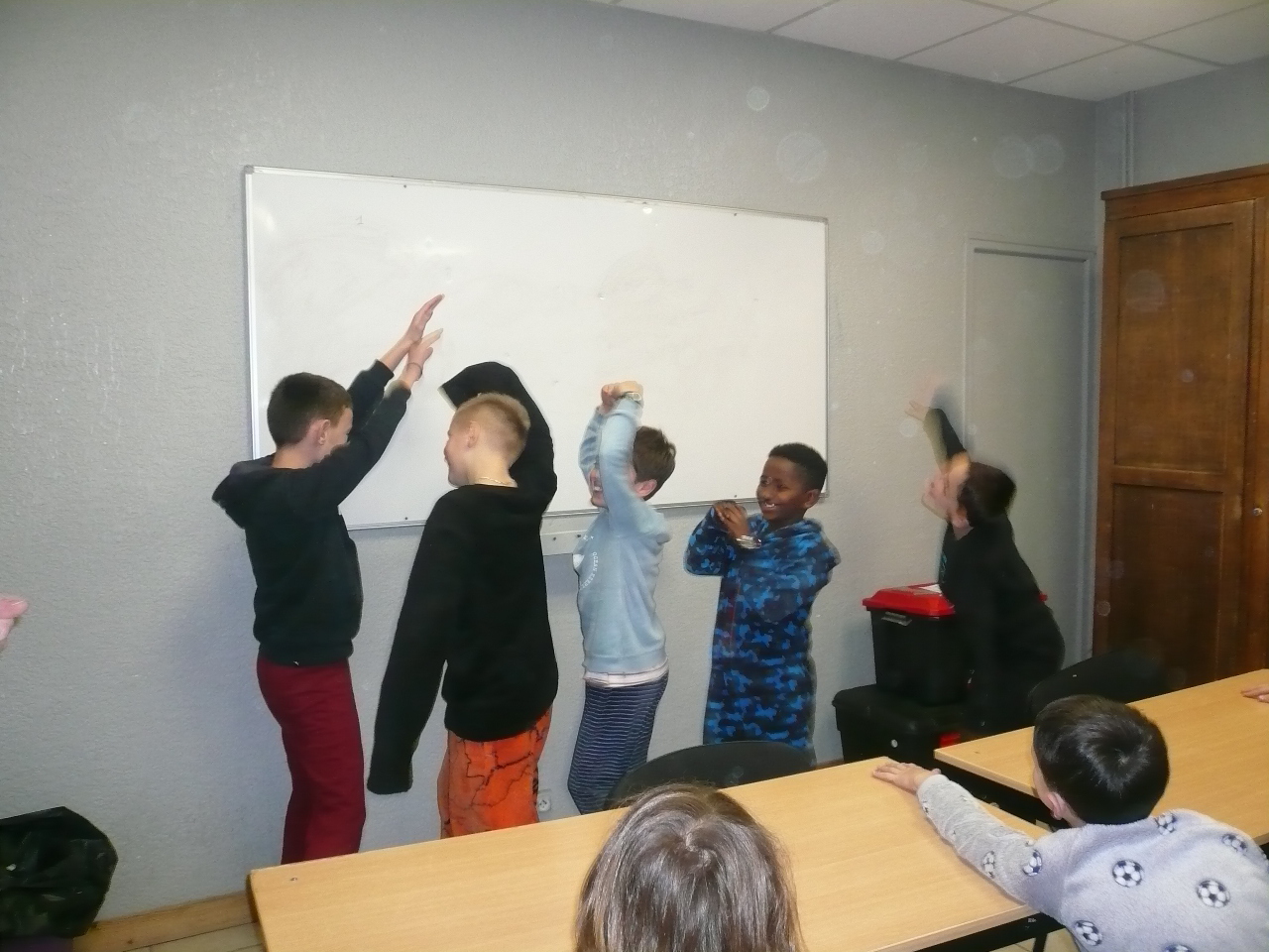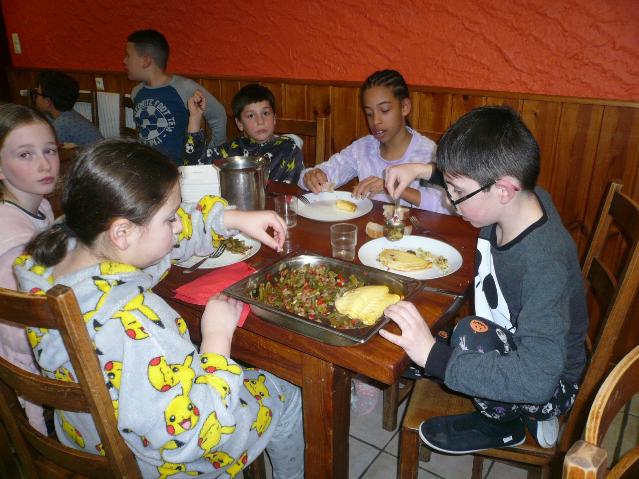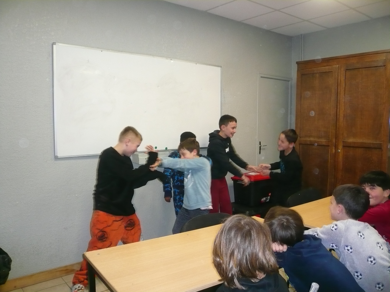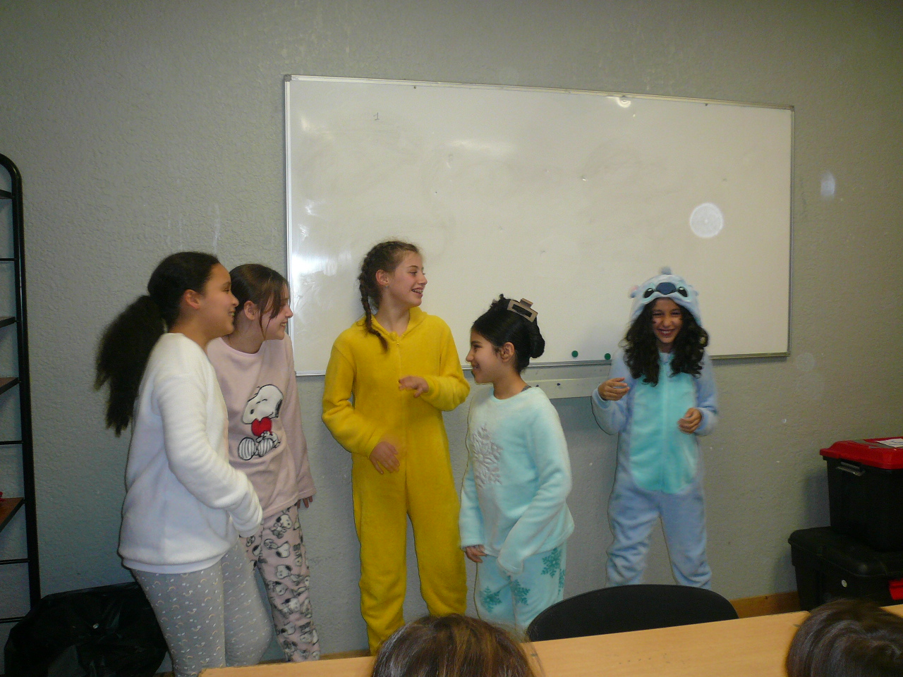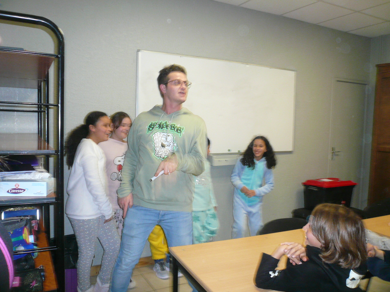 Après le goûter, un petit jeu avec les animateurs, la douche puis une heure de classe. Vous n'allez pas me croire mais ils étaient très contents de retrouver leur beau cahier de classe de neige et leur stylo. En plus, la classe en pyjama c'est pas habituel !