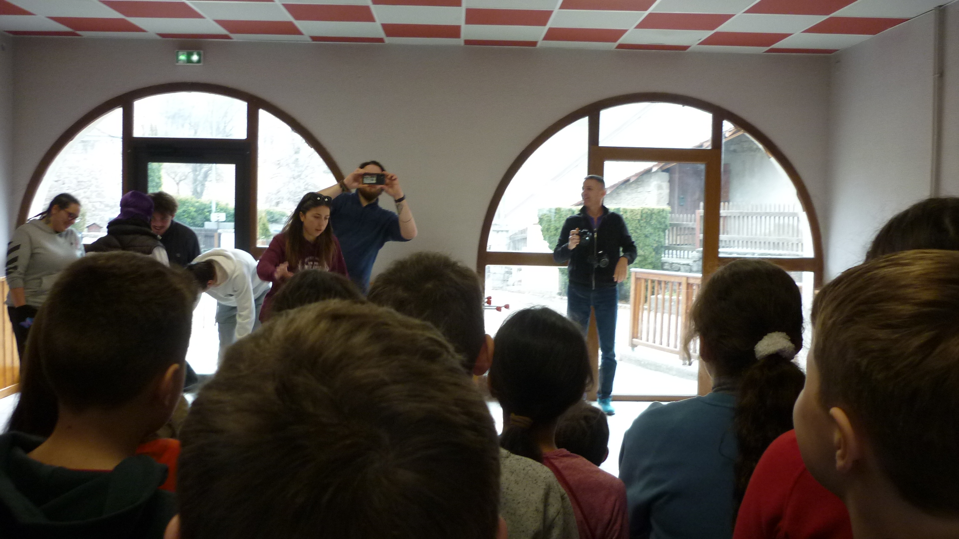 A midi, nous avons eu la visite de Mr Mocellin, le maire de St Marcellin, Mme De Smedt, adjointe et Mme Brombeck, responsable Education Jeunesse. Ils ont mangé avec nous et nous avons fait la traditionnelle photo de groupe. Ils se sont assurés que tout se passait bien. Surveillez les journaux locaux et récupérez les articles !