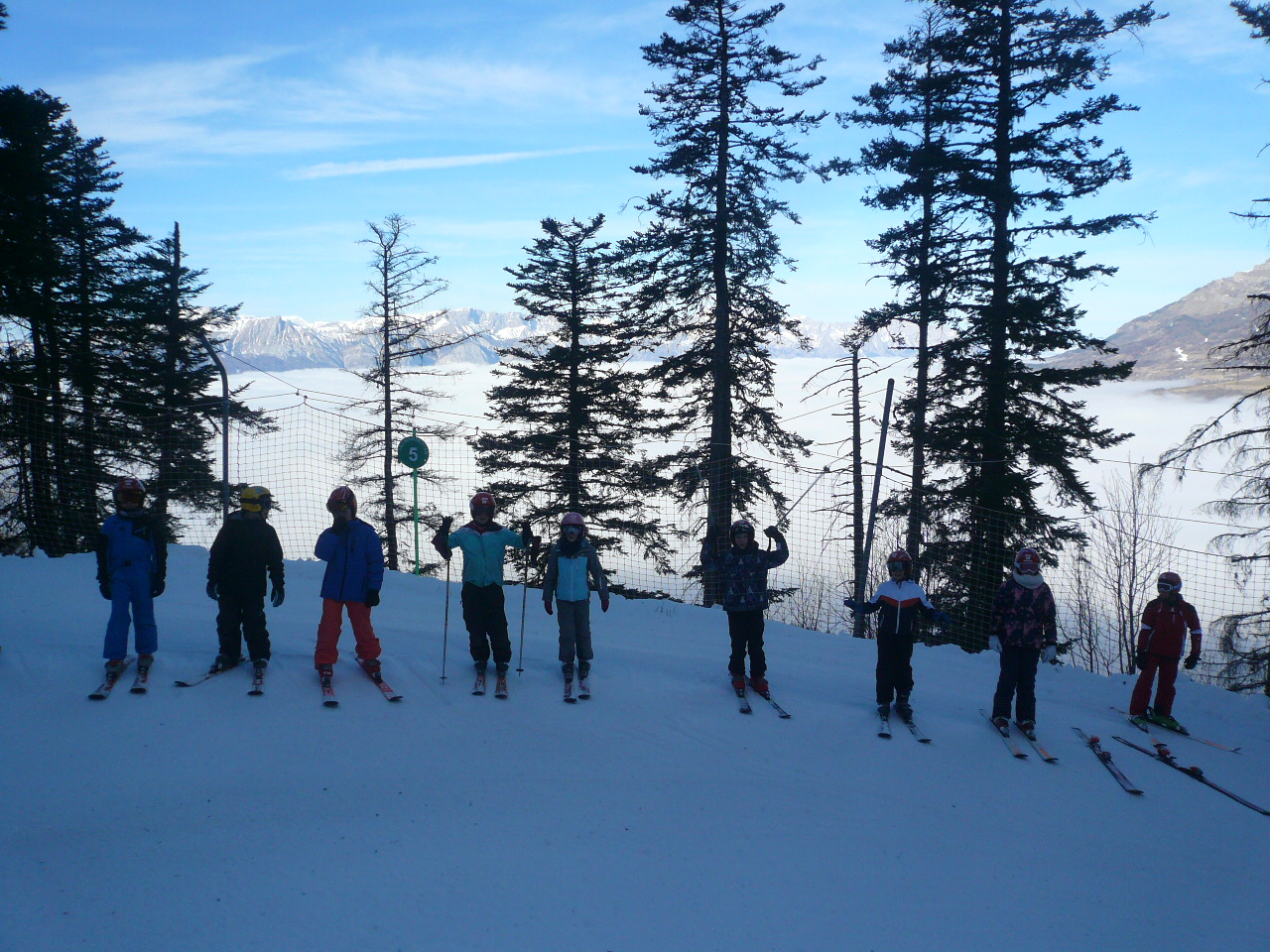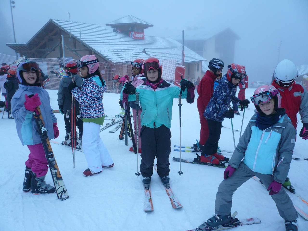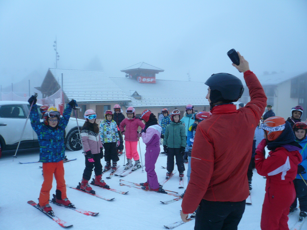 Ce matin, on est dans le brouillard givrant et il fait - 2 degrés. Ca fait tout bizarre après tous ces jours ensoleillés ! Heureusement après quelques minutes de montée en télésiège, on retrouve le soleil. Les enfants sont impressionnés et émerveillés par l'immense mer de nuages au-dessous d'eux. Tous se sont élancés sur les pistes le sourire aux lèvres. Tous s'appliquent, les tests pour les médailles sont demain ! Les plus forts ont été chronométrés au slalom.