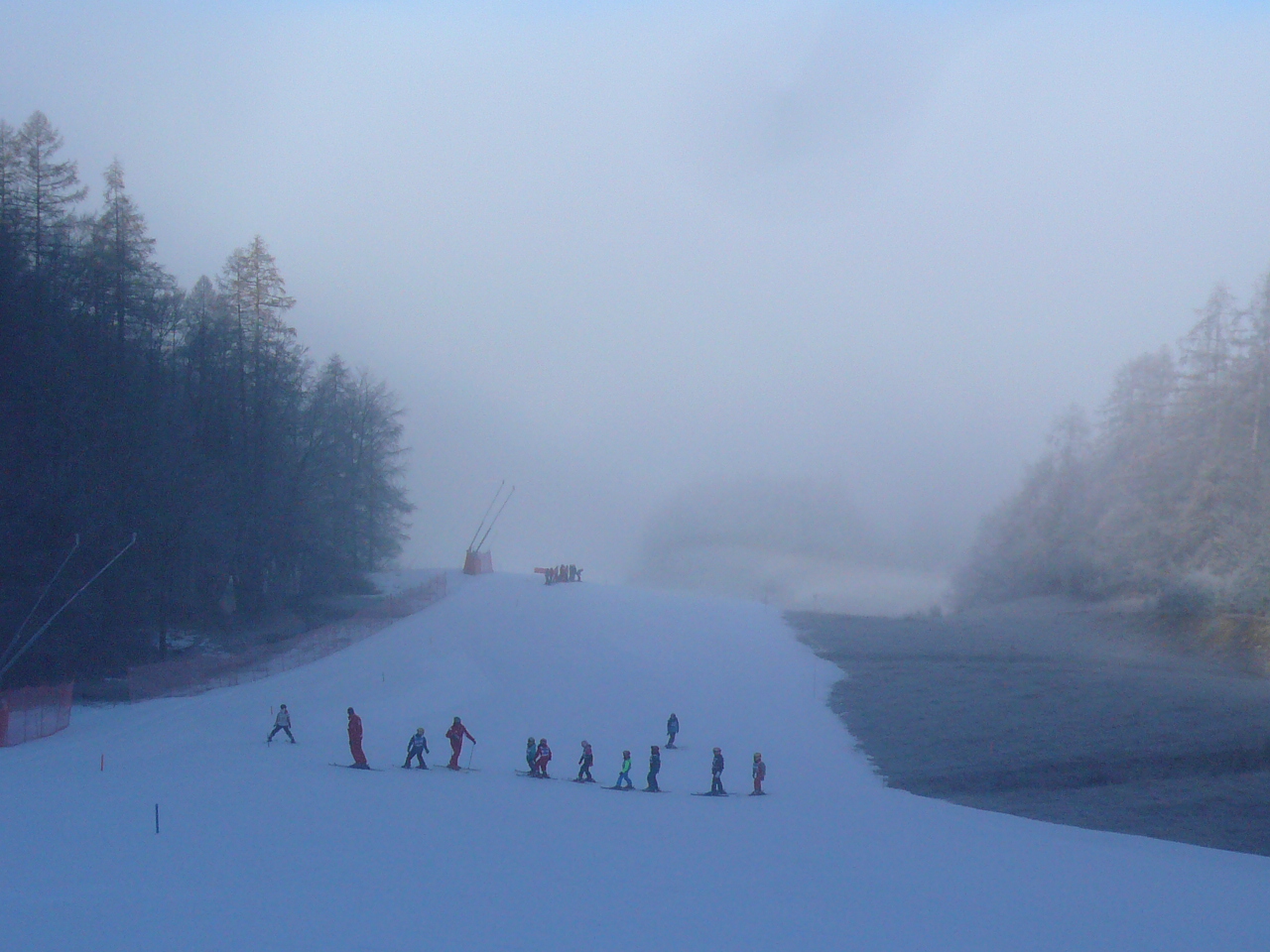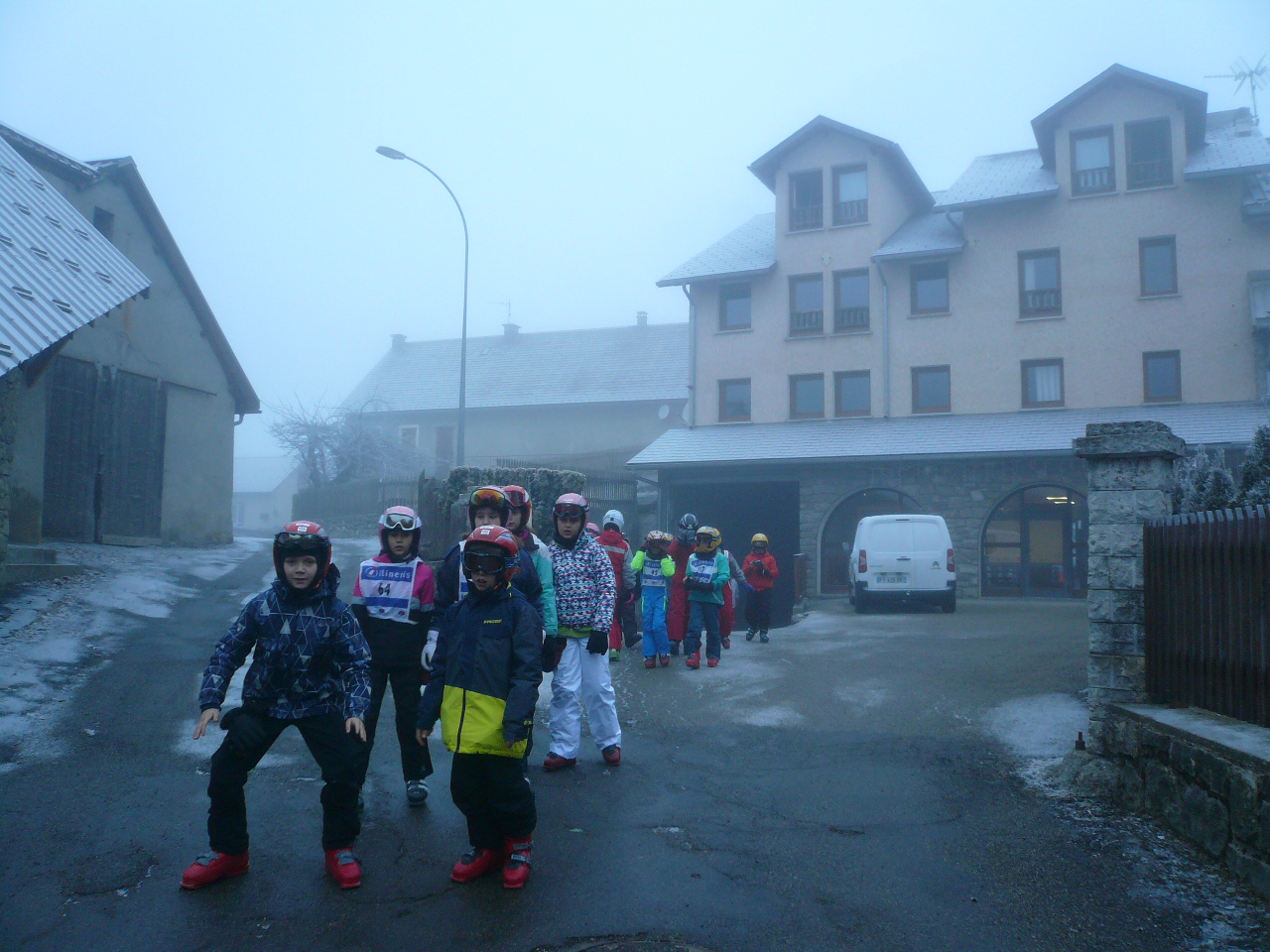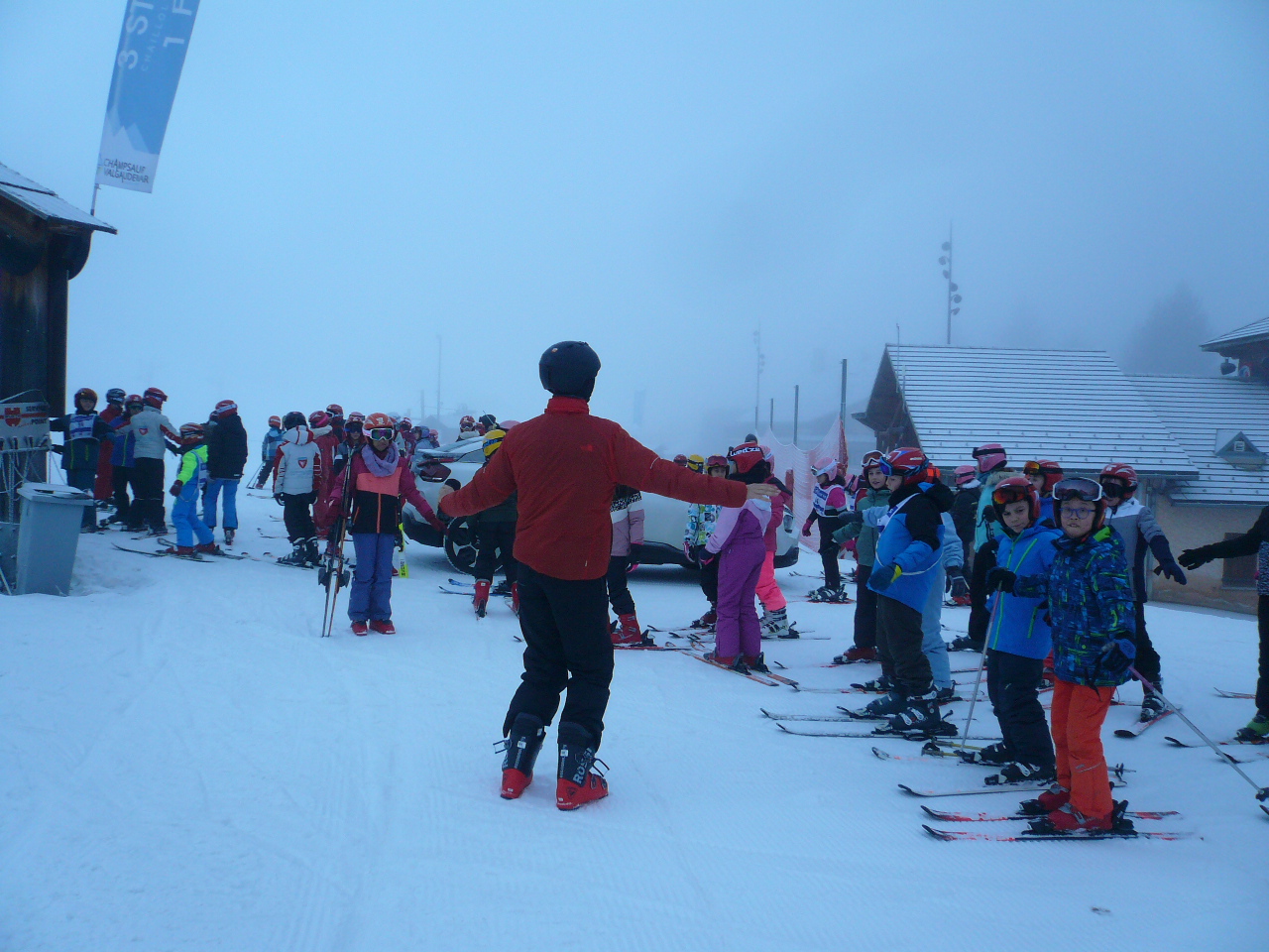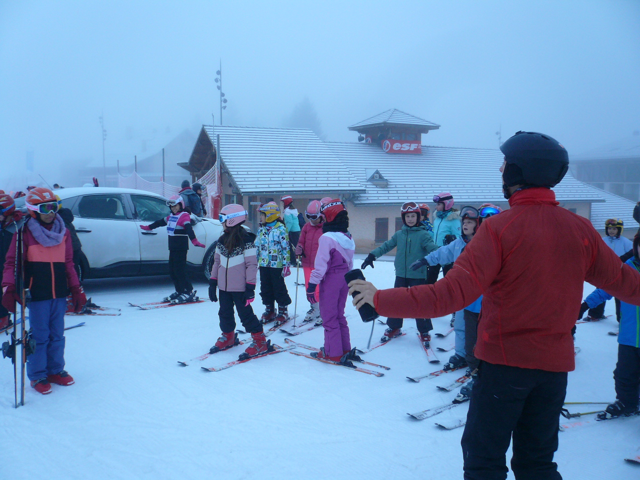 Ce matin, on est dans le brouillard givrant et il fait - 2 degrés. Ca fait tout bizarre après tous ces jours ensoleillés ! Heureusement après quelques minutes de montée en télésiège, on retrouve le soleil. Les enfants sont impressionnés et émerveillés par l'immense mer de nuages au-dessous d'eux. Tous se sont élancés sur les pistes le sourire aux lèvres. Tous s'appliquent, les tests pour les médailles sont demain ! Les plus forts ont été chronométrés au slalom.
