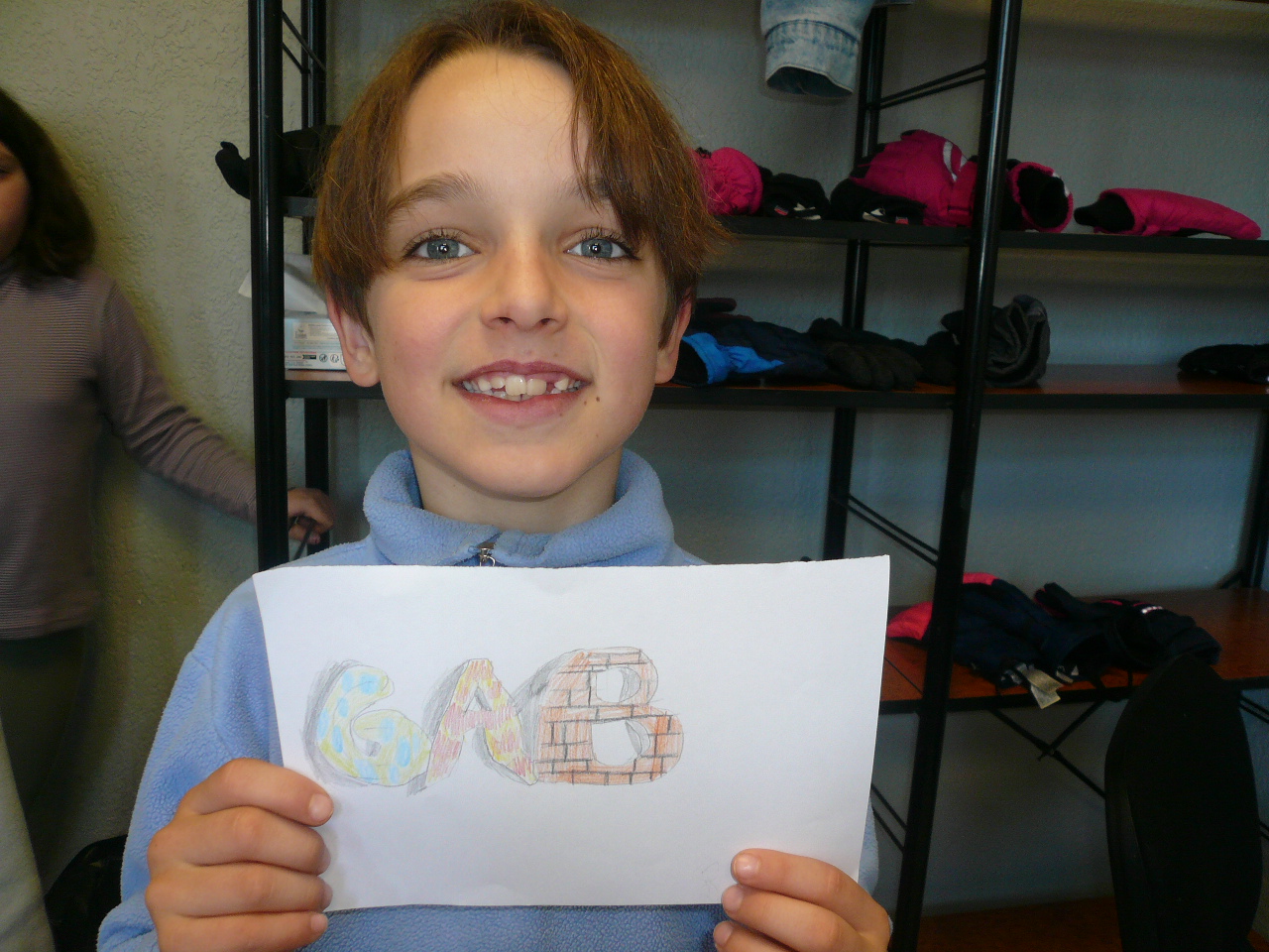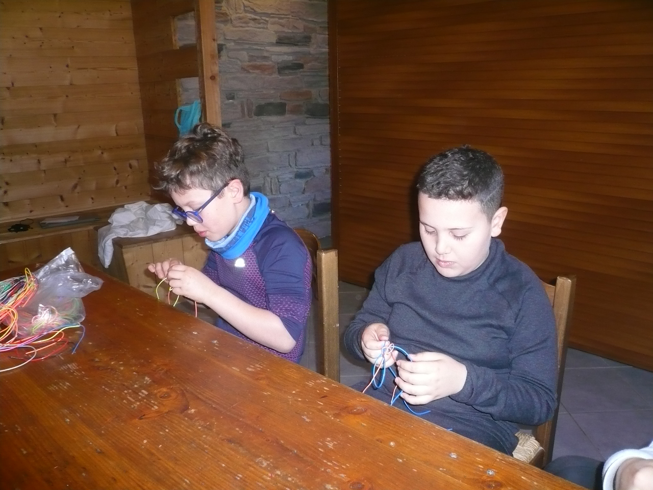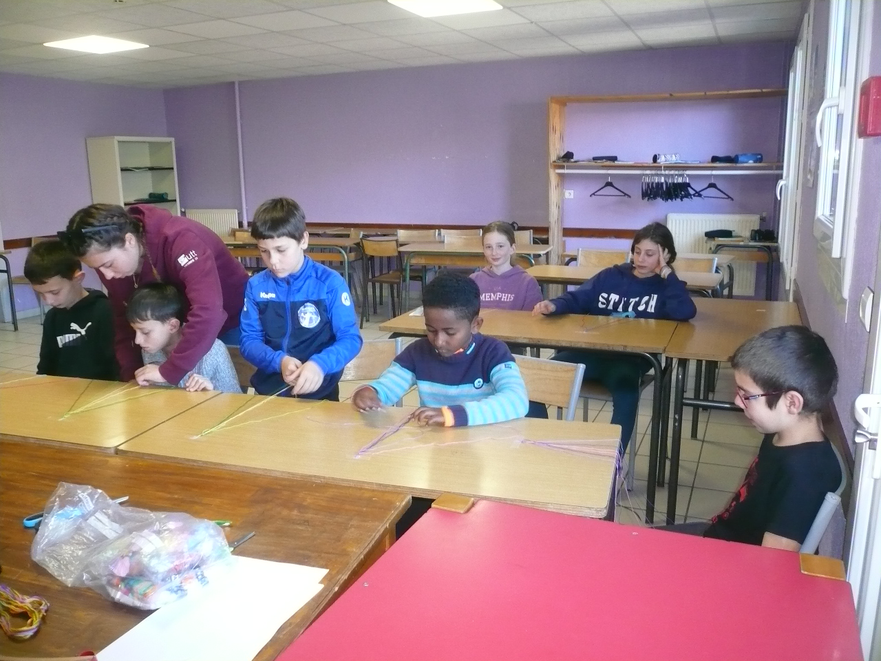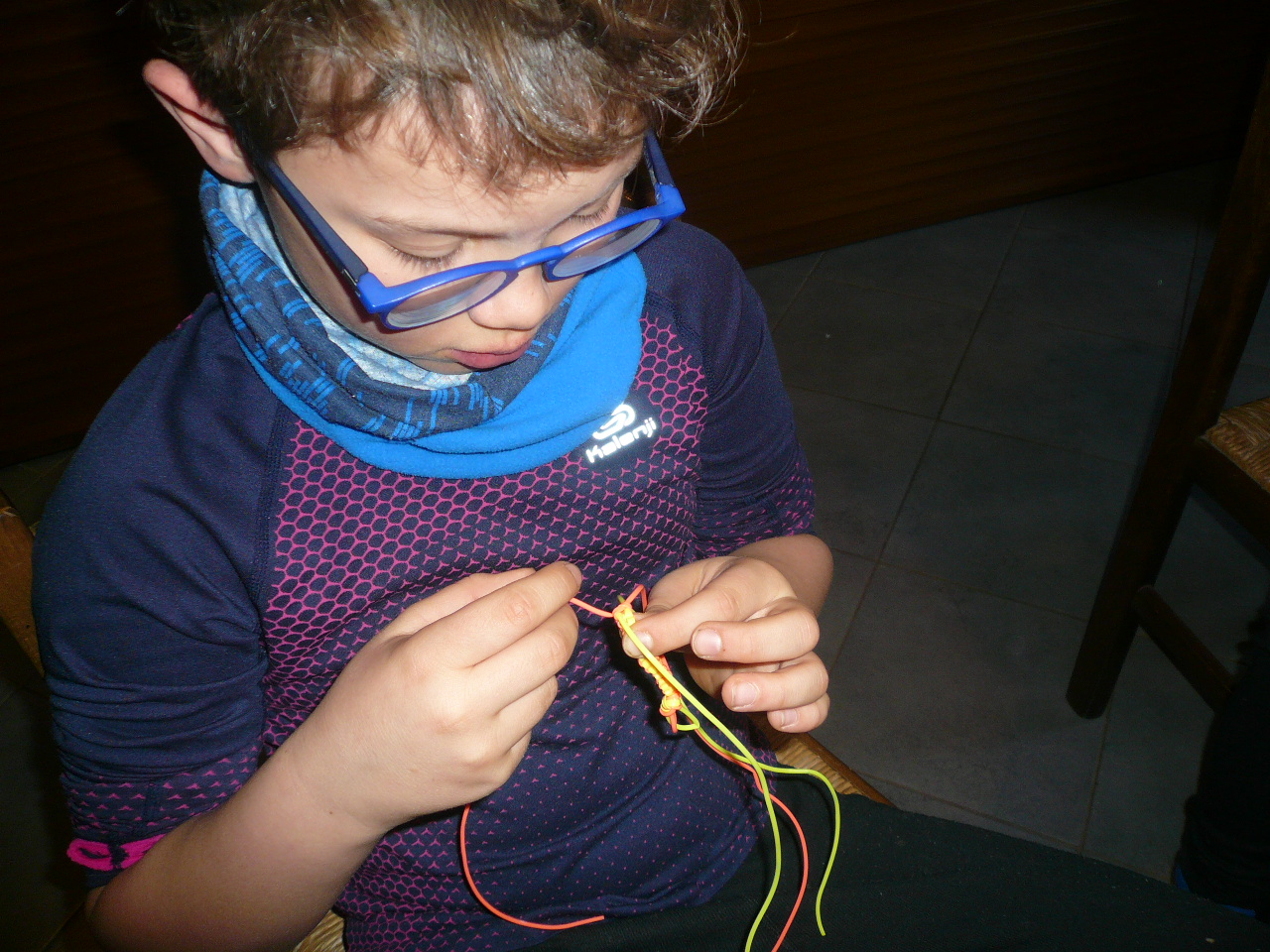 Cet après-midi, nous avons fait des petites activités manuelles: scoobidous avec la maîtresse et travail sur le plan de sa chambre, bracelets brésiliens avec Clara et graphitis avec Marius. Ensuite, le brouillard s'étant enfin dissipé, nous sommes allés goûter dans un champ au soleil. Ca a été l'occasion de taper un peu dans la balle.