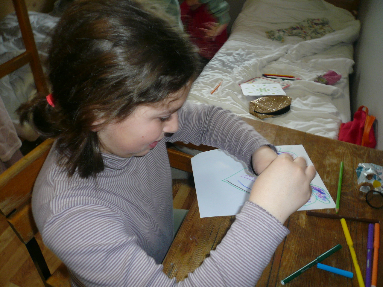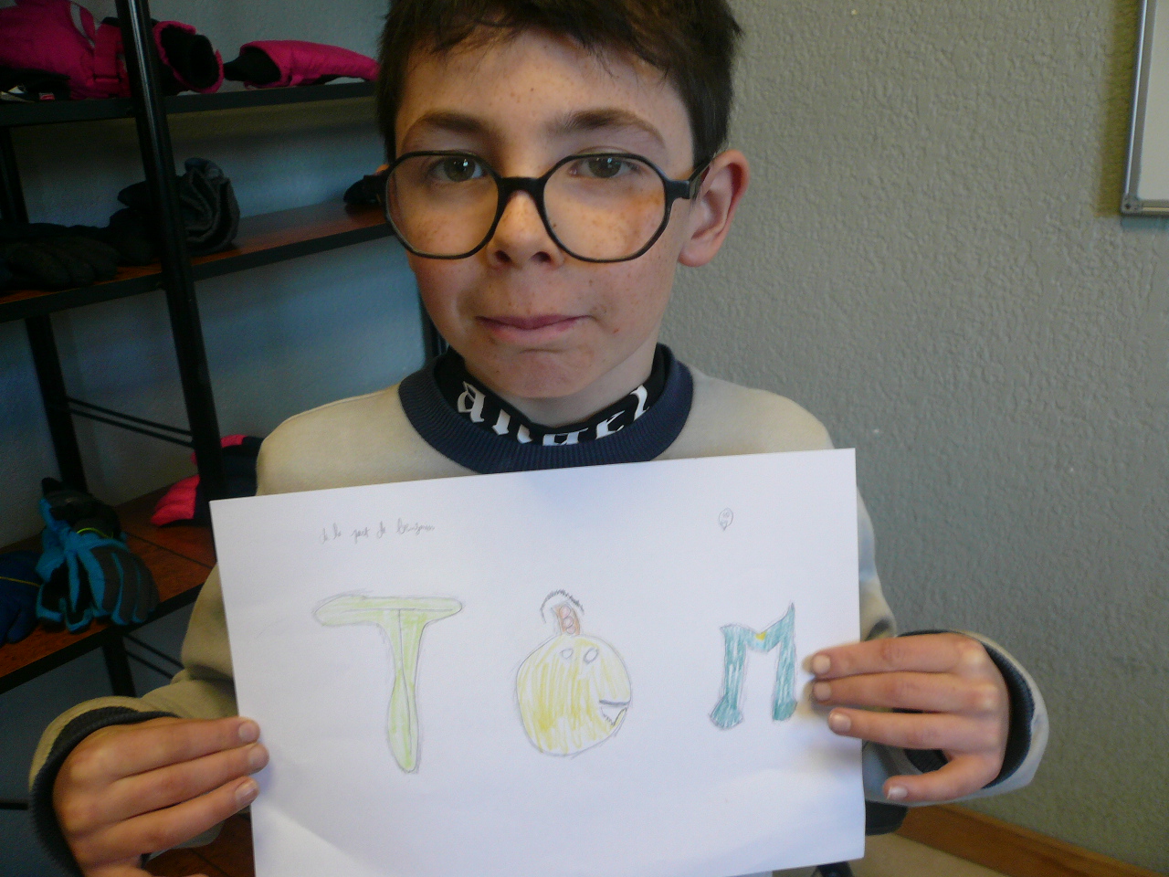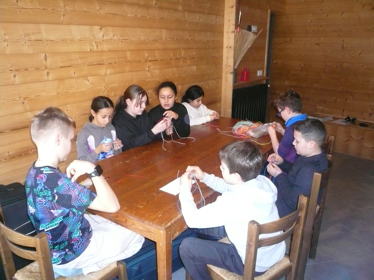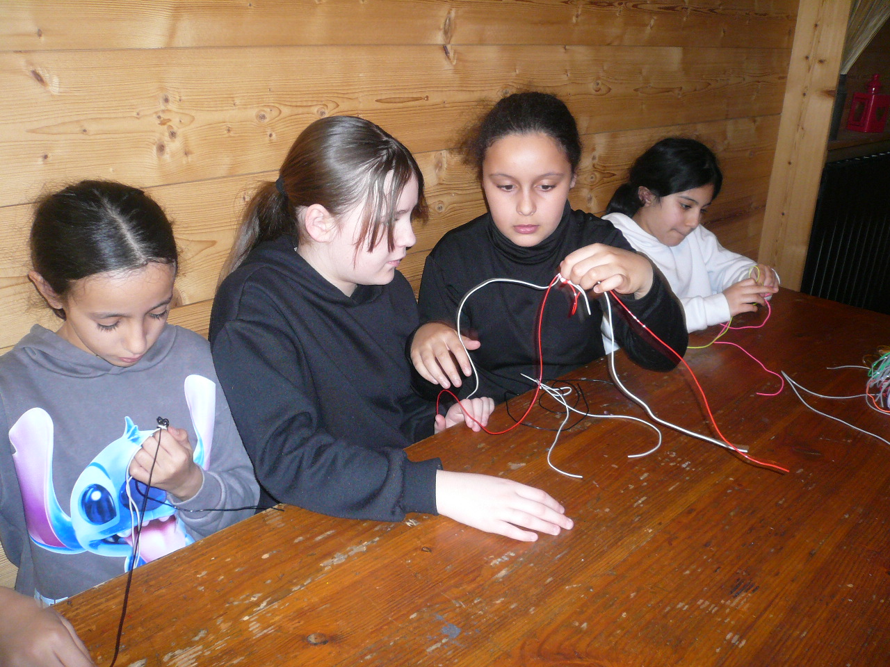 Cet après-midi, nous avons fait des petites activités manuelles: scoobidous avec la maîtresse et travail sur le plan de sa chambre, bracelets brésiliens avec Clara et graphitis avec Marius. Ensuite, le brouillard s'étant enfin dissipé, nous sommes allés goûter dans un champ au soleil. Ca a été l'occasion de taper un peu dans la balle.