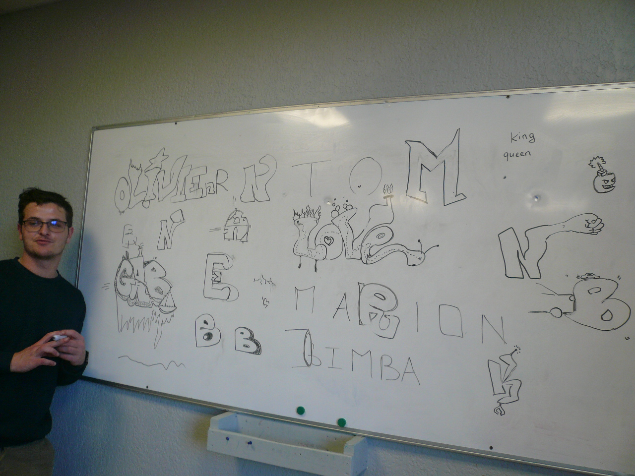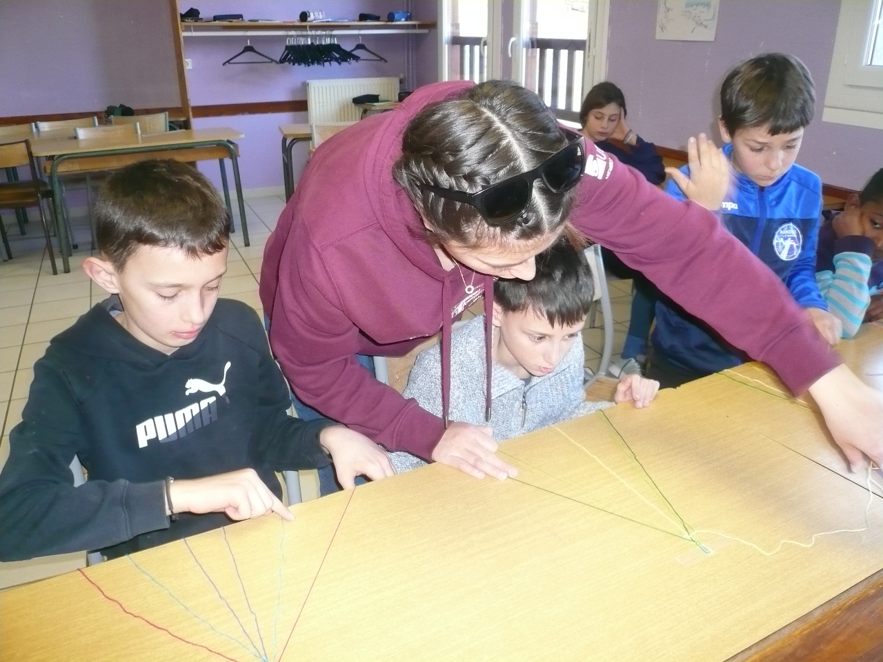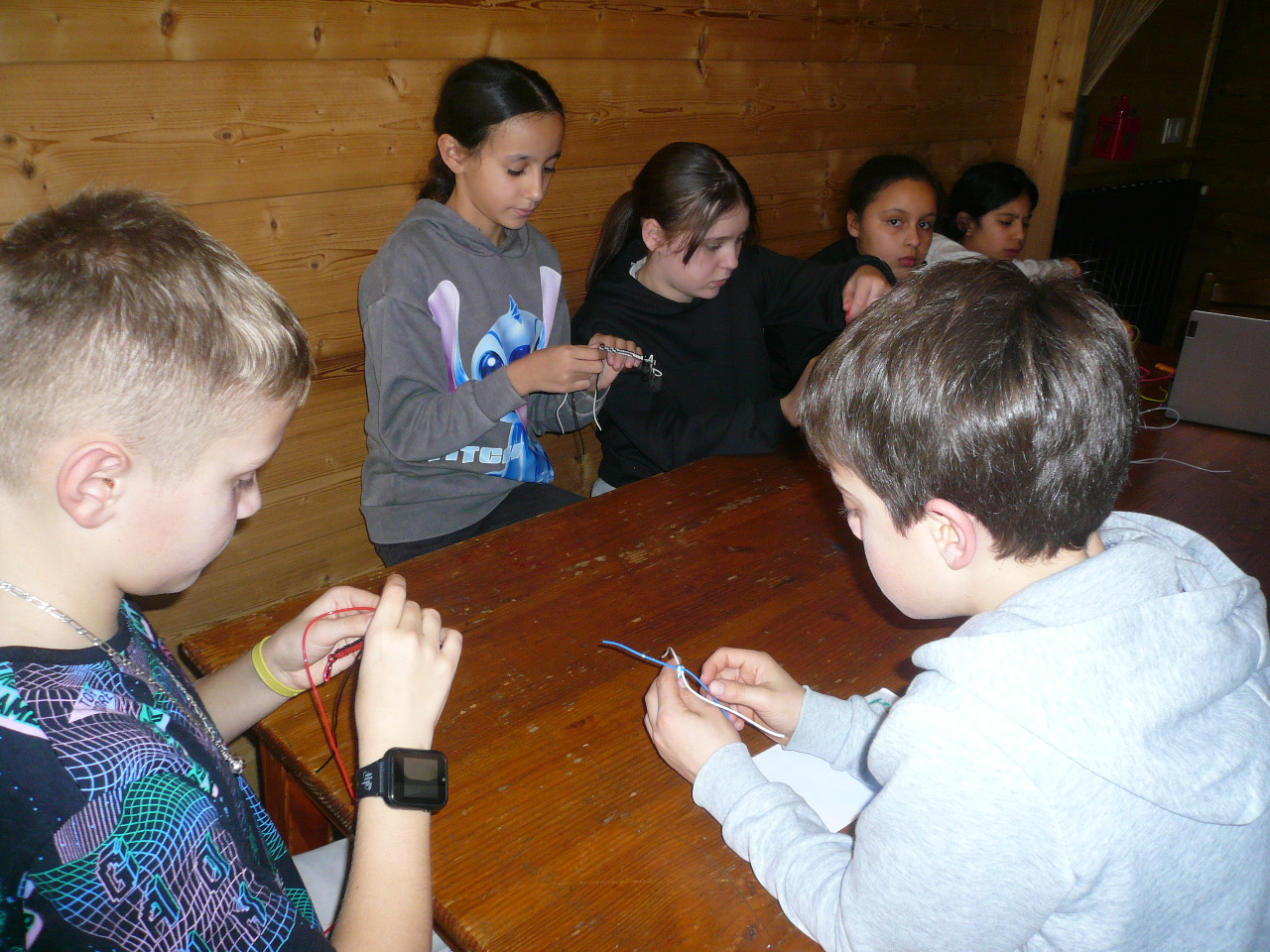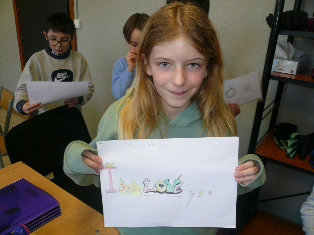 Cet après-midi, nous avons fait des petites activités manuelles: scoobidous avec la maîtresse et travail sur le plan de sa chambre, bracelets brésiliens avec Clara et graphitis avec Marius. Ensuite, le brouillard s'étant enfin dissipé, nous sommes allés goûter dans un champ au soleil. Ca a été l'occasion de taper un peu dans la balle.