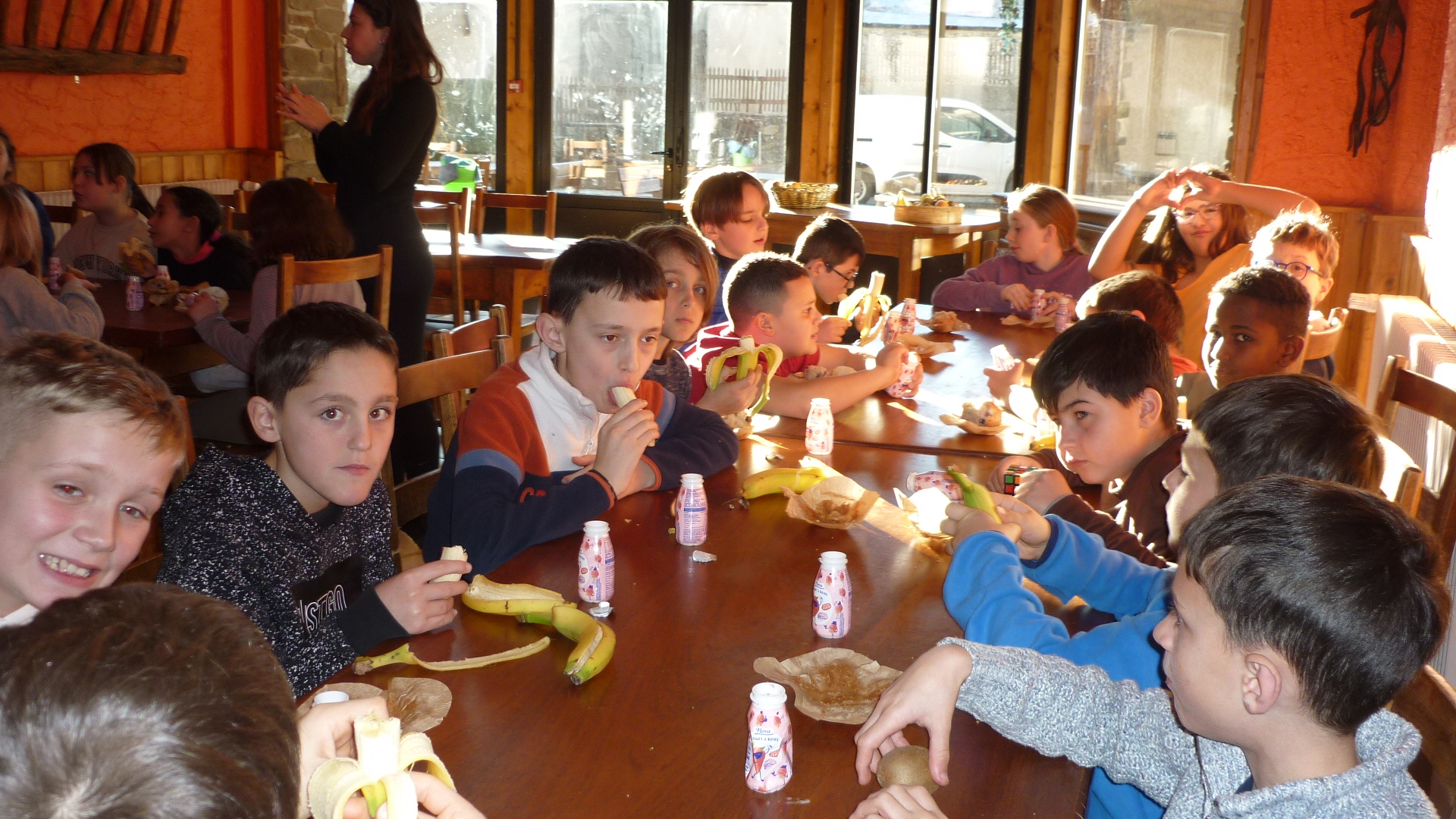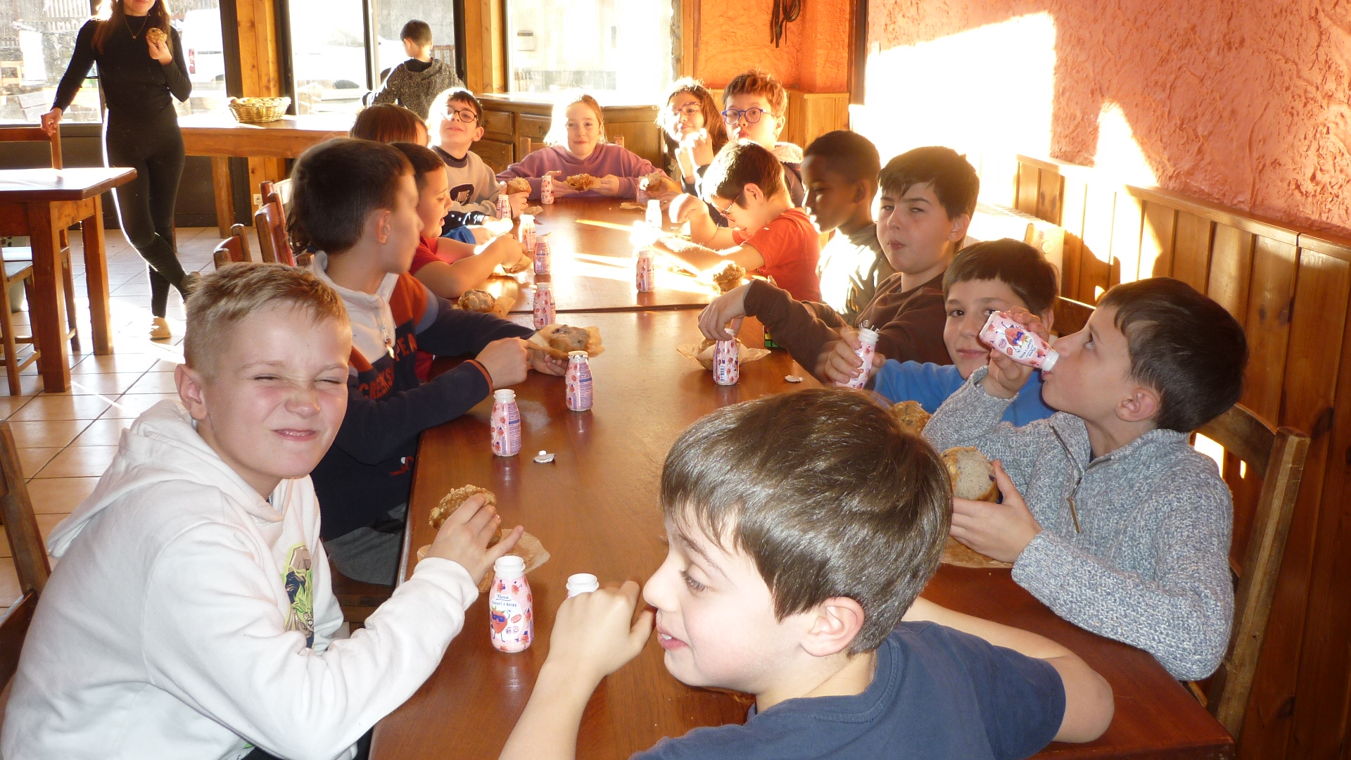 Cours de ski de 9 à 11h: Une partie des débutants a pu monter au sommet des pistes et admirer à son tour le paysage. Emilio a fait une chute au téléski raide du haut de la station et en a redescendu une partie sur le dos et s'est râpé le dos mais heureusement sans gravité. Plus de peur que de mal. Tous progressent et surtout tous sont contents d'aller skier.