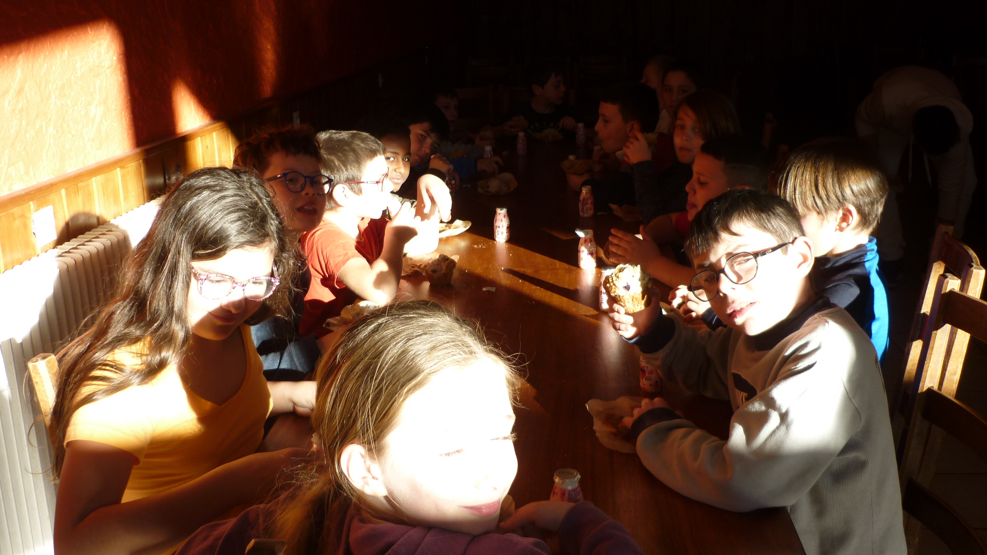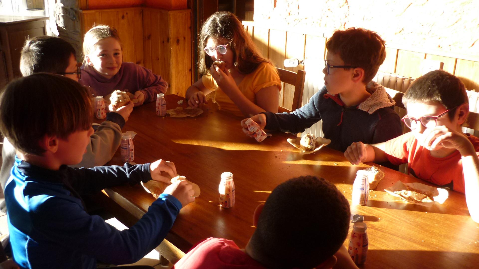 Tous ont passé une très bonne nuit et se sont jetés sur le petit déj: jus d'orange, lait, cacao, thé, jus d'oranges, céréales, tartines et fruits ont disparu à vue d'oeil. La montagne met en appétit ! Théo s'est réveillé avec de la fièvre et mal à la tête, il a vu le médecin, un petit virus sans gravité. Un peu de repos, du Doliprane et tout devrait vite s'arranger.